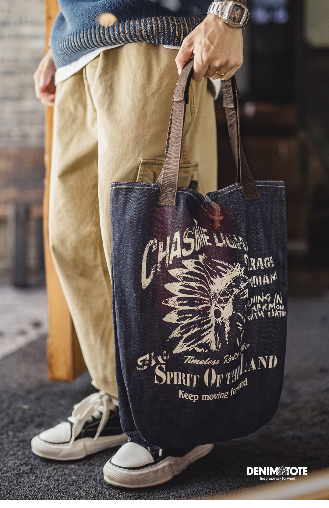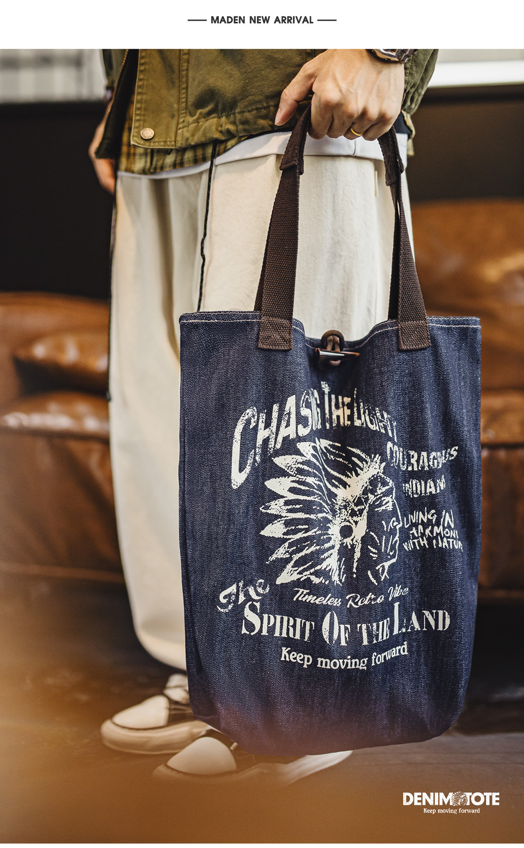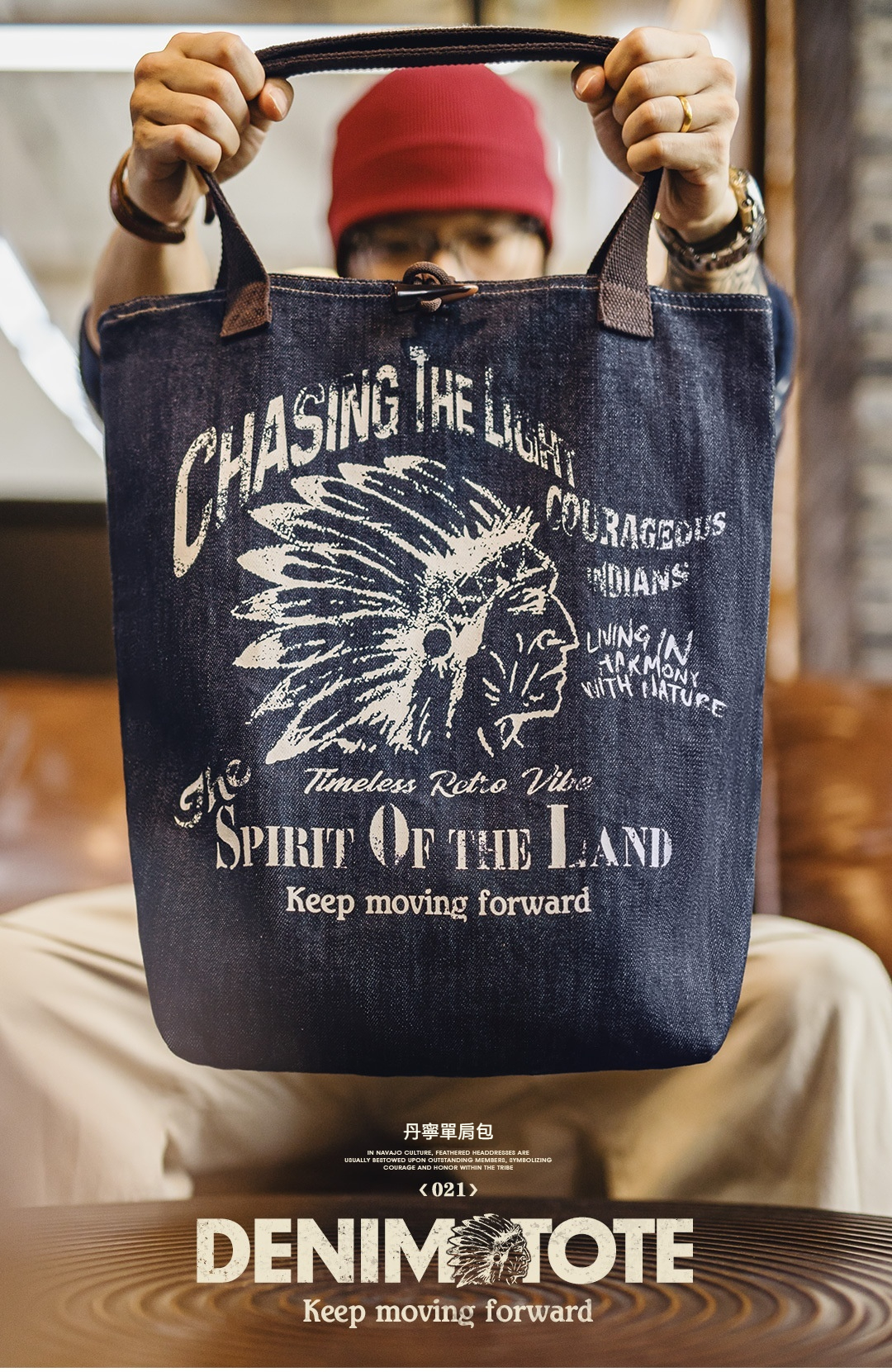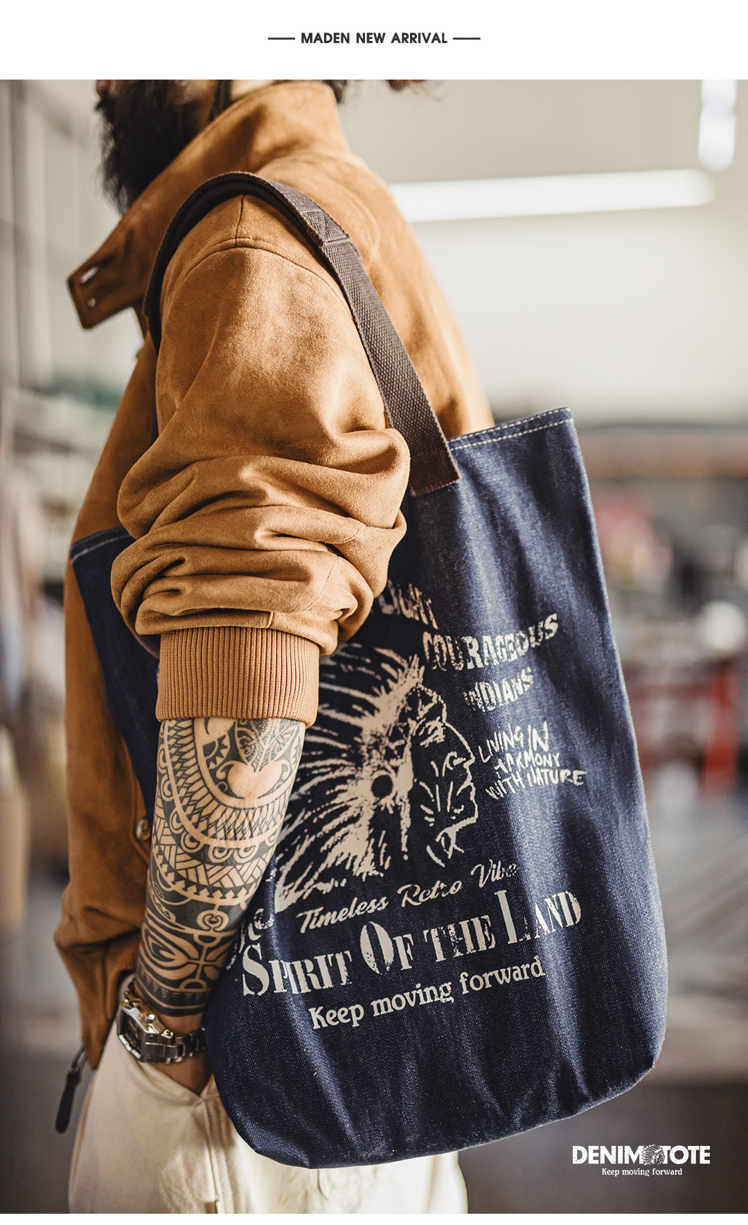 美式復古牛仔大容量托特包丹寧通勤單肩包做舊手提包包男