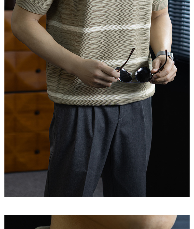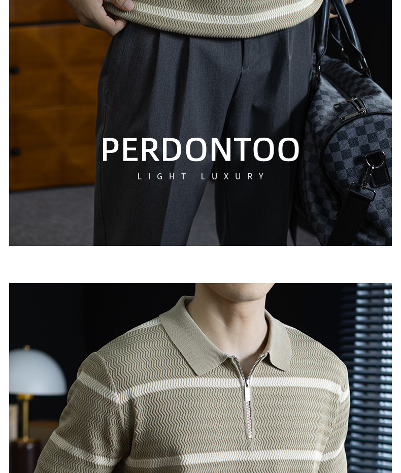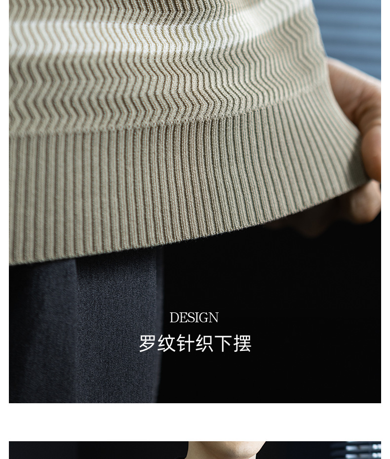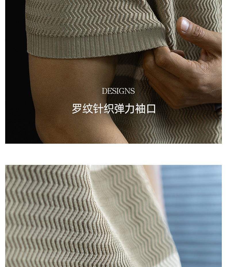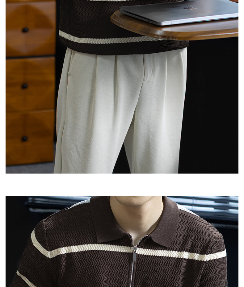 美式復古風!輕奢撞色條紋針織衫男士短袖半拉鍊翻領休閒百搭短袖Polo衫