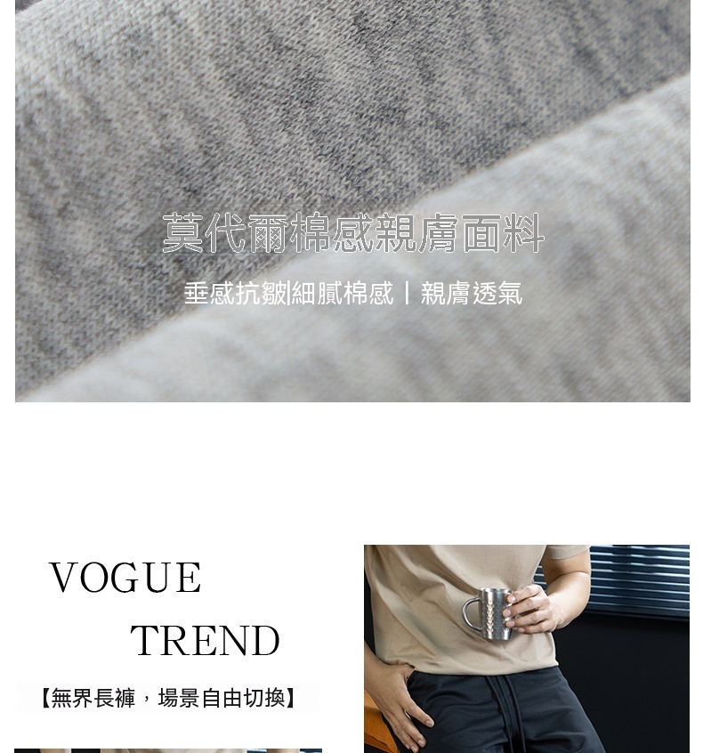 美式簡約風親膚莫代爾棉針織休閒褲男士夏季高彈抗皺寬鬆直筒長褲
