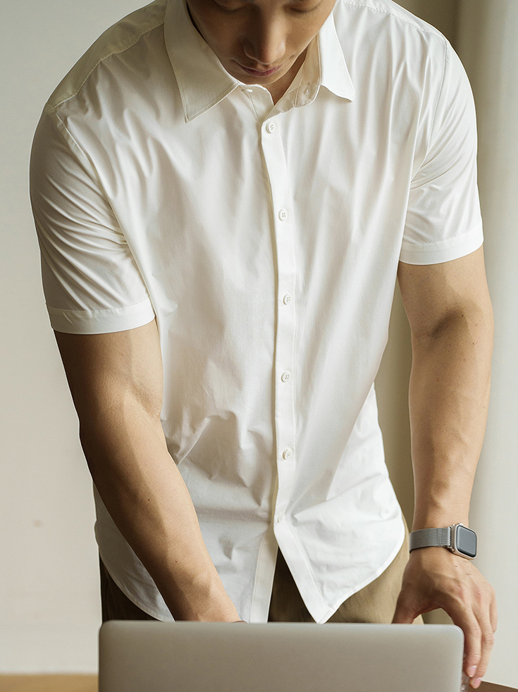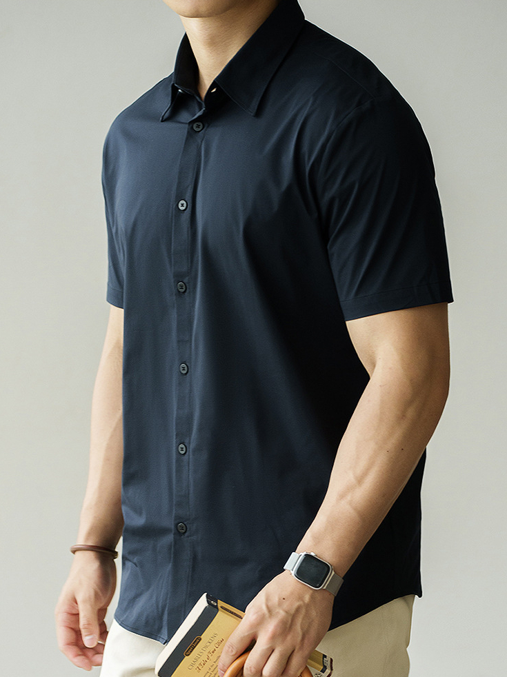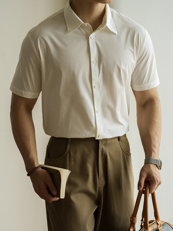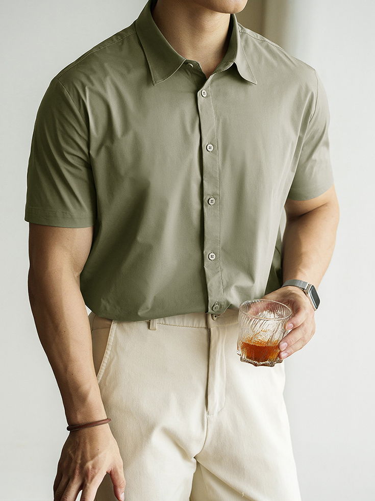 美式速乾涼感翻領短袖襯衫男款2025夏季簡約吸濕排汗休閒新款襯衣