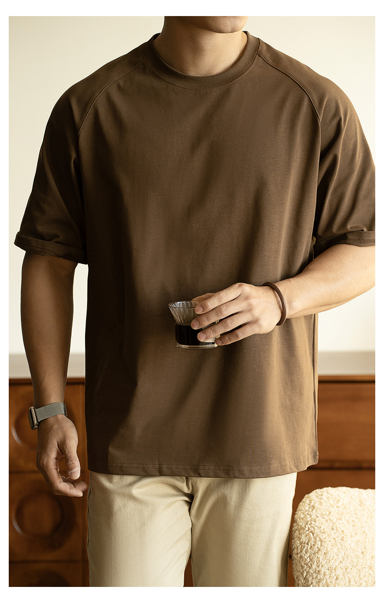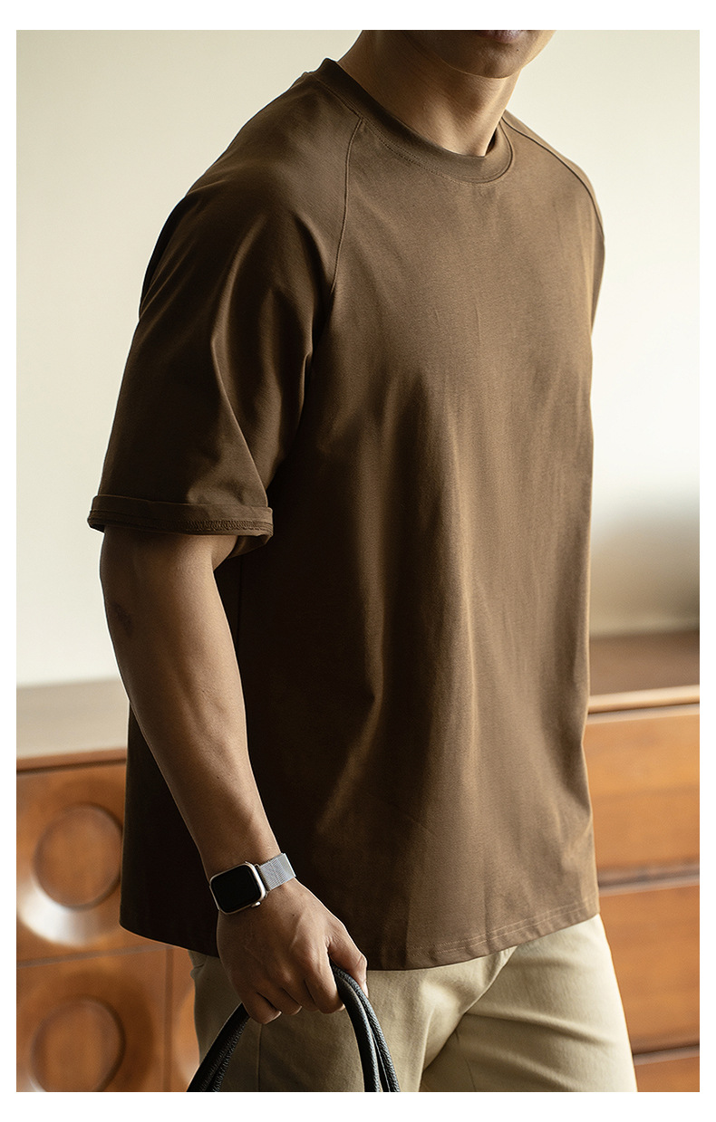 美式300G重磅7A抑菌防曬插肩袖廓形寬鬆T恤男士2025春夏運動短袖