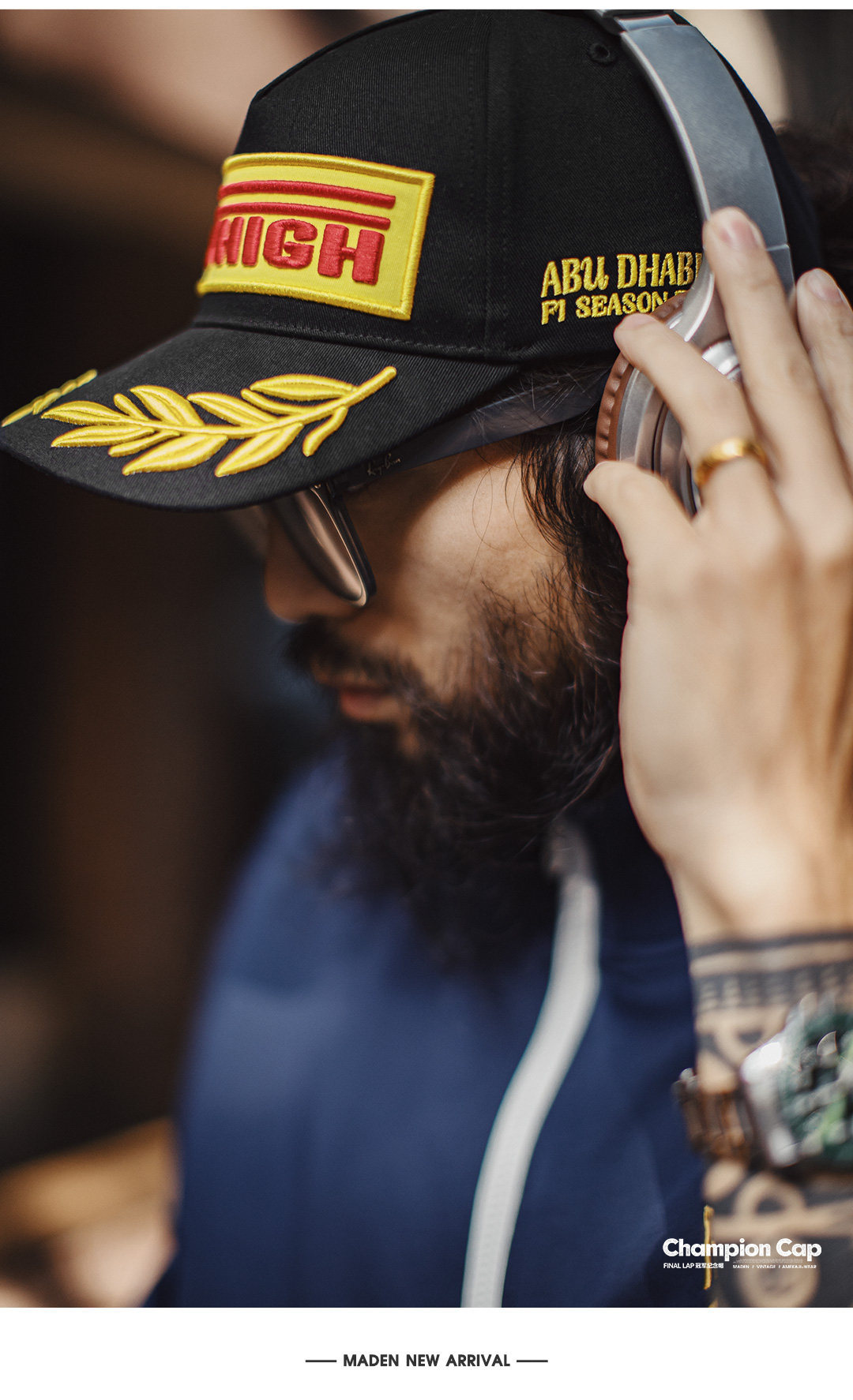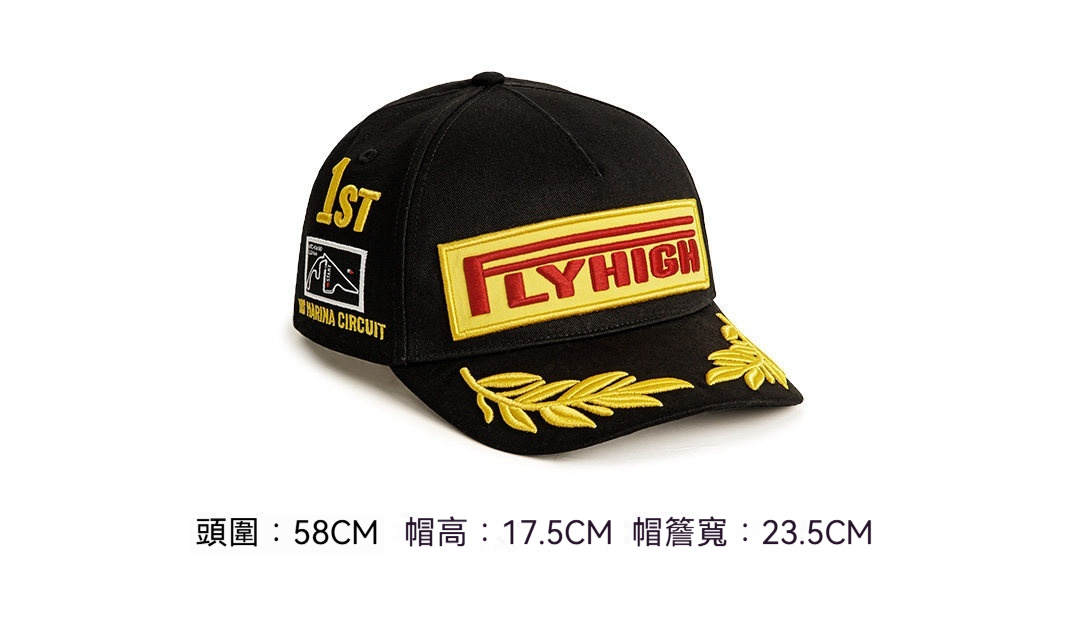 美式F1帽子冠軍刺繡平簷棒球帽黑色大頭圍鴨舌帽男款春