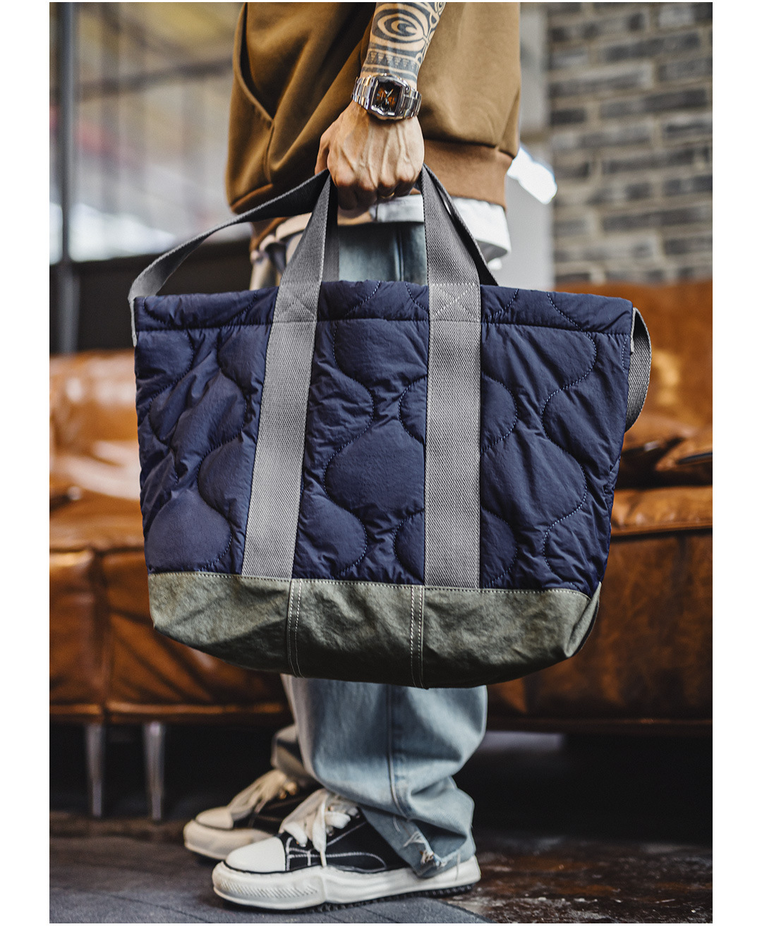 美式M65大容量內膽托特包電腦包通勤單肩包百搭手提包男