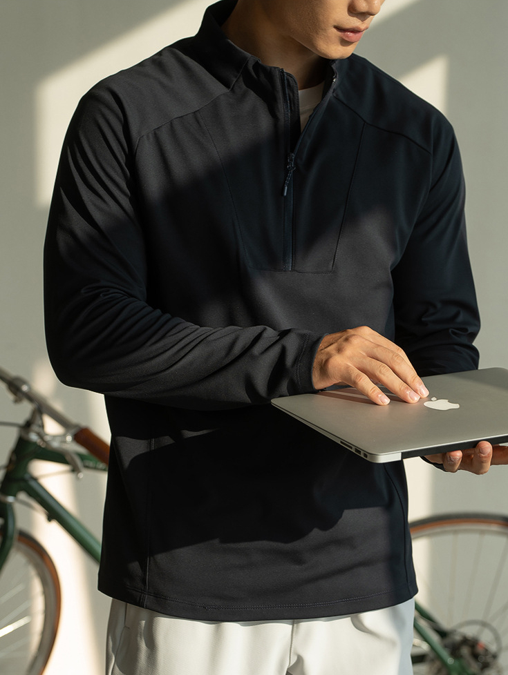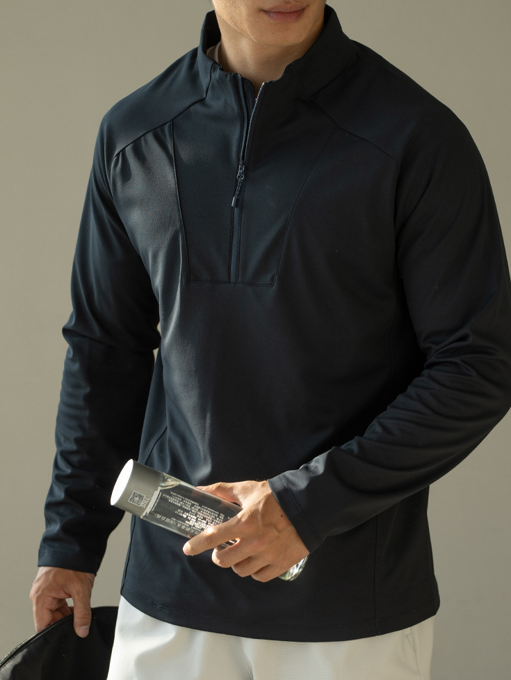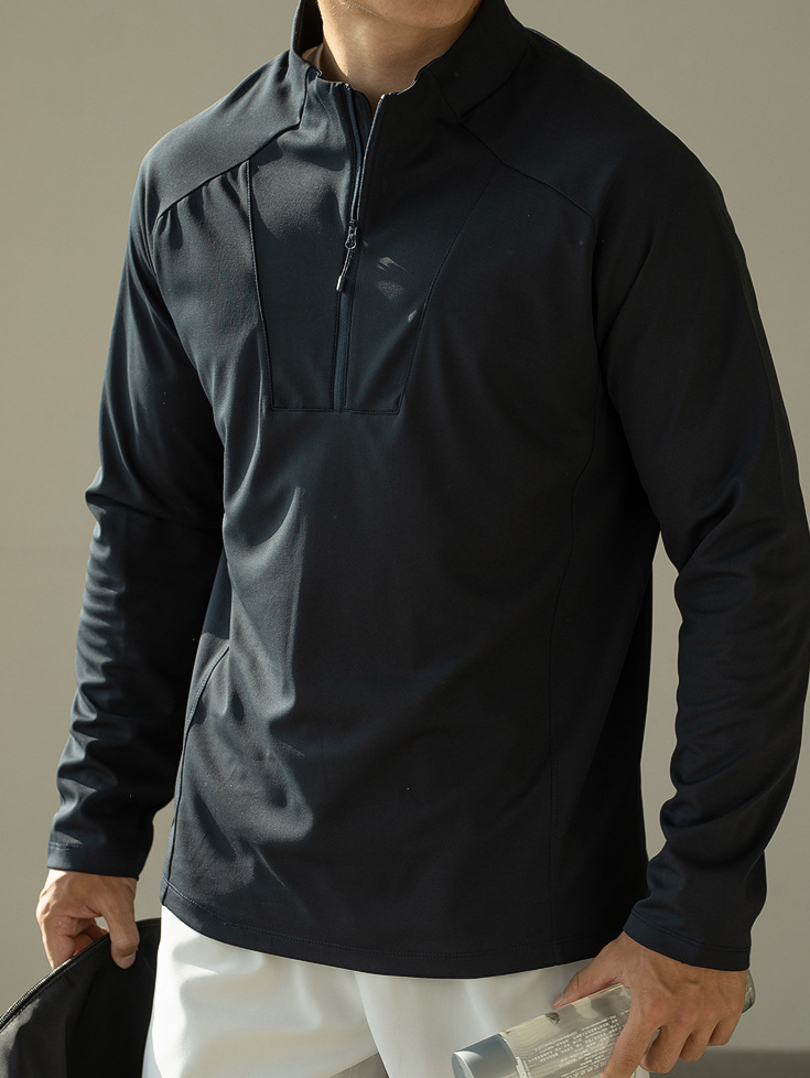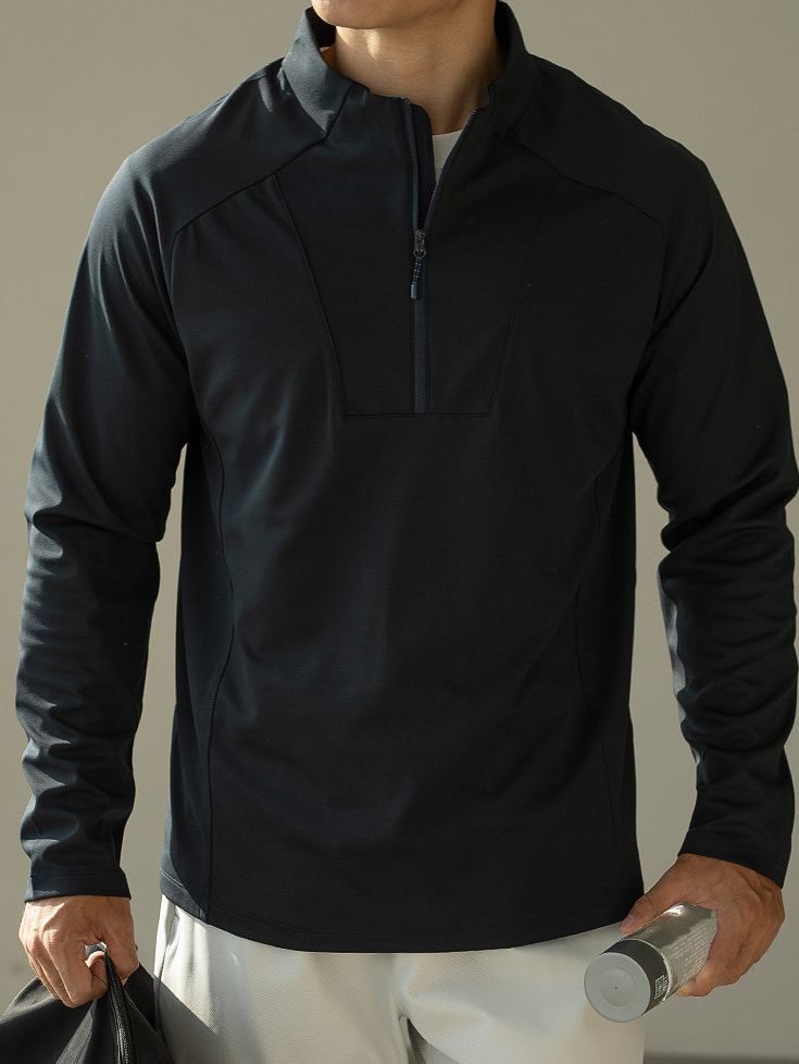 老錢風半開拉鍊小立領衛衣男士2025秋抗皺易打理高彈保暖長袖衛衣