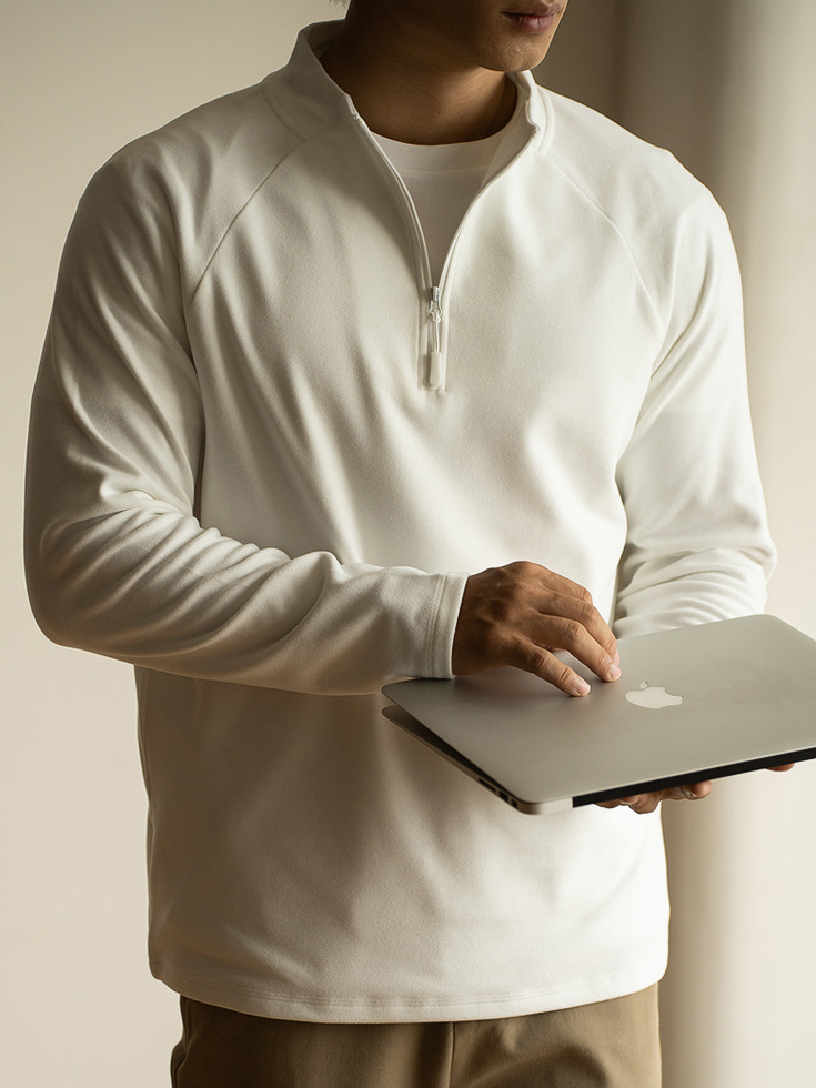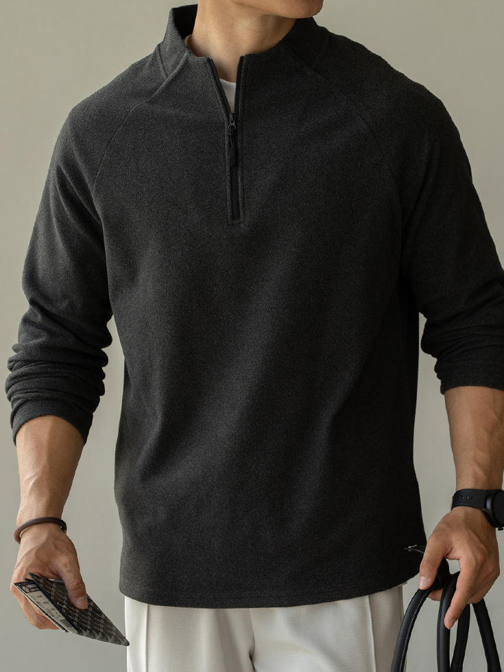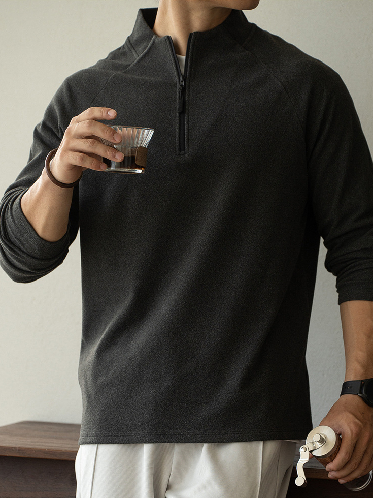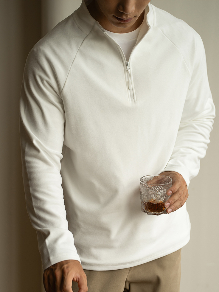 老錢風德絨面料拉鍊立領衛衣男士2025年秋冬季高彈長袖新款T恤男