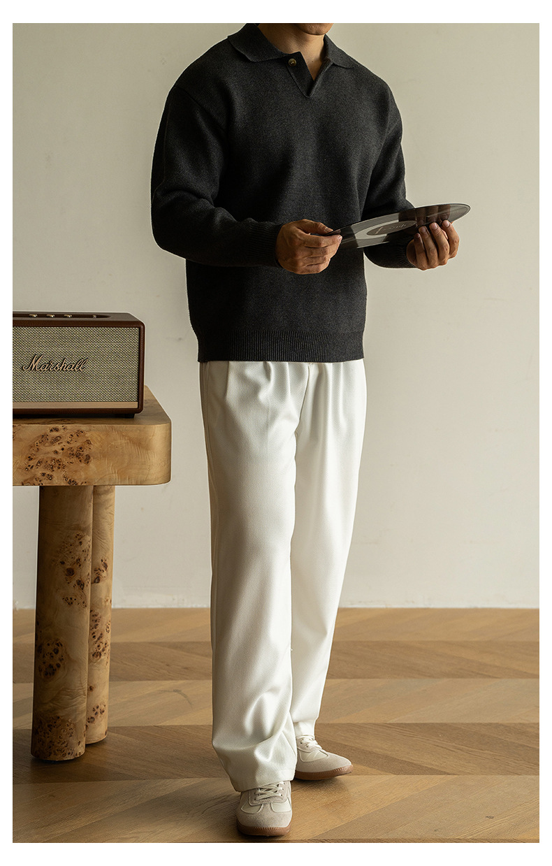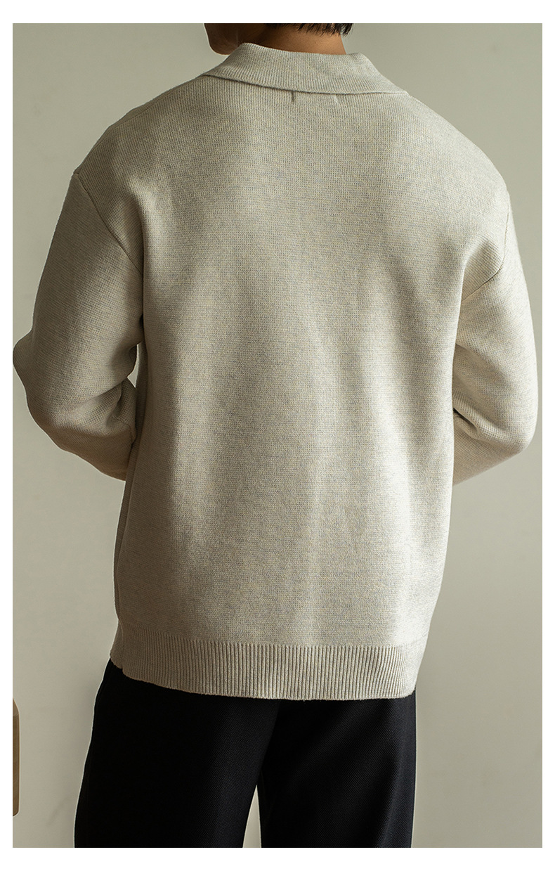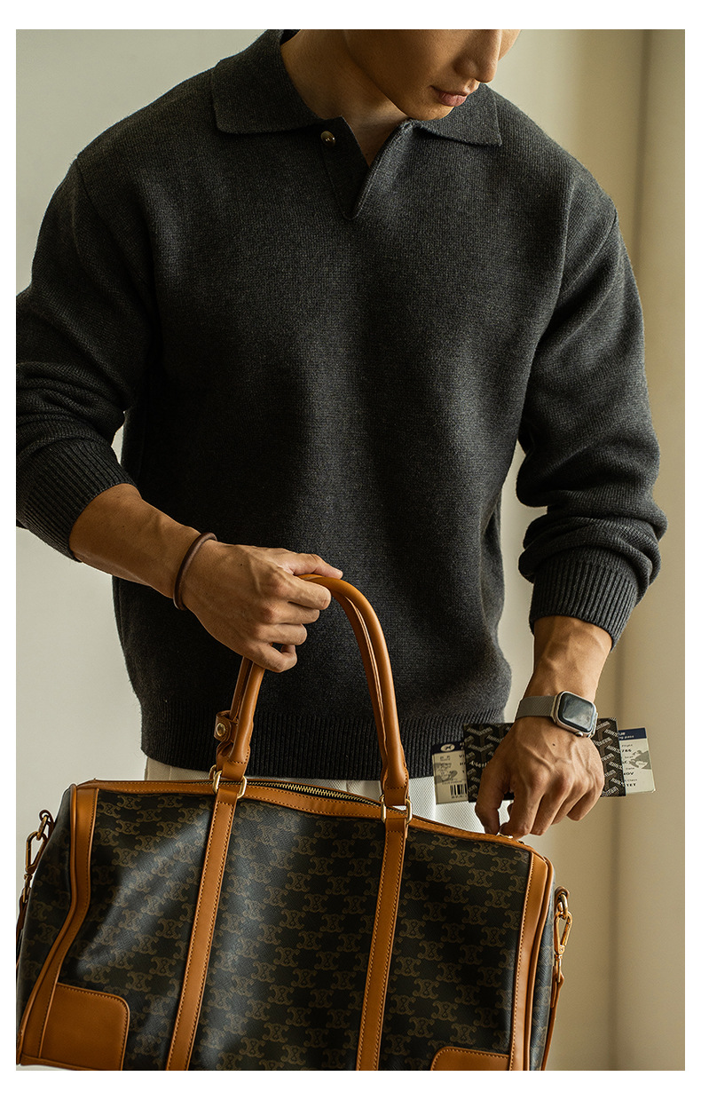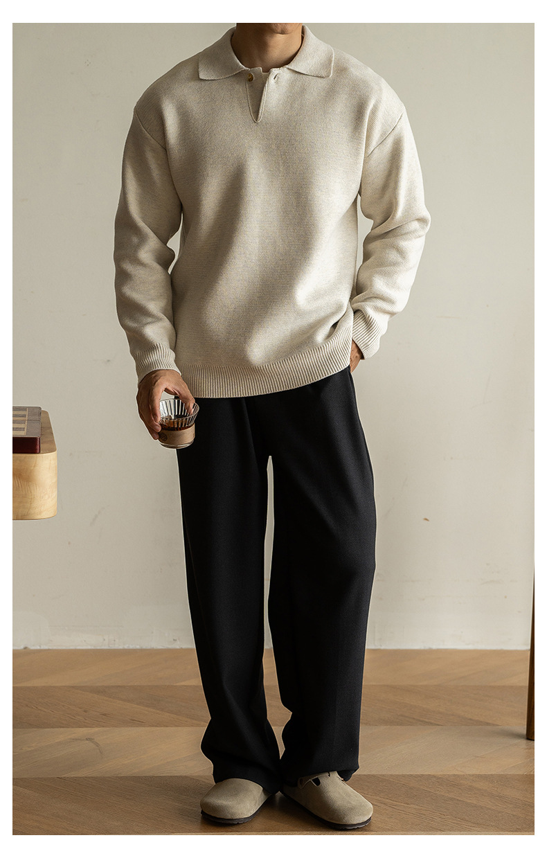 老錢風意式7針米絨翻領半開襟針織衫男士秋冬寬鬆休閒長袖polo衫