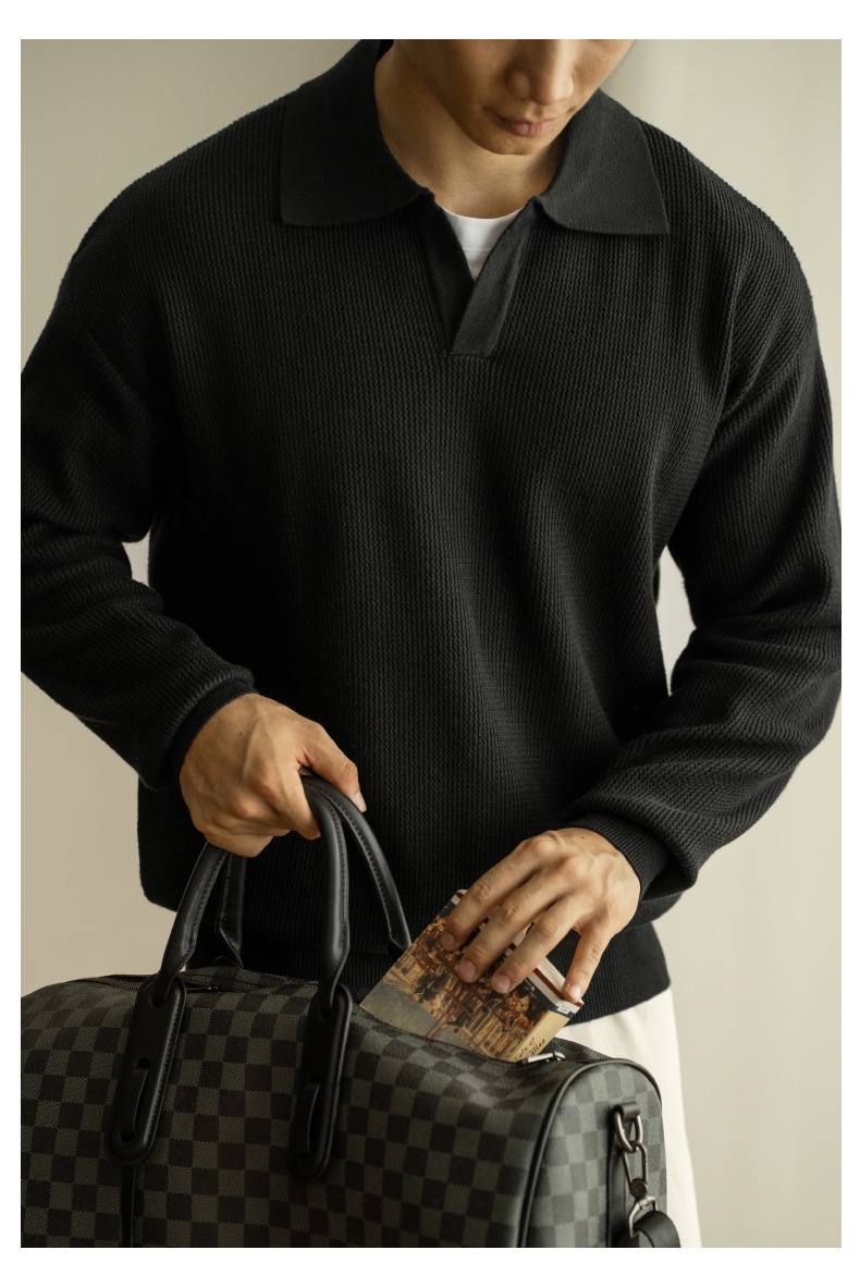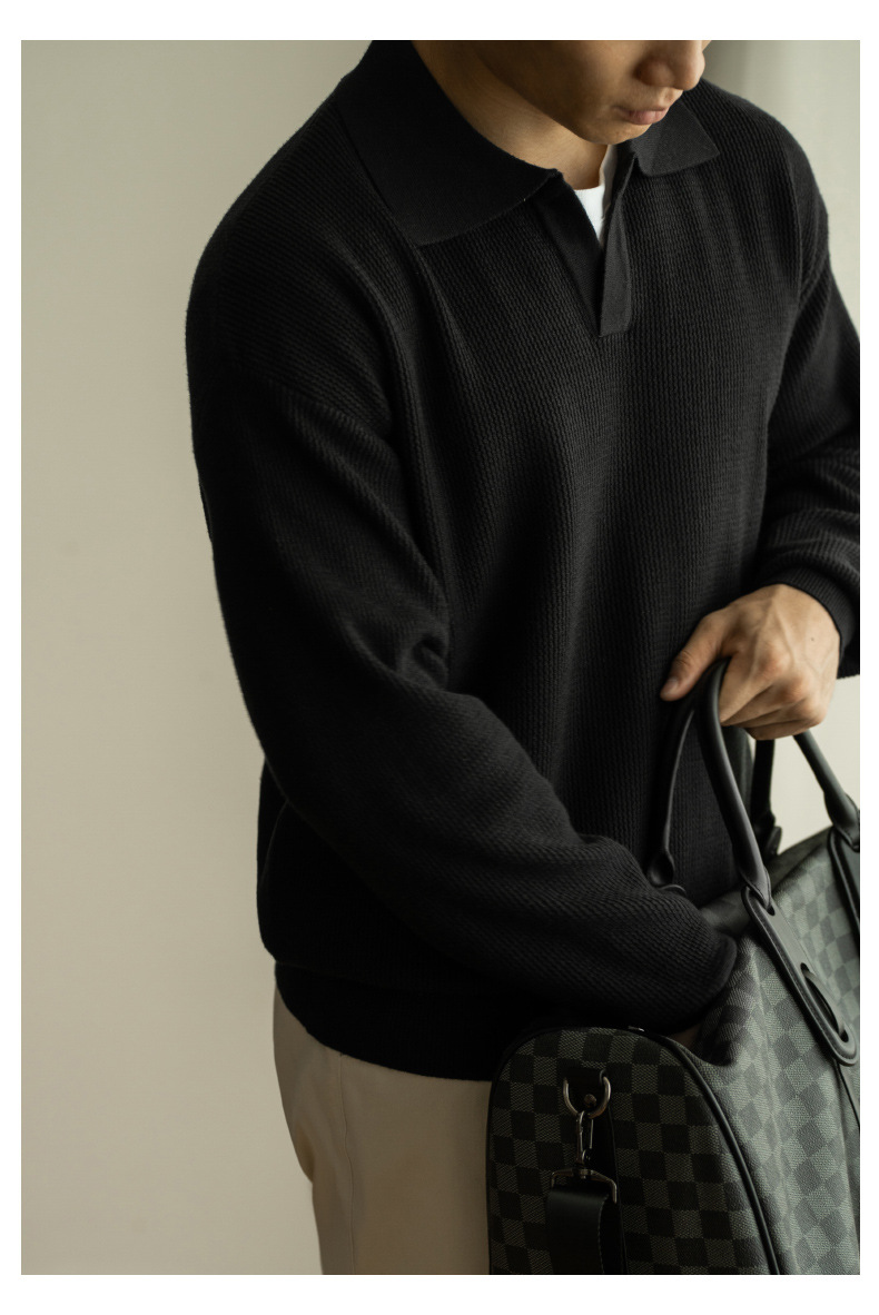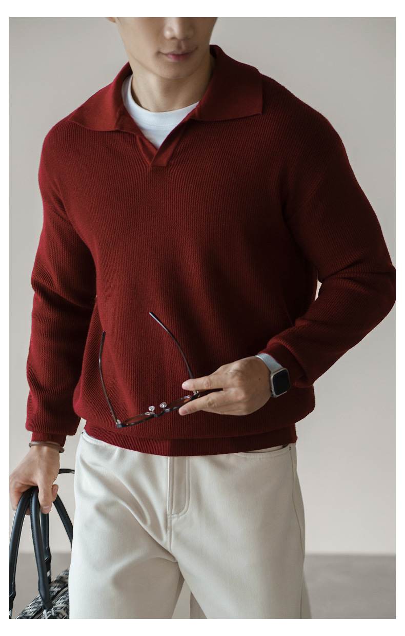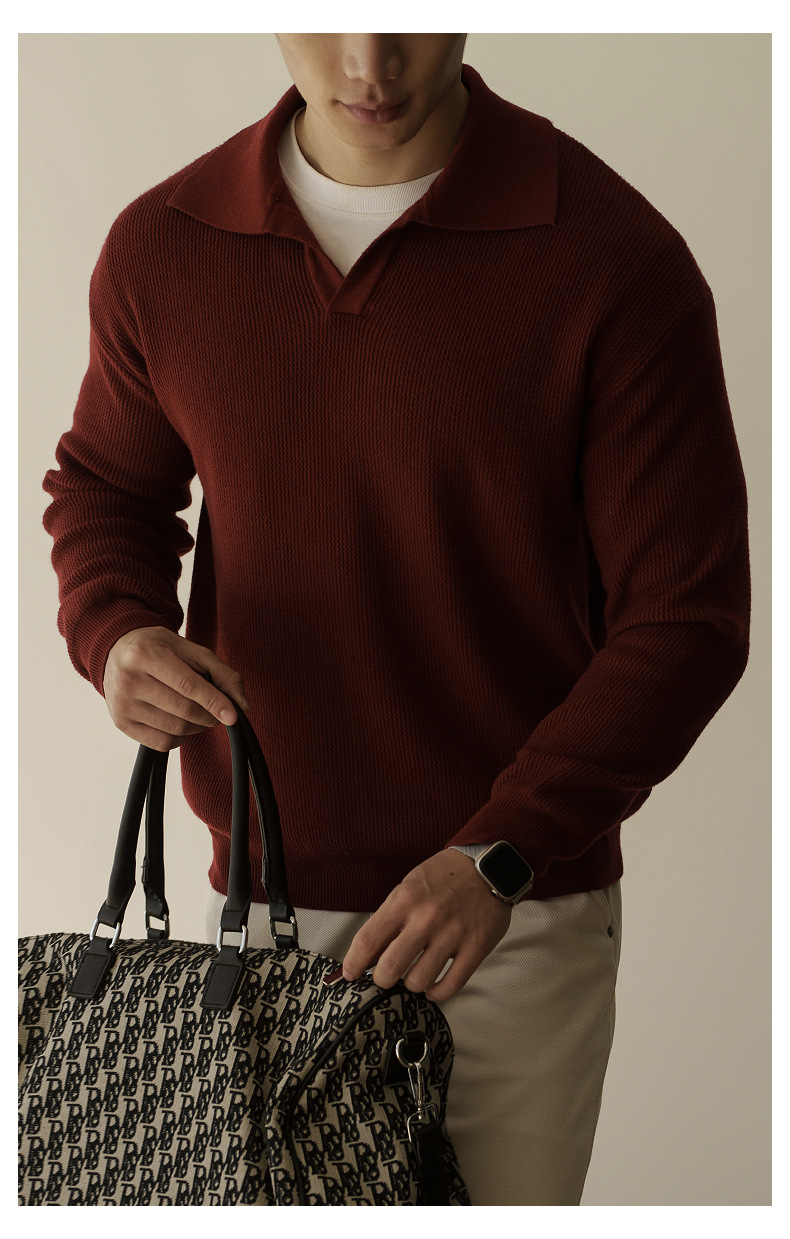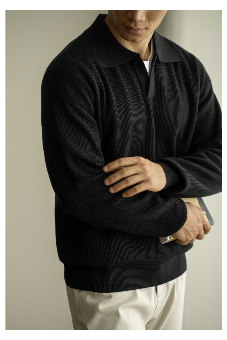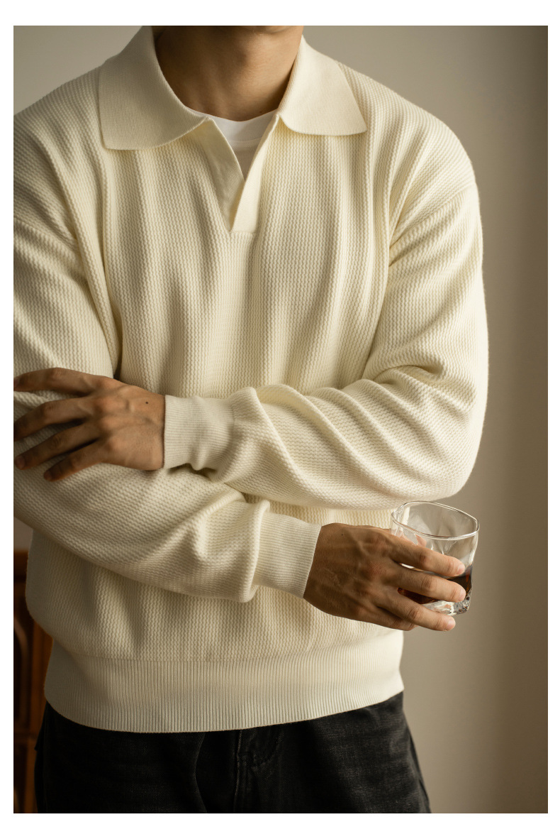 老錢風海鷗領長袖POLO針織衫男士2025秋冬老錢風14針保暖休閒毛衣