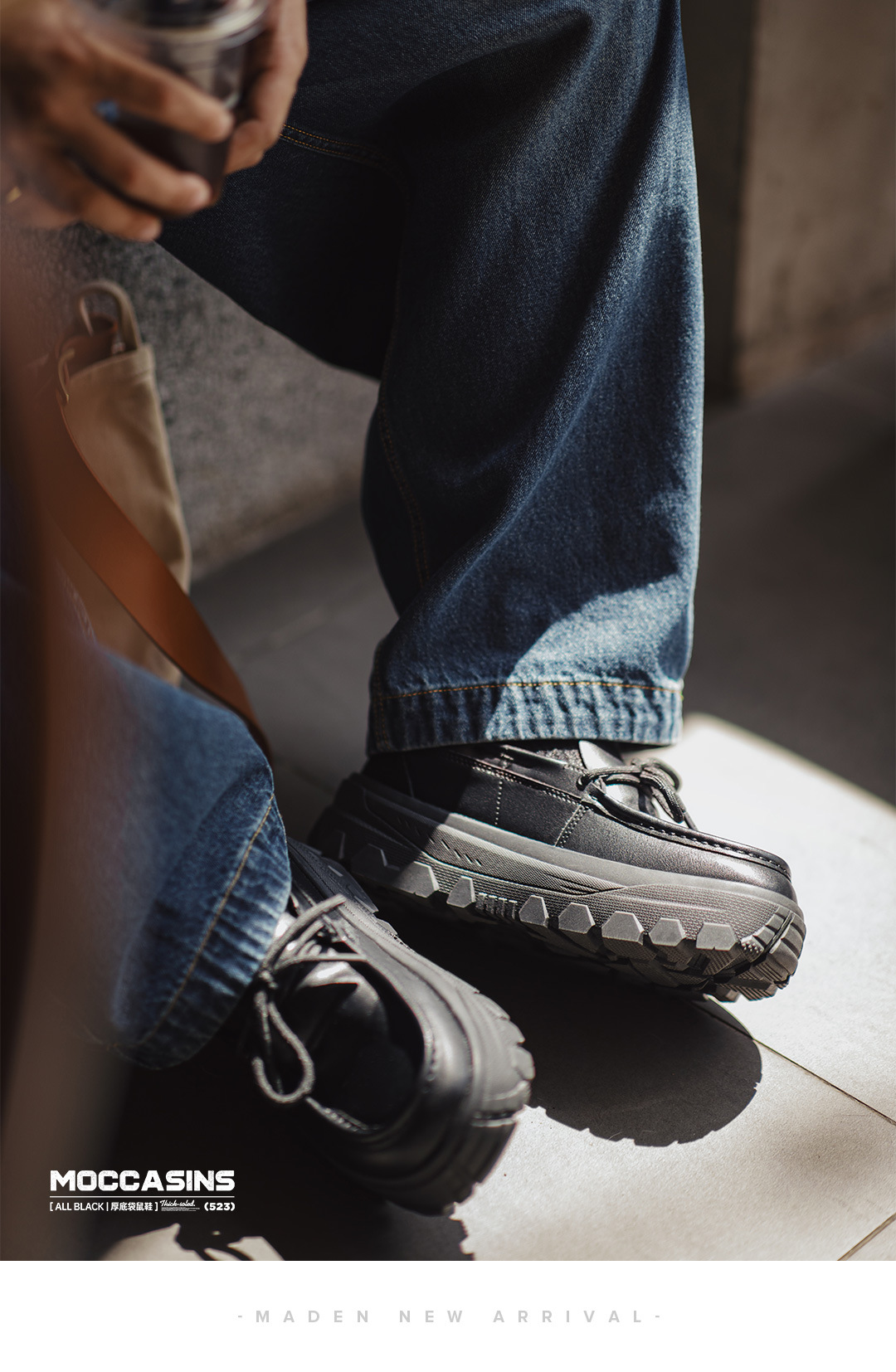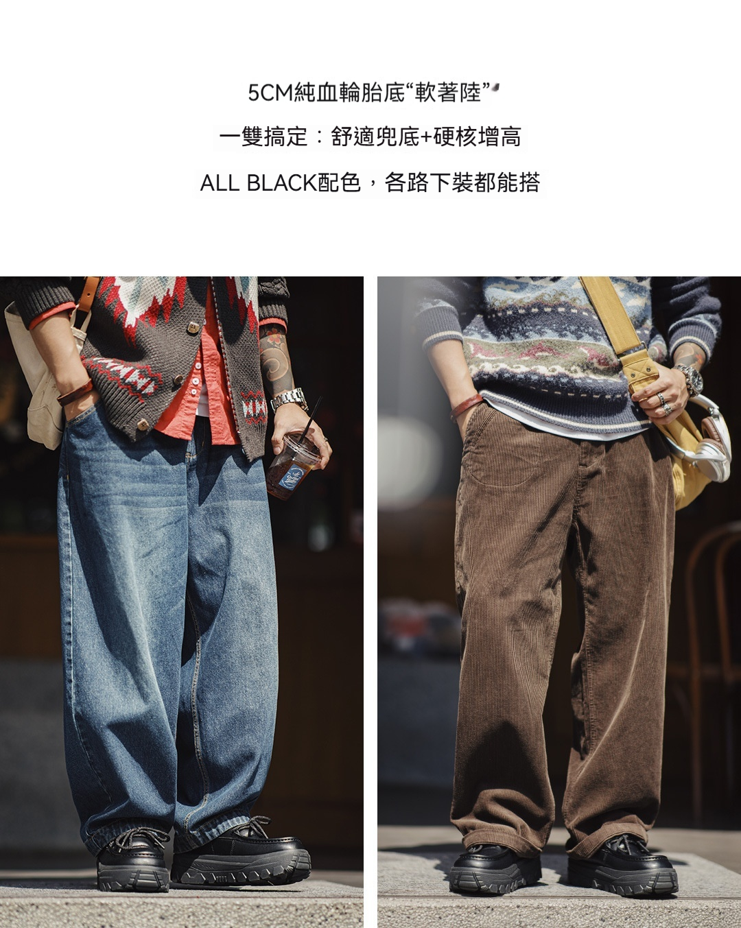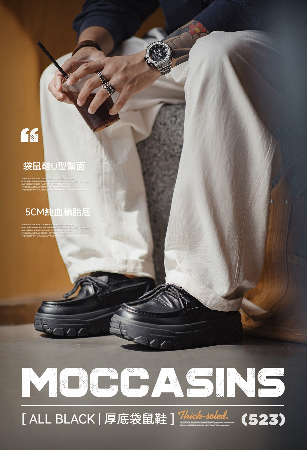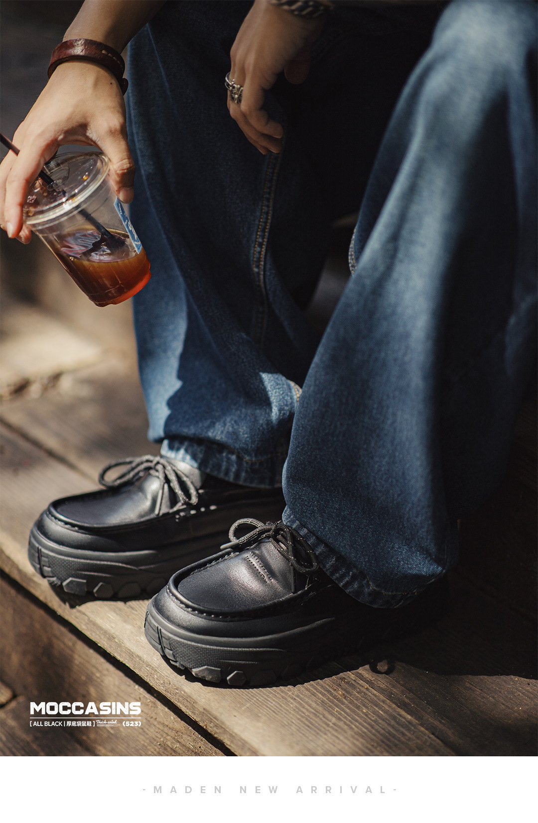 袋鼠鞋冬季新款男士厚底增高黑色通勤英倫風軟底方頭休閒皮鞋