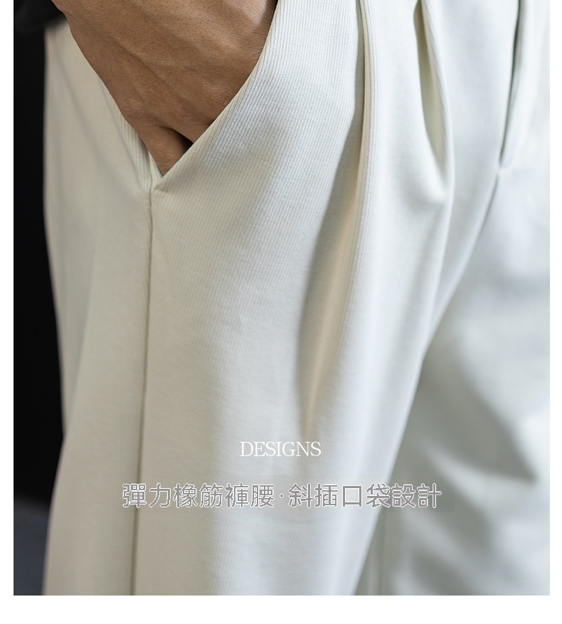 豎紋肌理感褶位男士休閒褲高彈針織直筒褲抗皺通勤西褲舒適零束縛