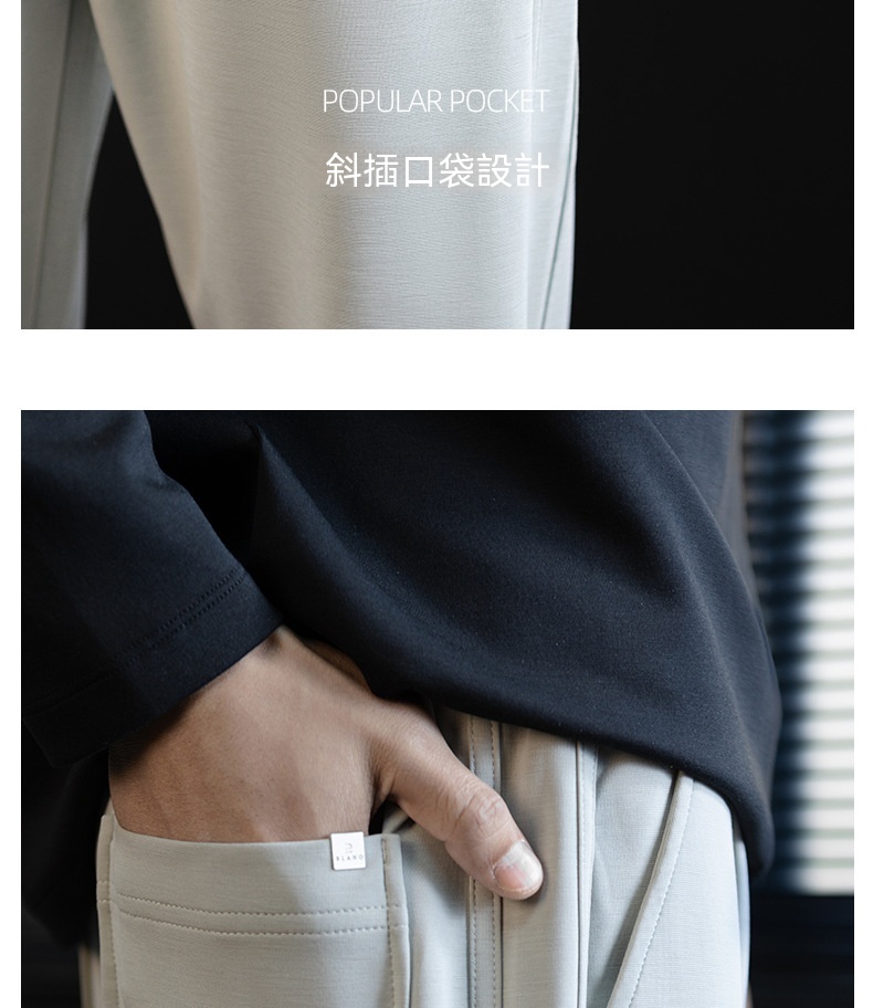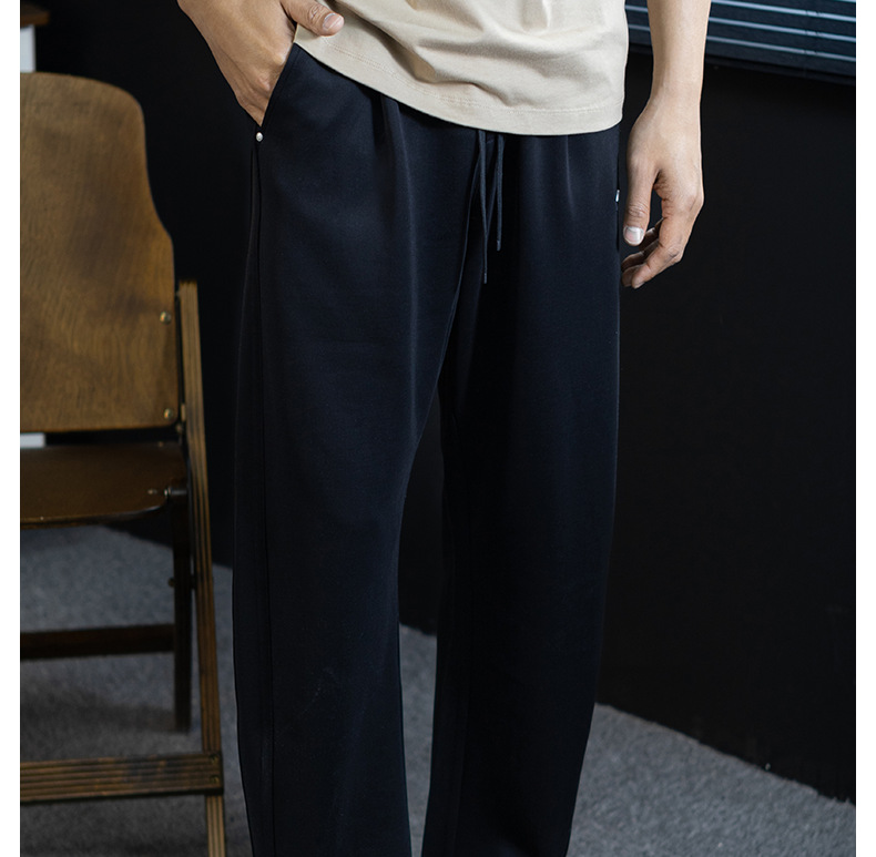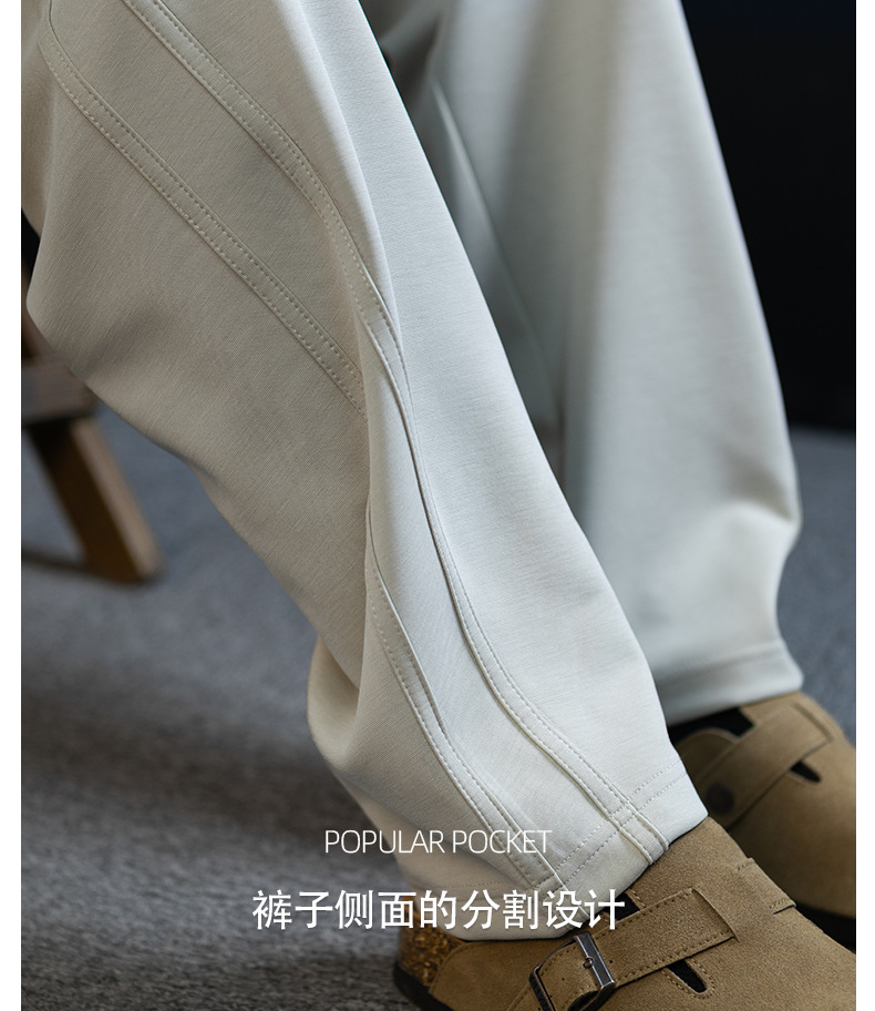 輕奢垂墜抗皺男士休閒褲2026新款抽繩腰刺繡口袋高級感寬鬆直筒褲