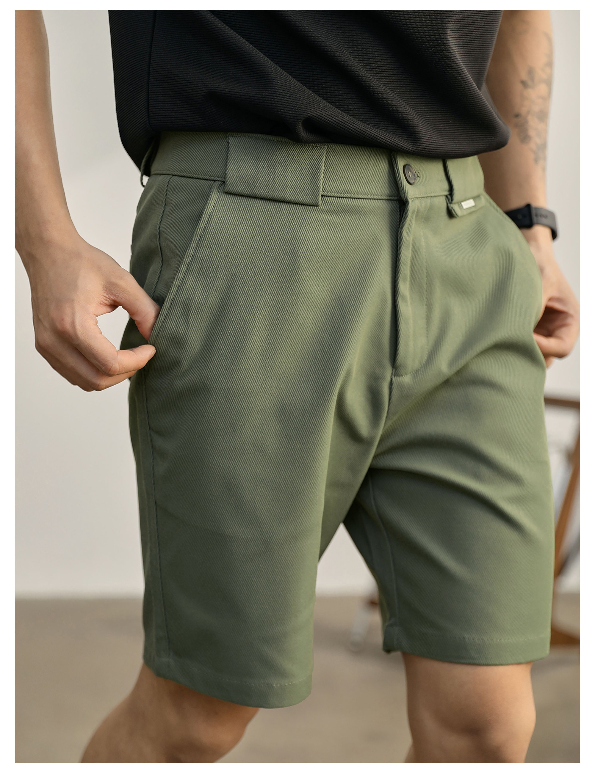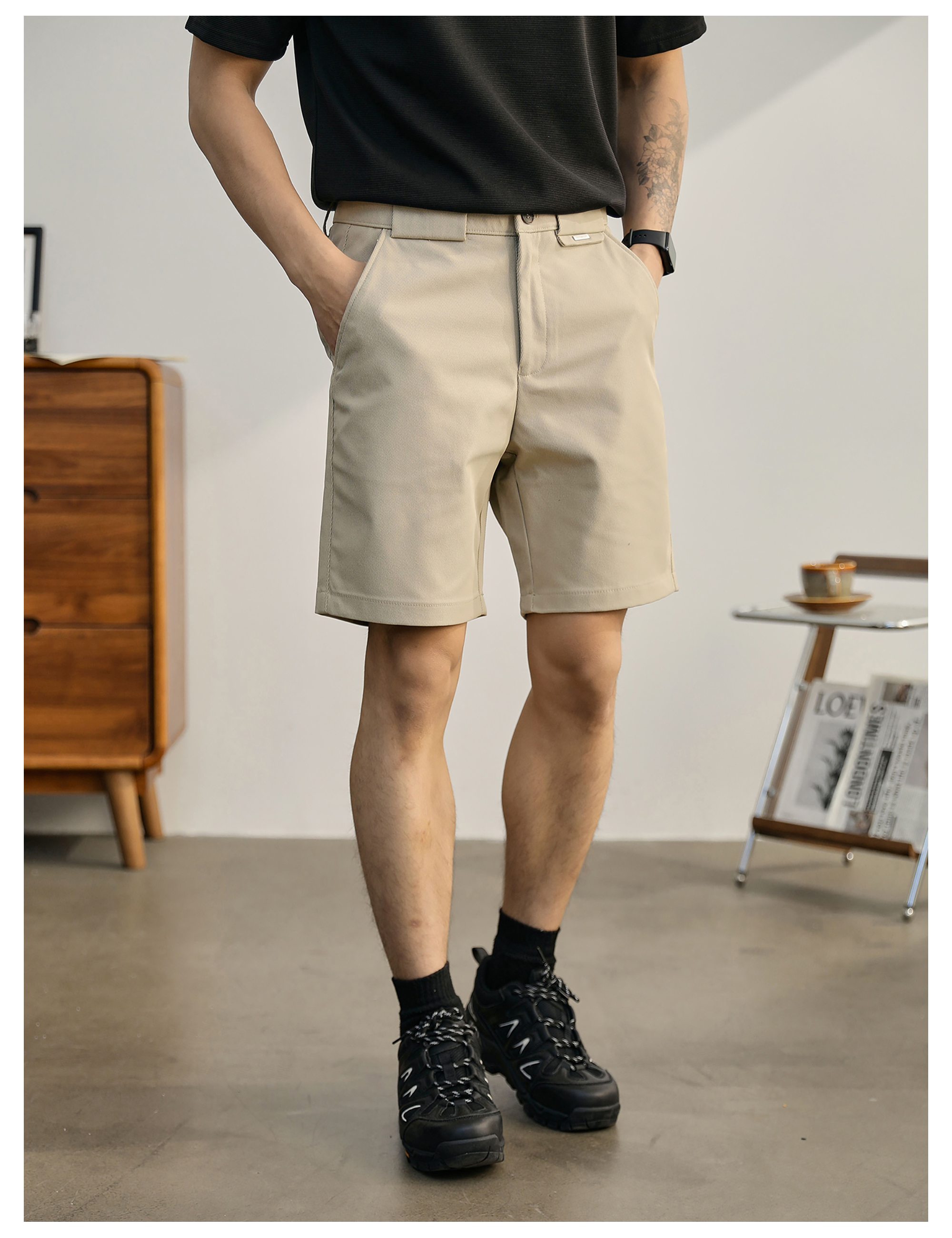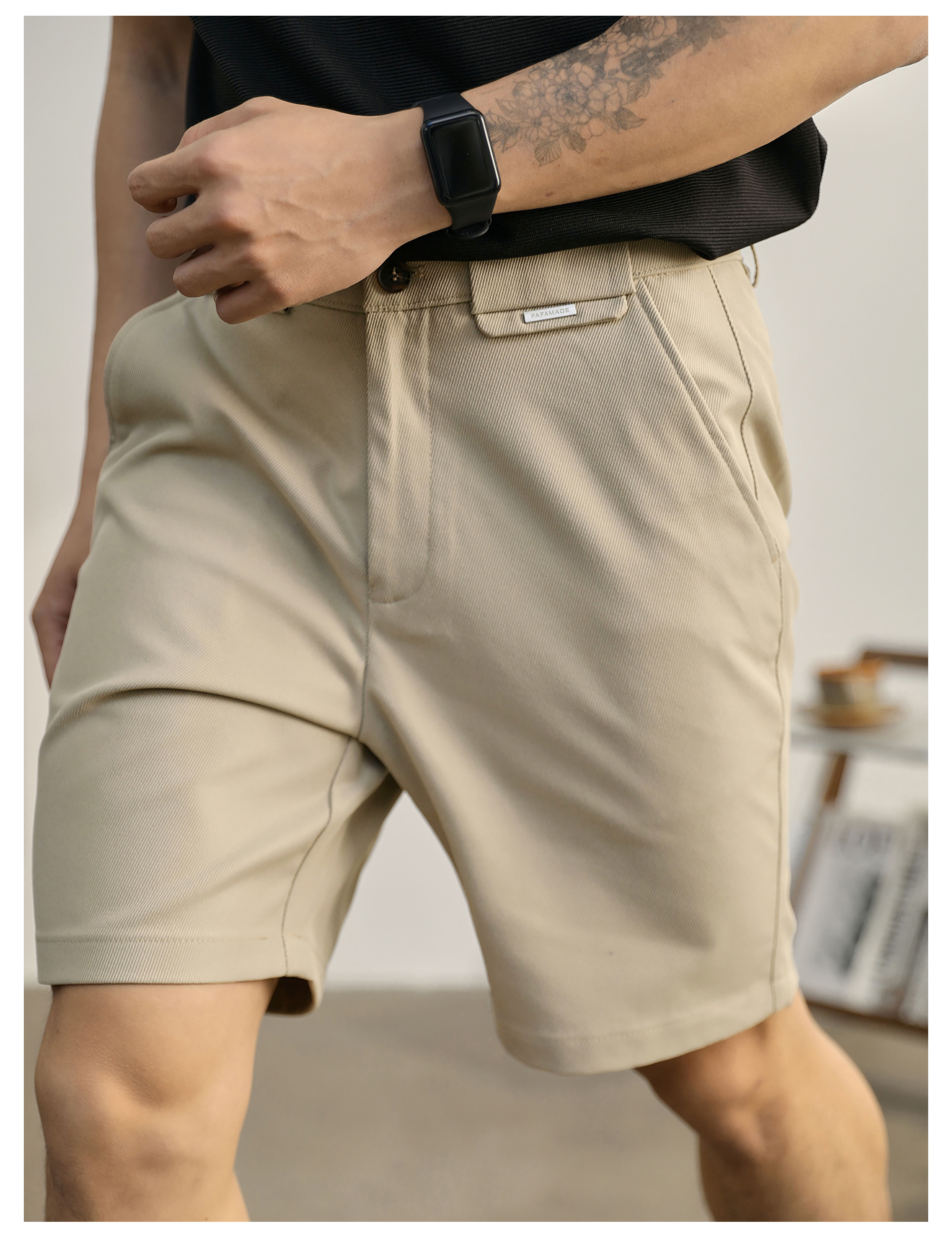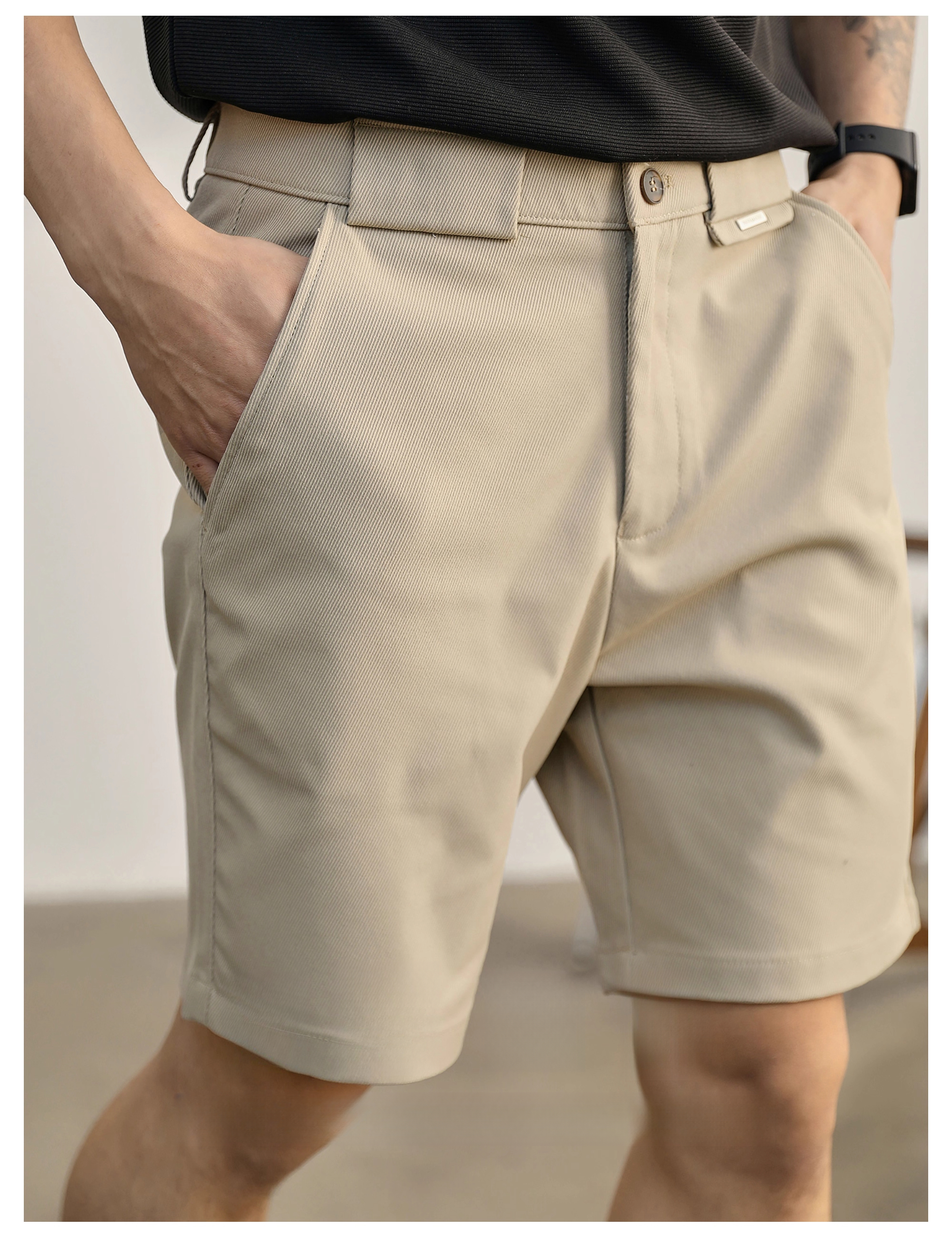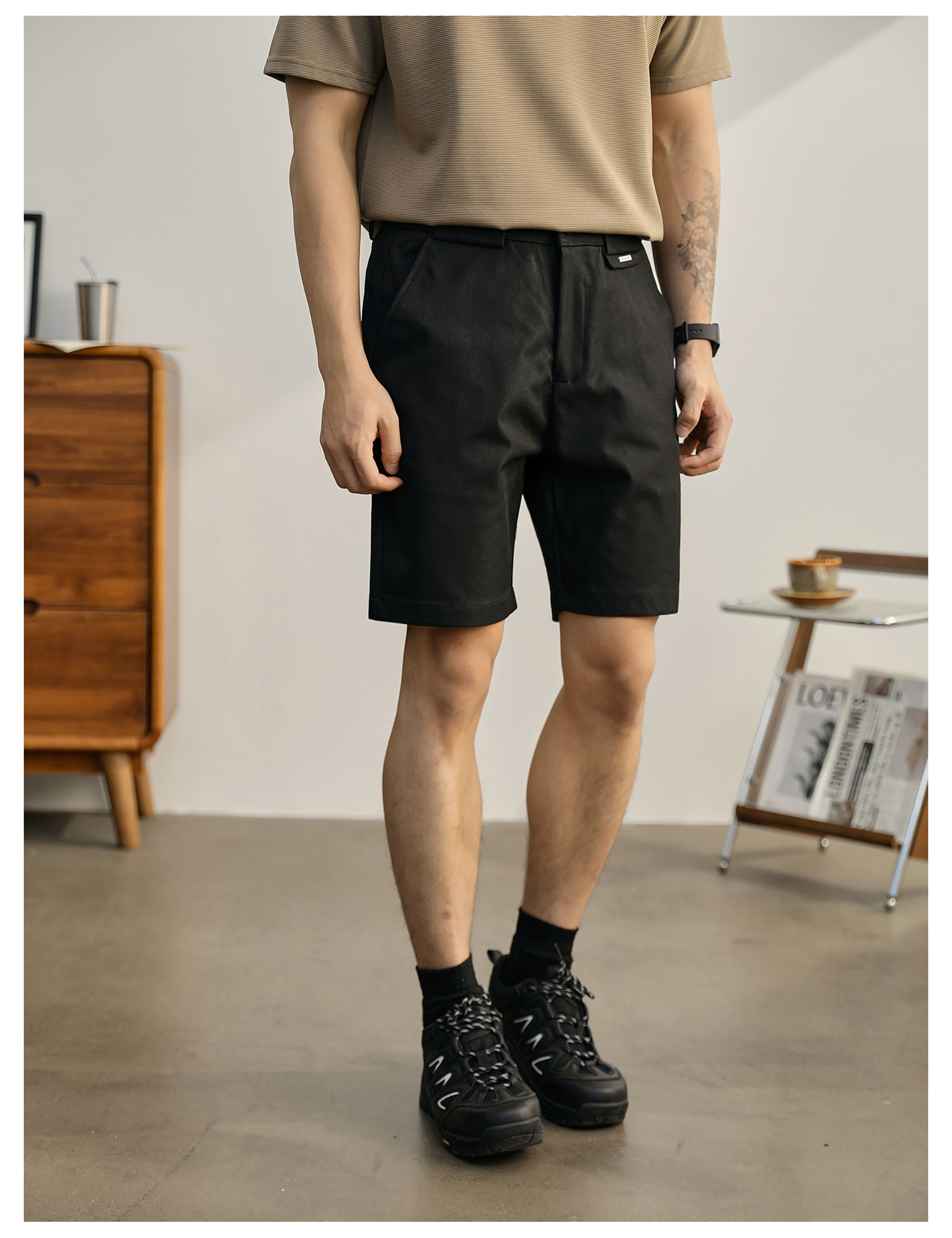 輕奢復古感合體小直筒短褲男夏裝百搭半鬆緊腰褲子立體中褲