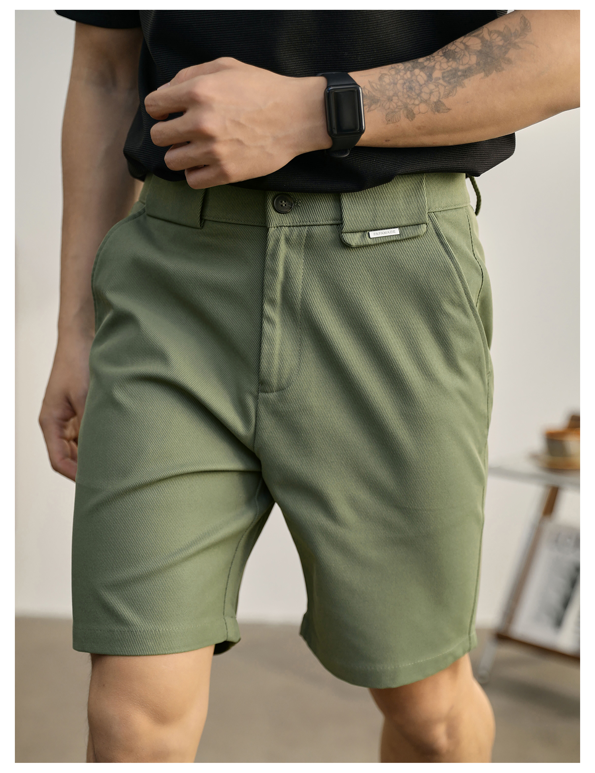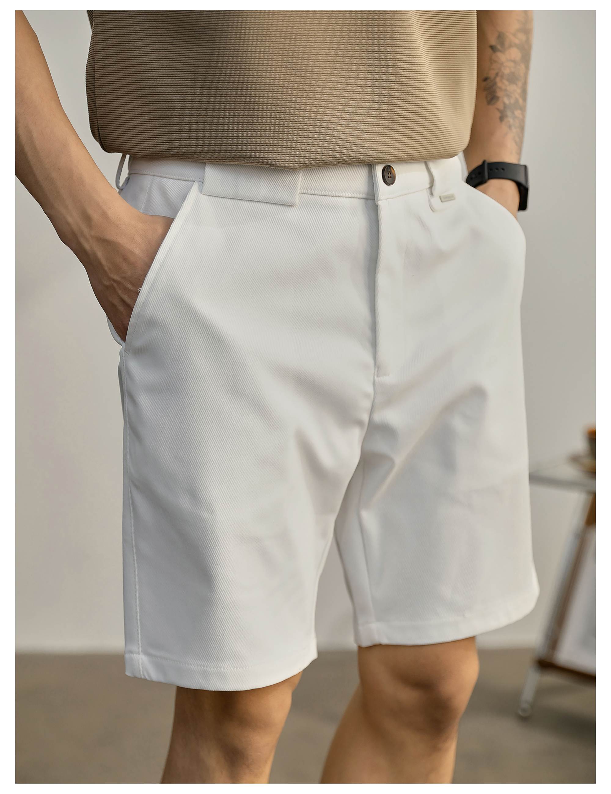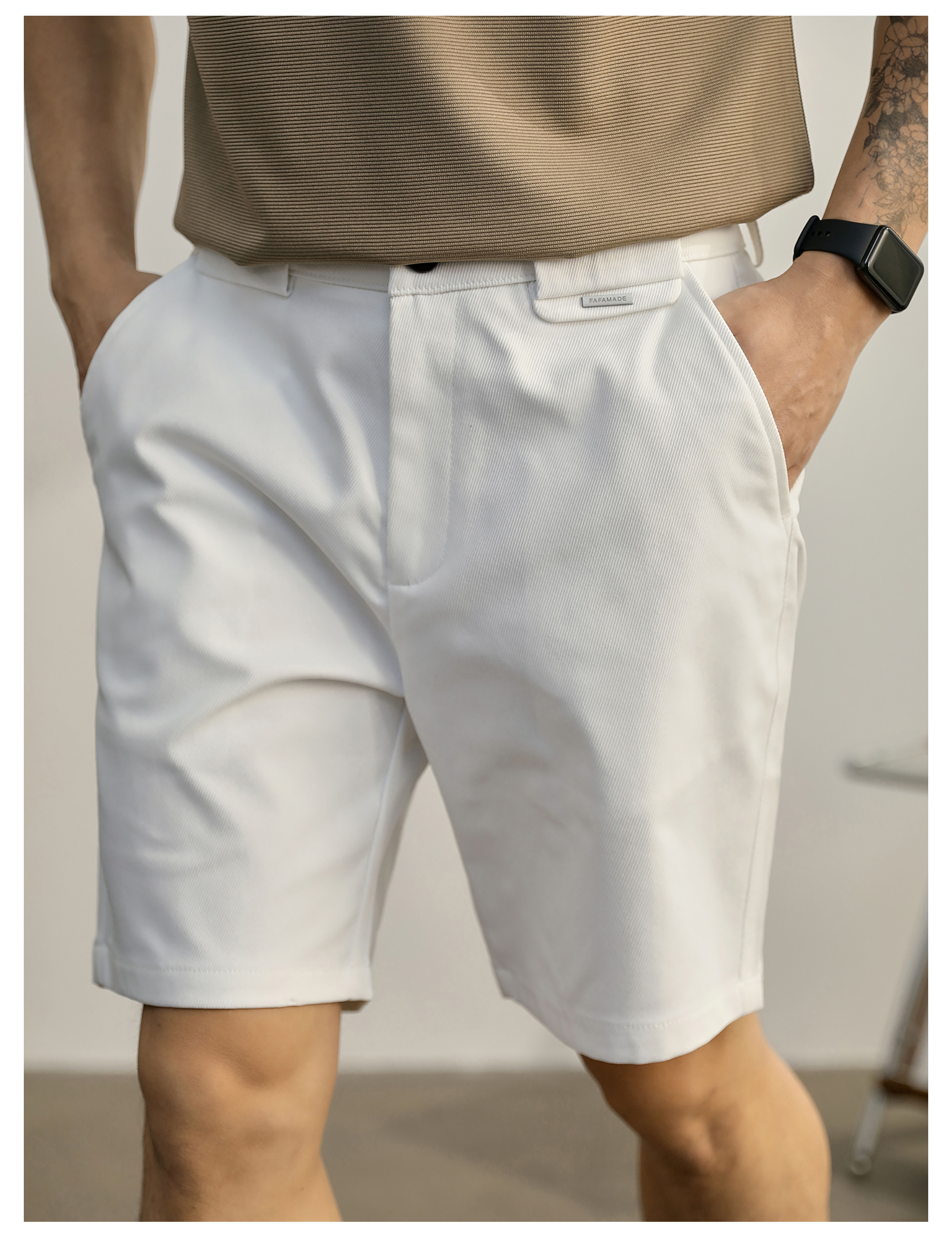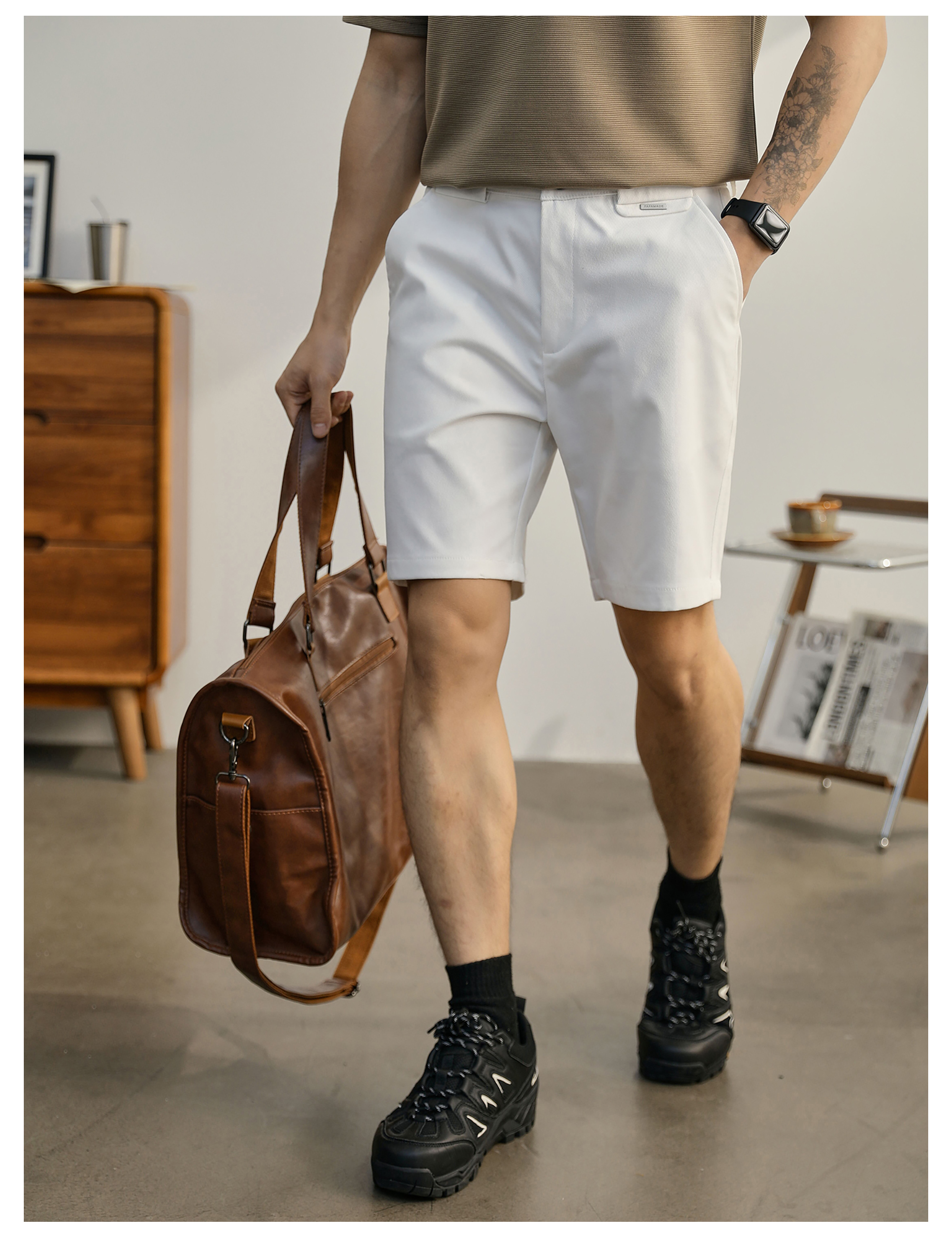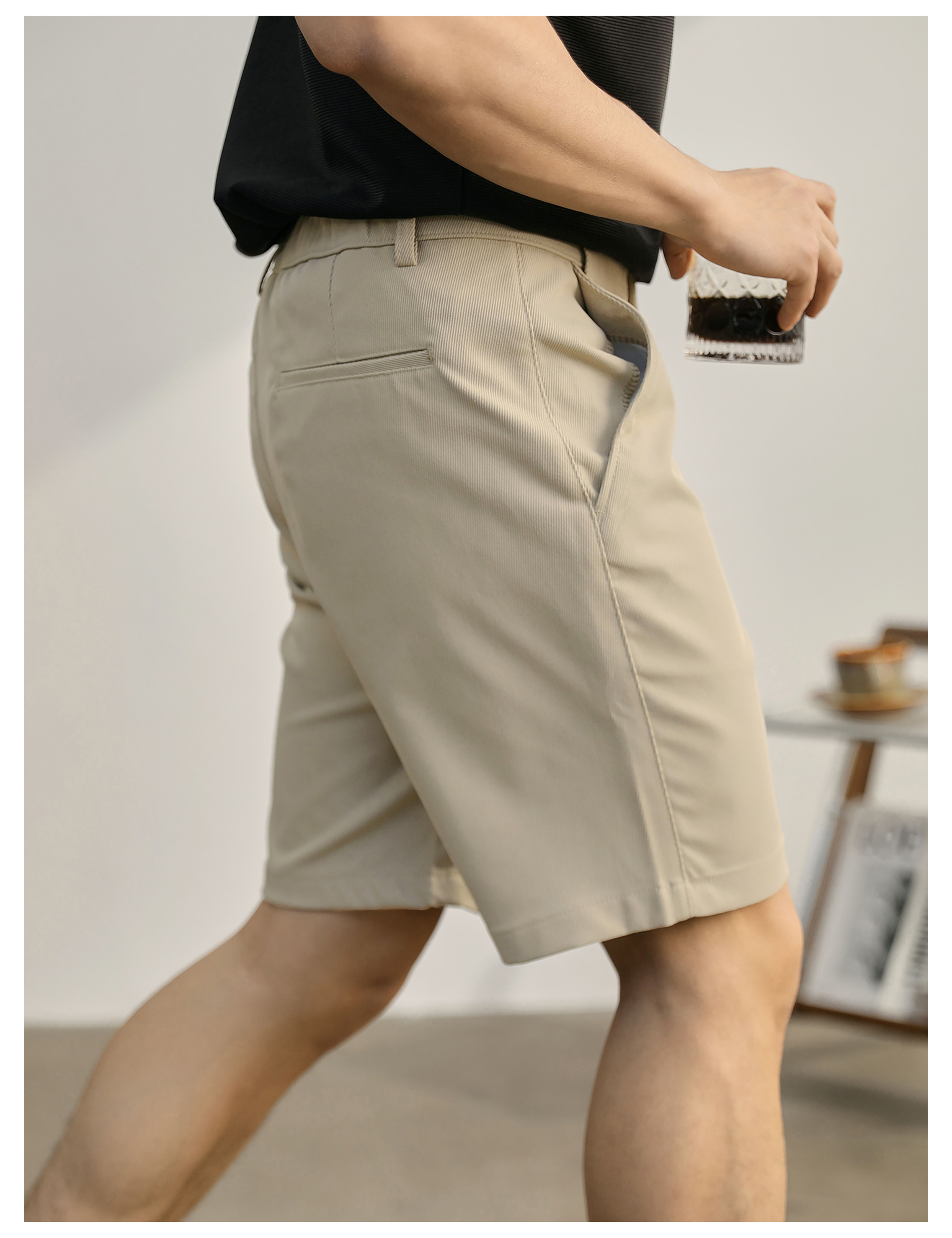 輕奢復古感合體小直筒短褲男夏裝百搭半鬆緊腰褲子立體中褲