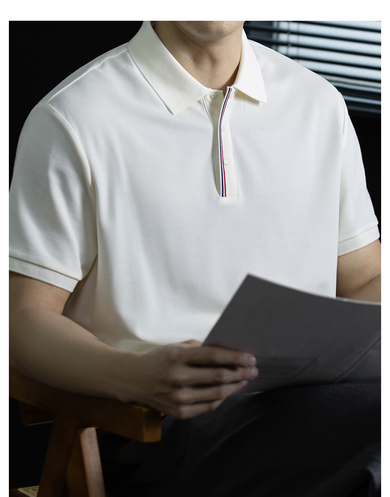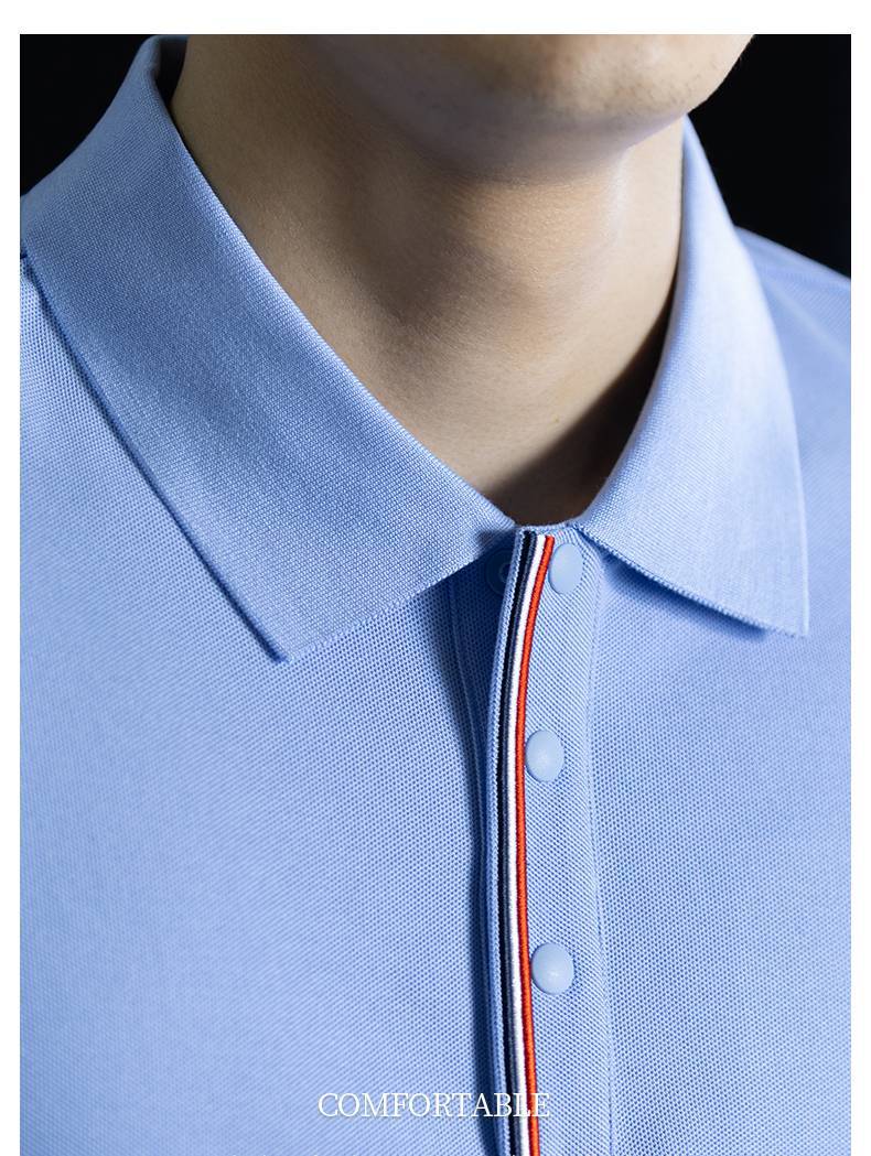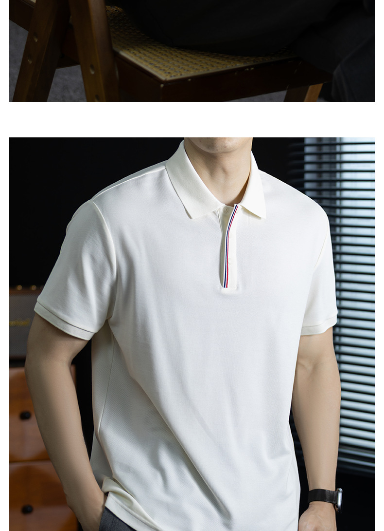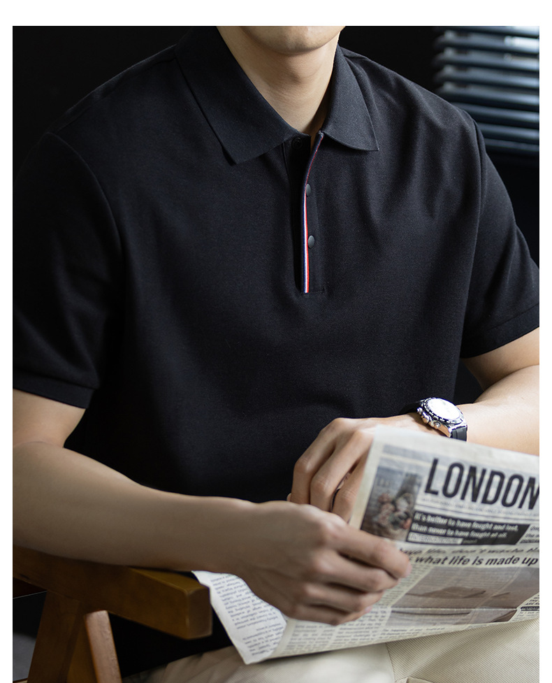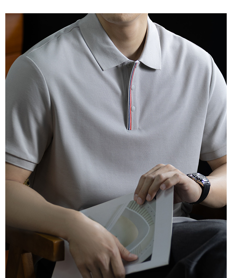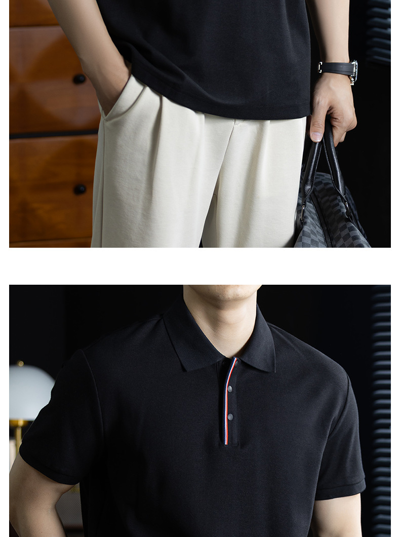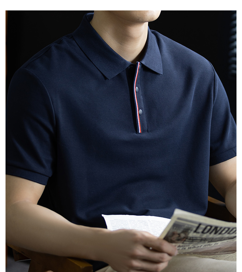 輕奢格調|冰感珠地棉短袖polo衫男撞色鑲邊夏季透氣休閒Polo衫