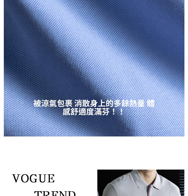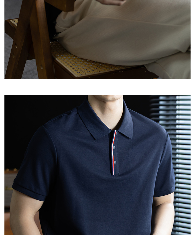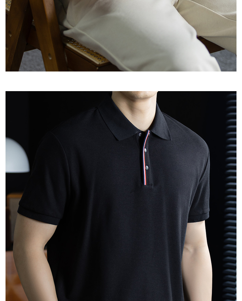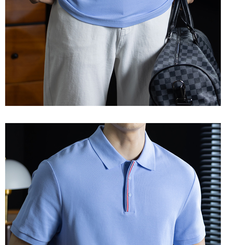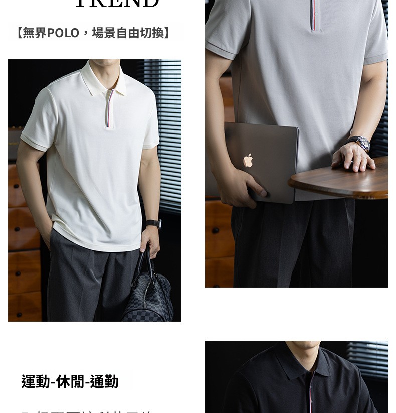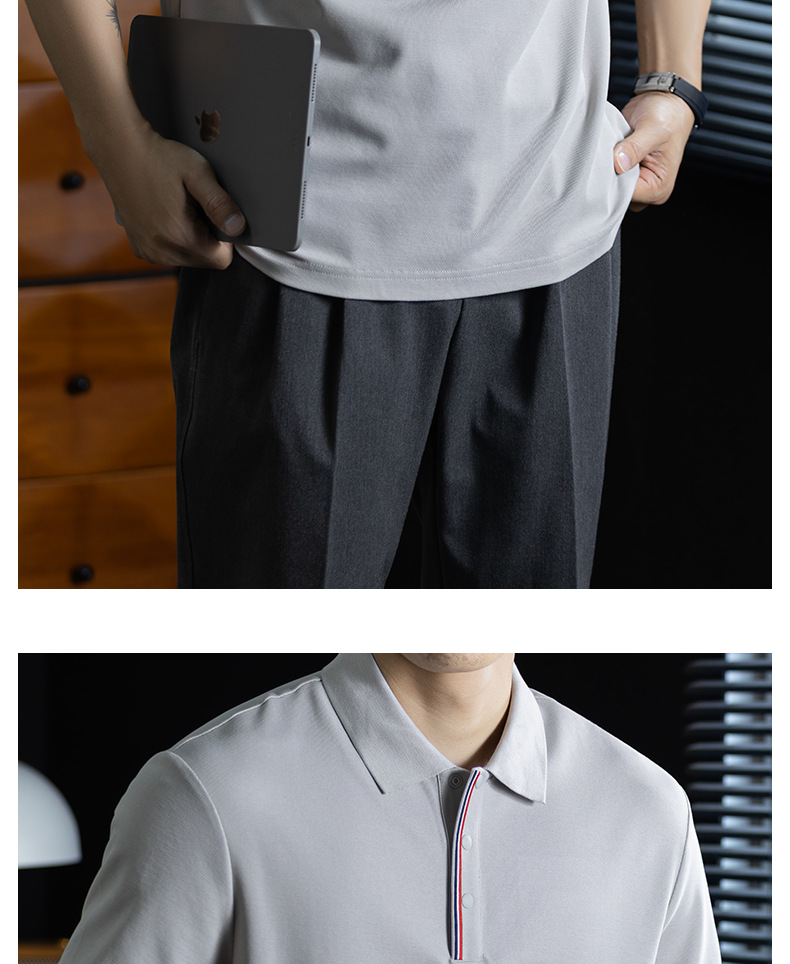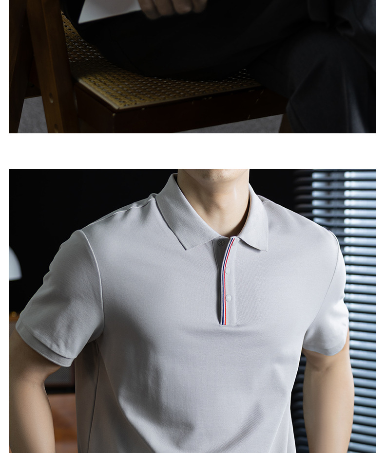 輕奢格調|冰感珠地棉短袖polo衫男撞色鑲邊夏季透氣休閒Polo衫