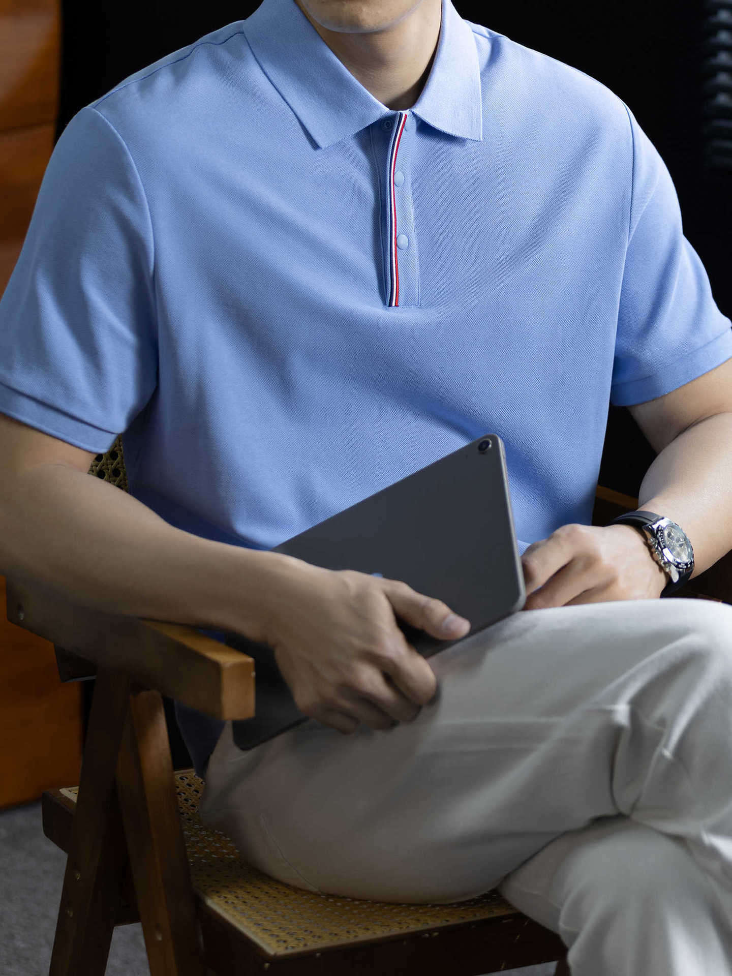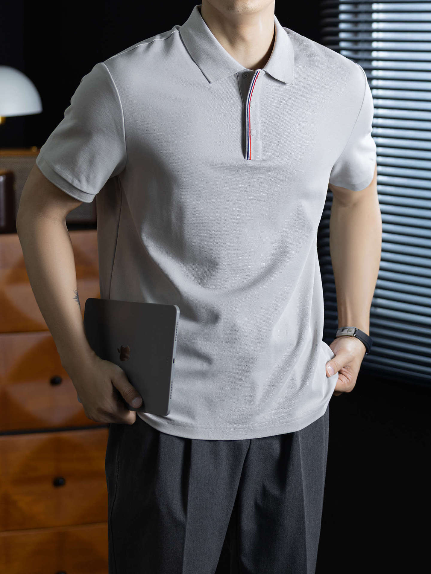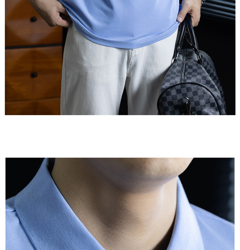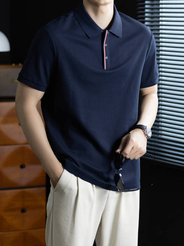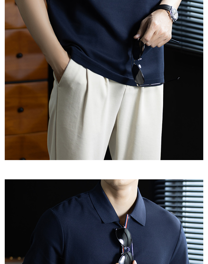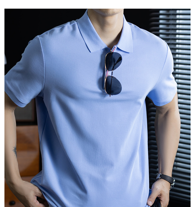 輕奢格調|冰感珠地棉短袖polo衫男撞色鑲邊夏季透氣休閒Polo衫