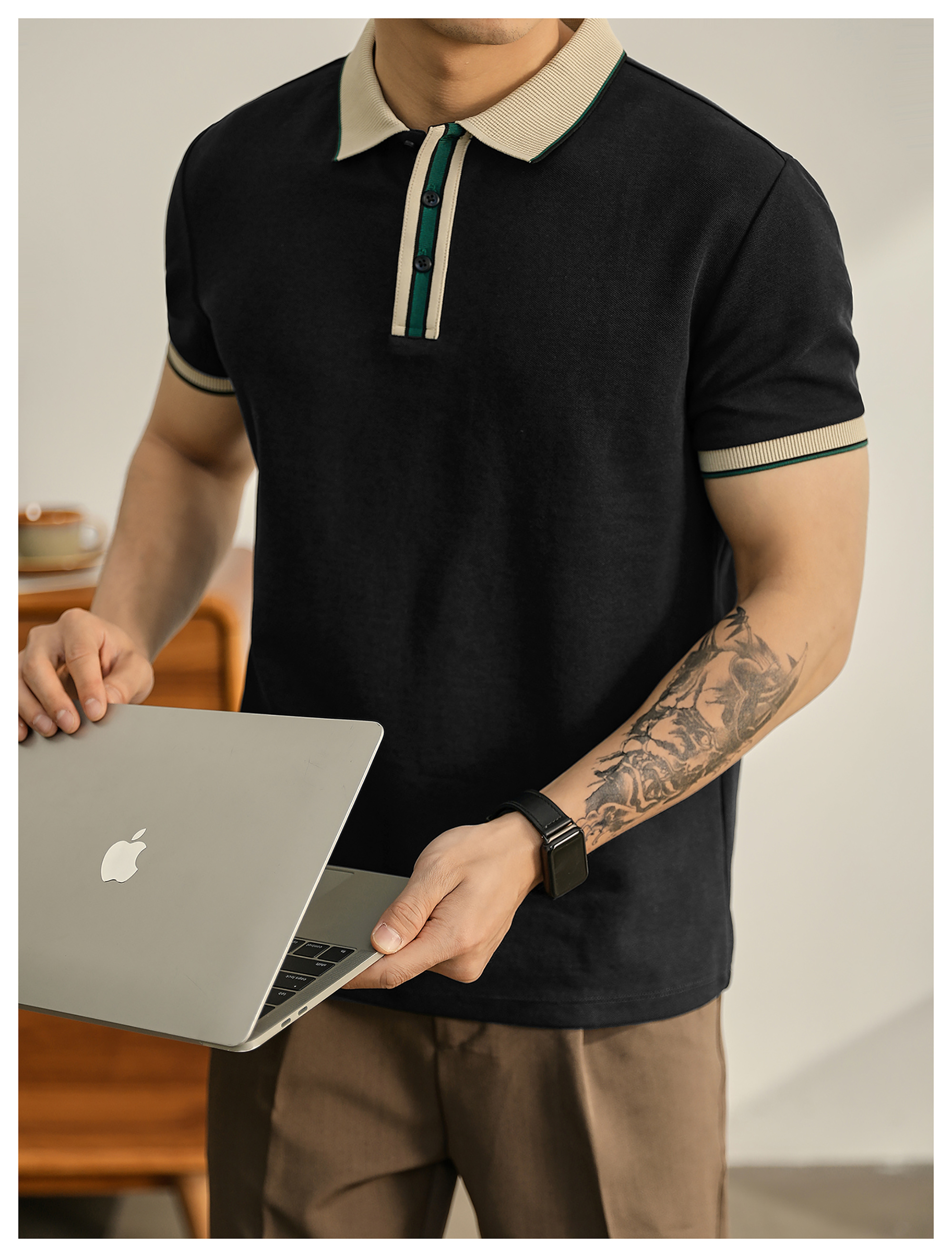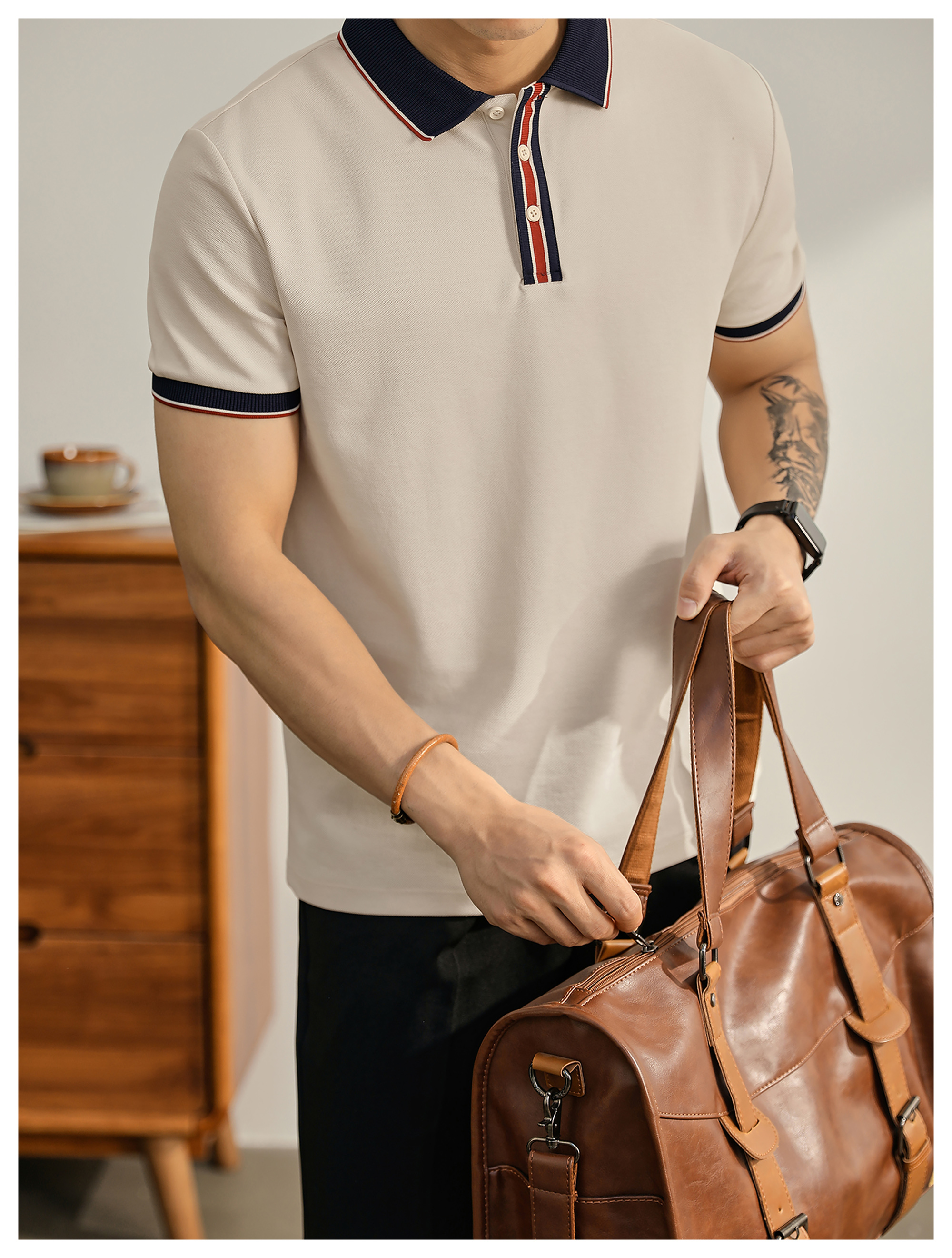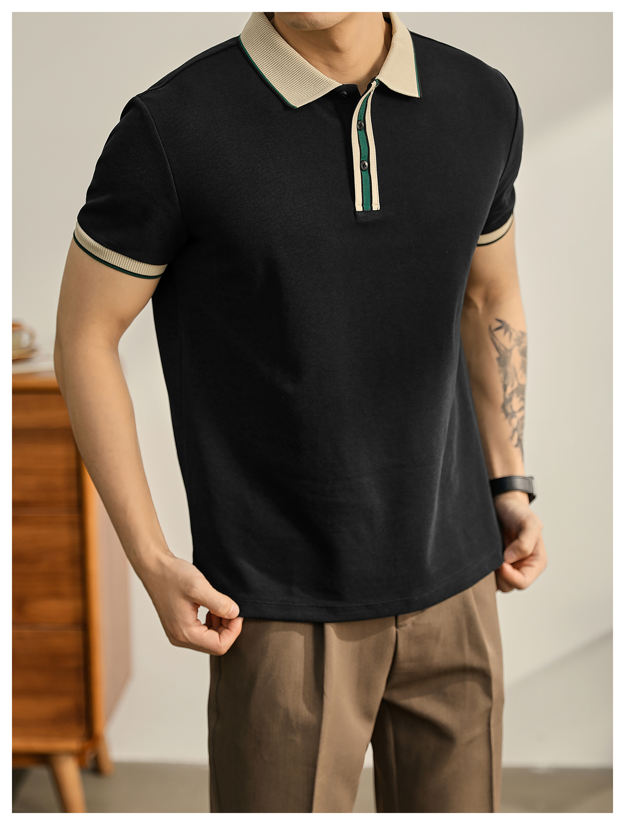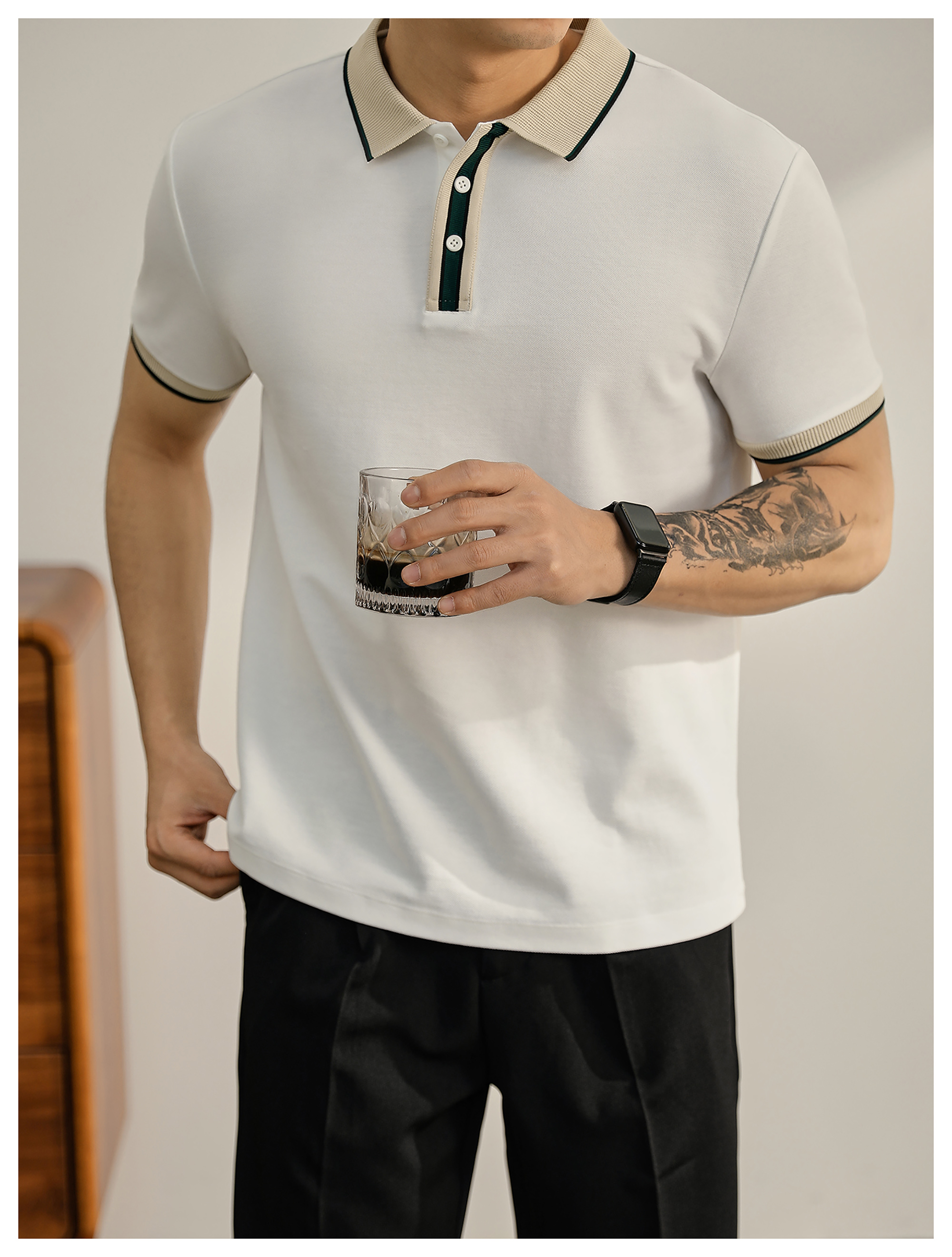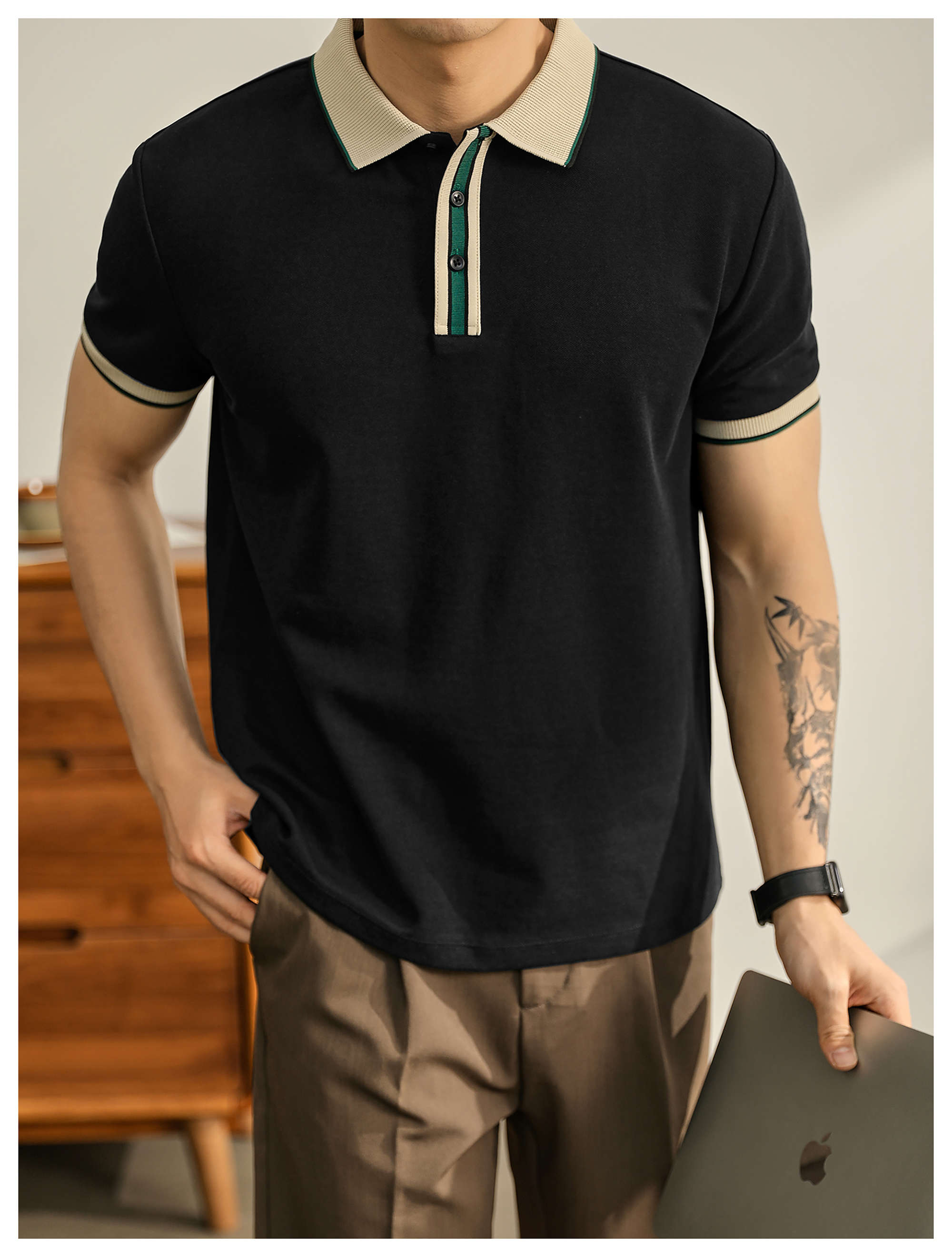 輕奢氣質感撞色翻領短袖保羅衫男士針織拼料上衣透氣Polo衫