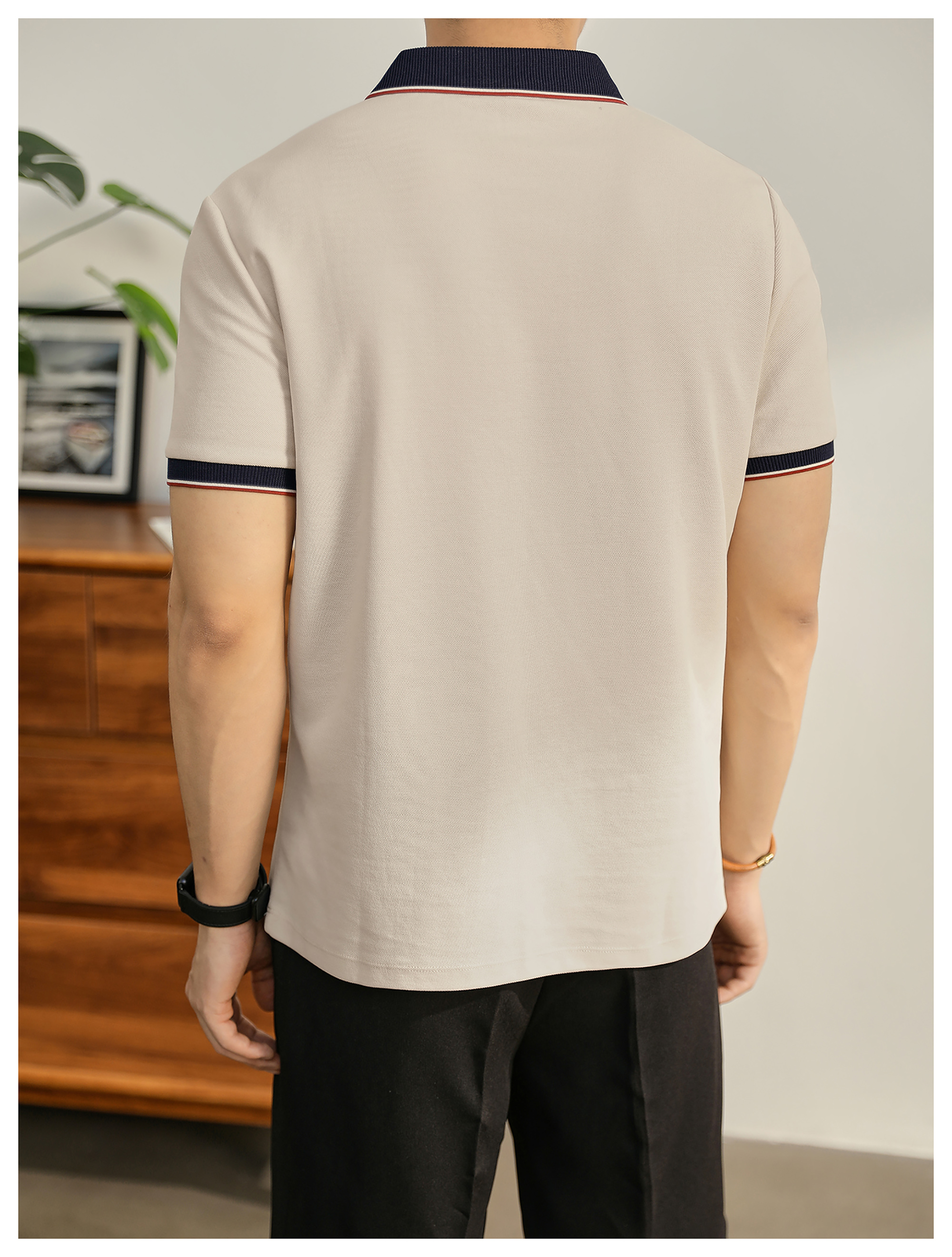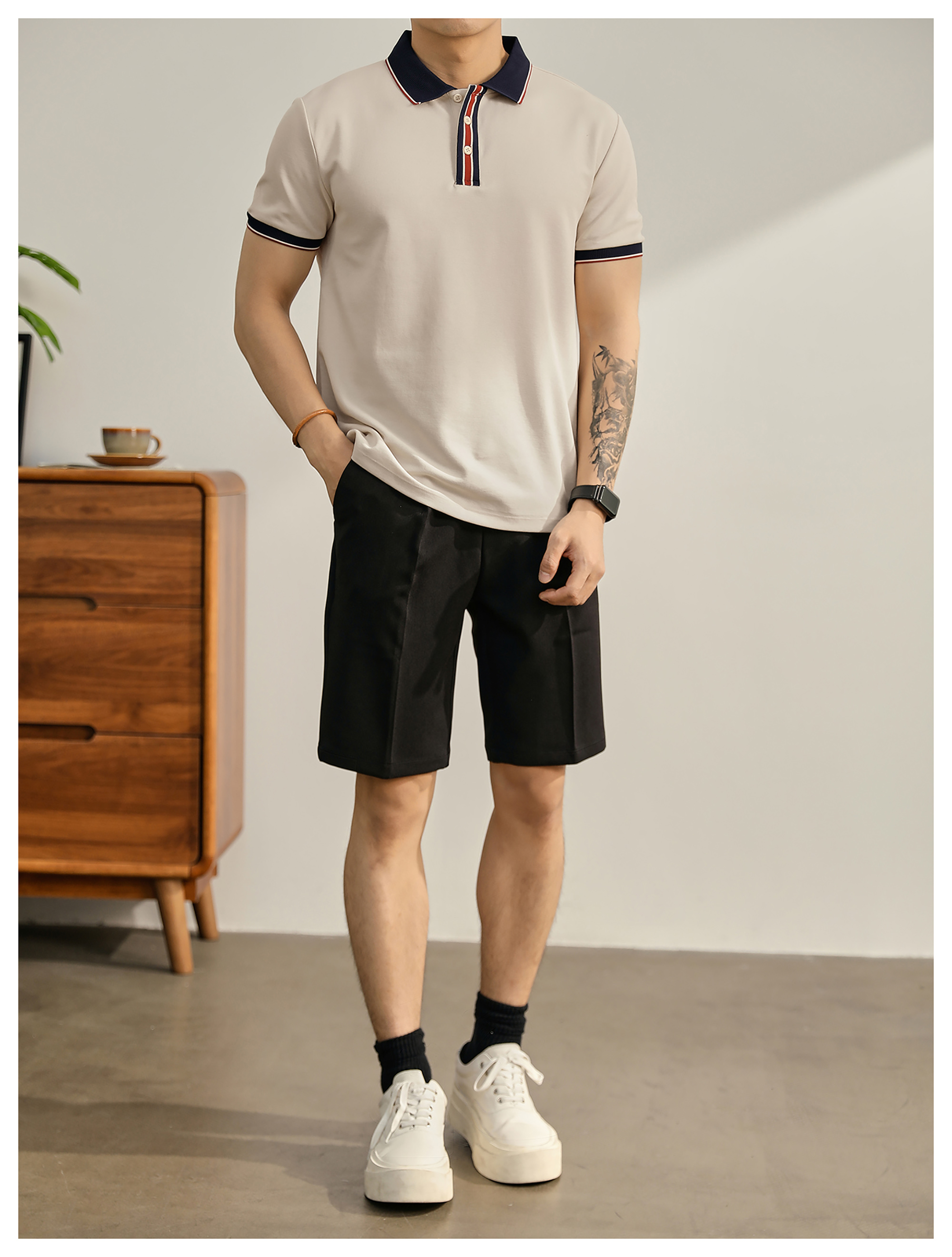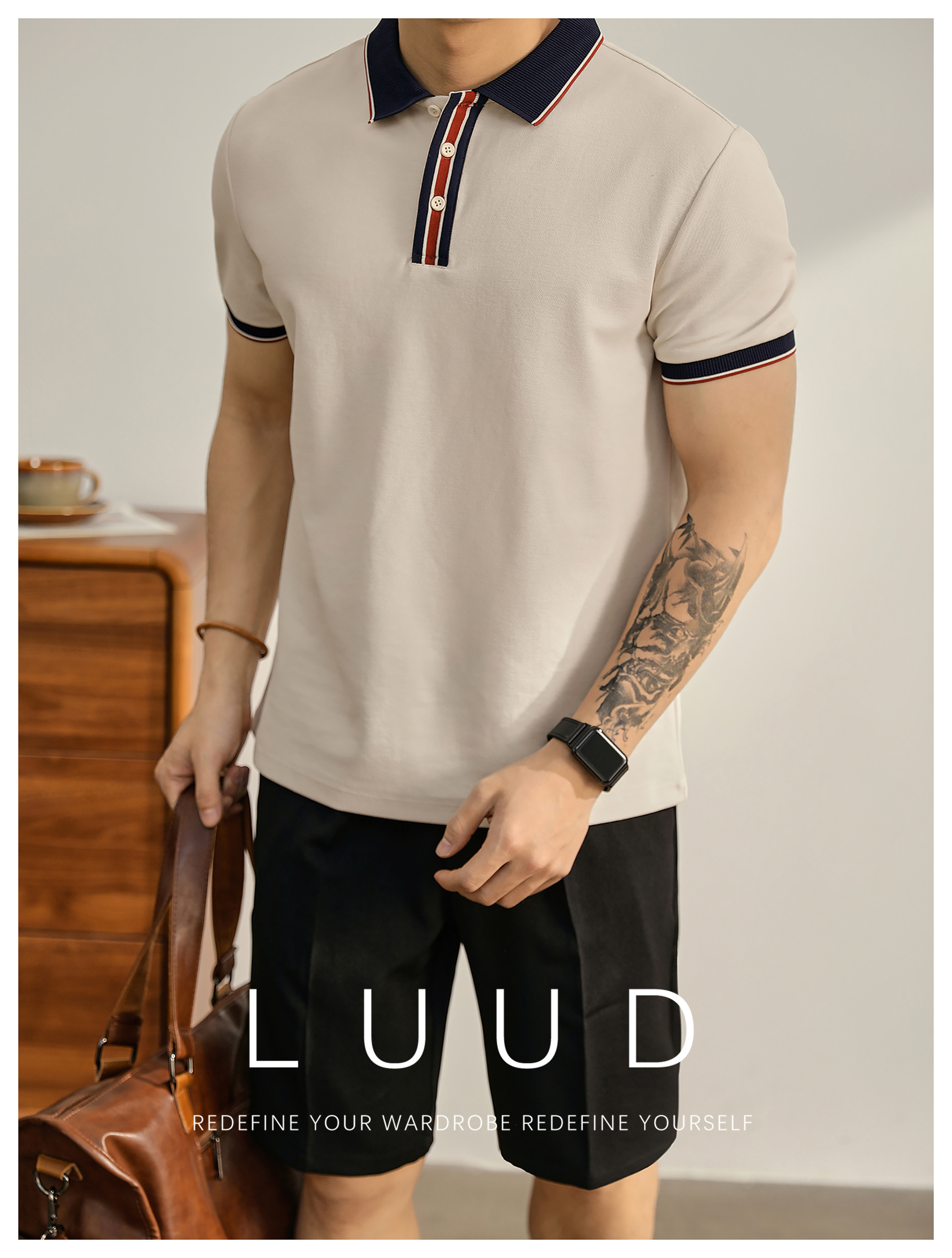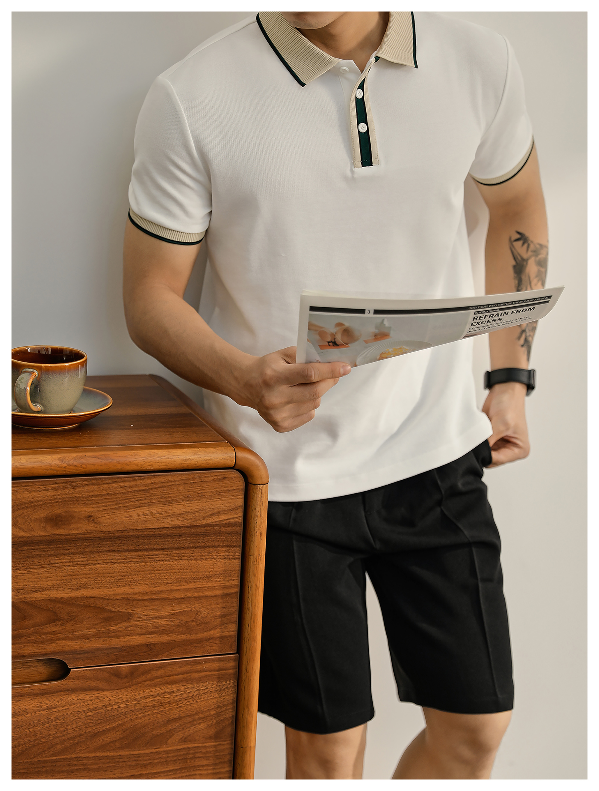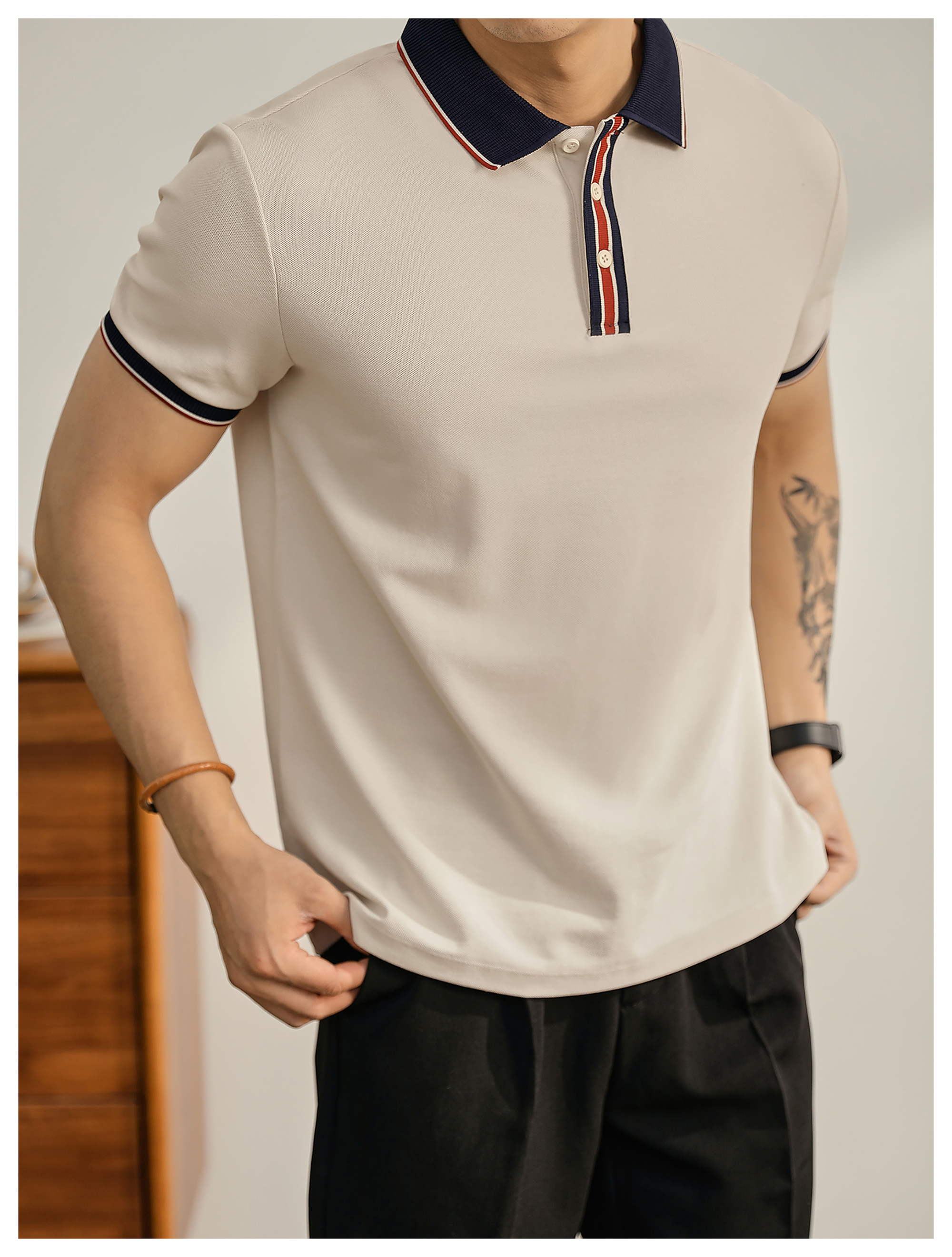 輕奢氣質感撞色翻領短袖保羅衫男士針織拼料上衣透氣Polo衫