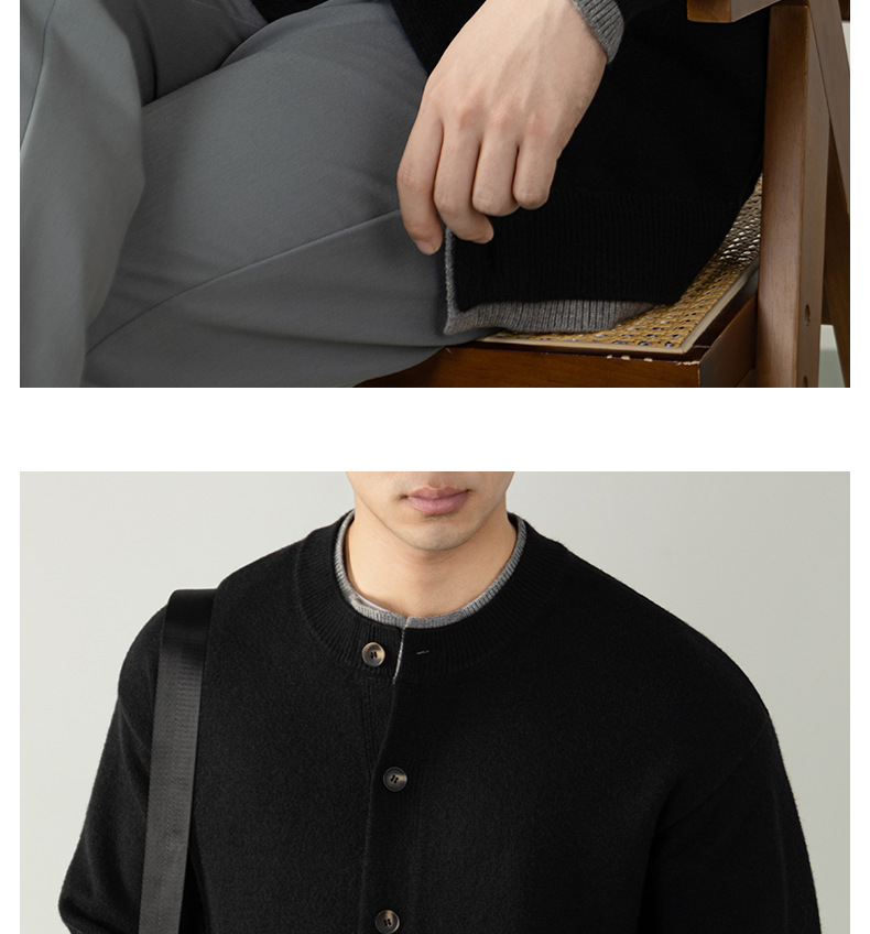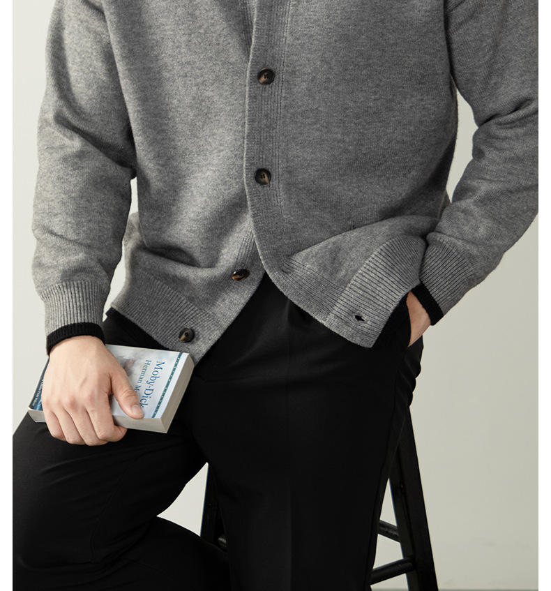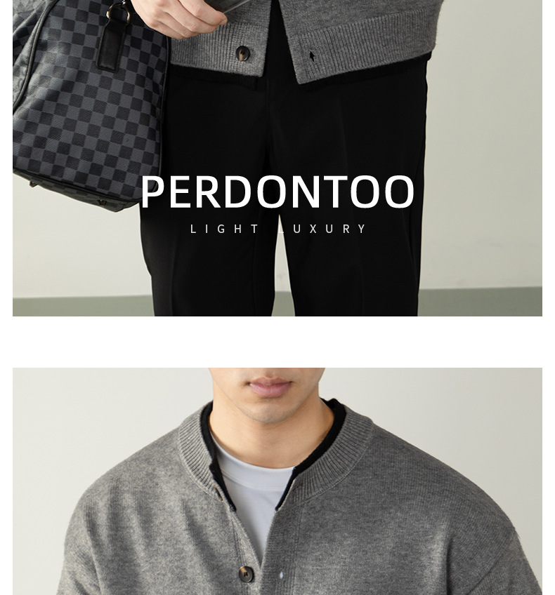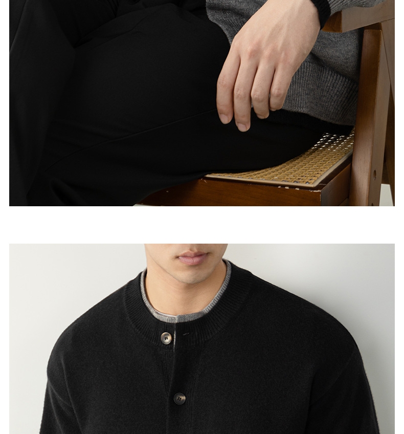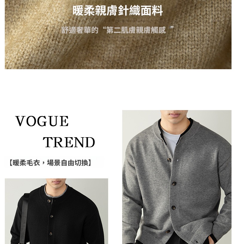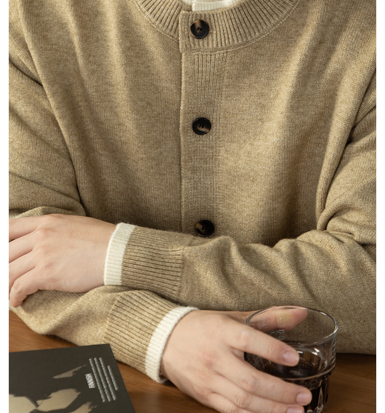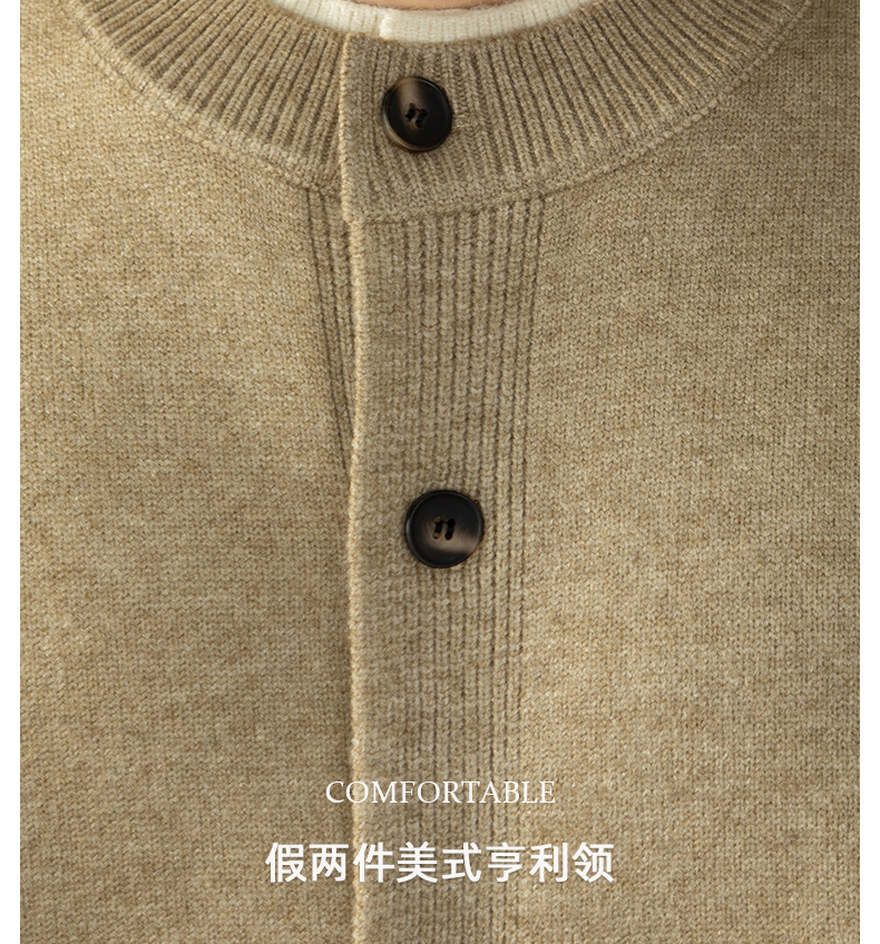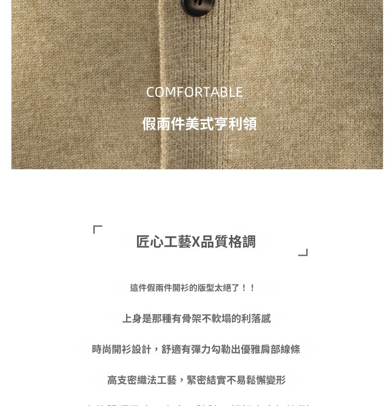 輕奢風撞色假兩件暖柔秋冬可機洗親膚毛衣男士亨利領針織衫