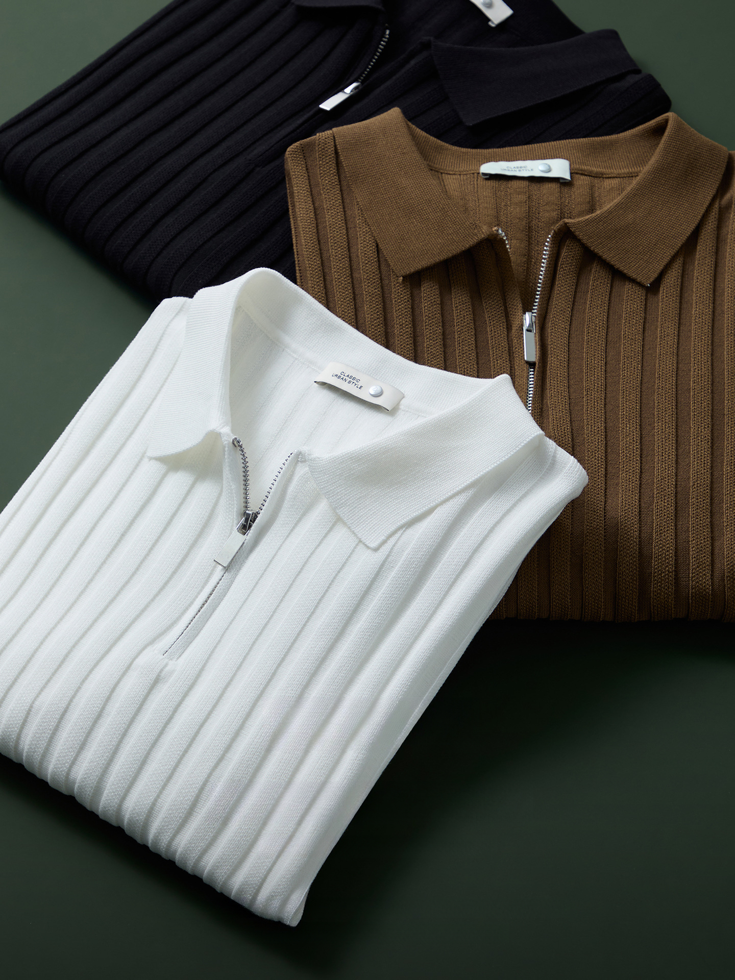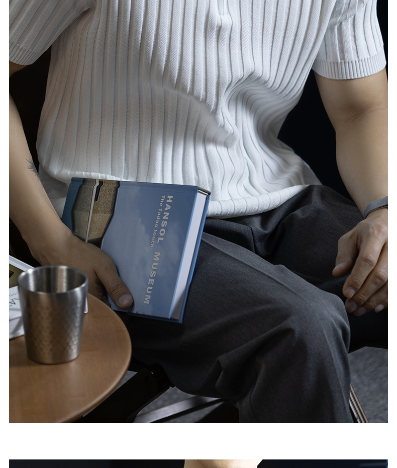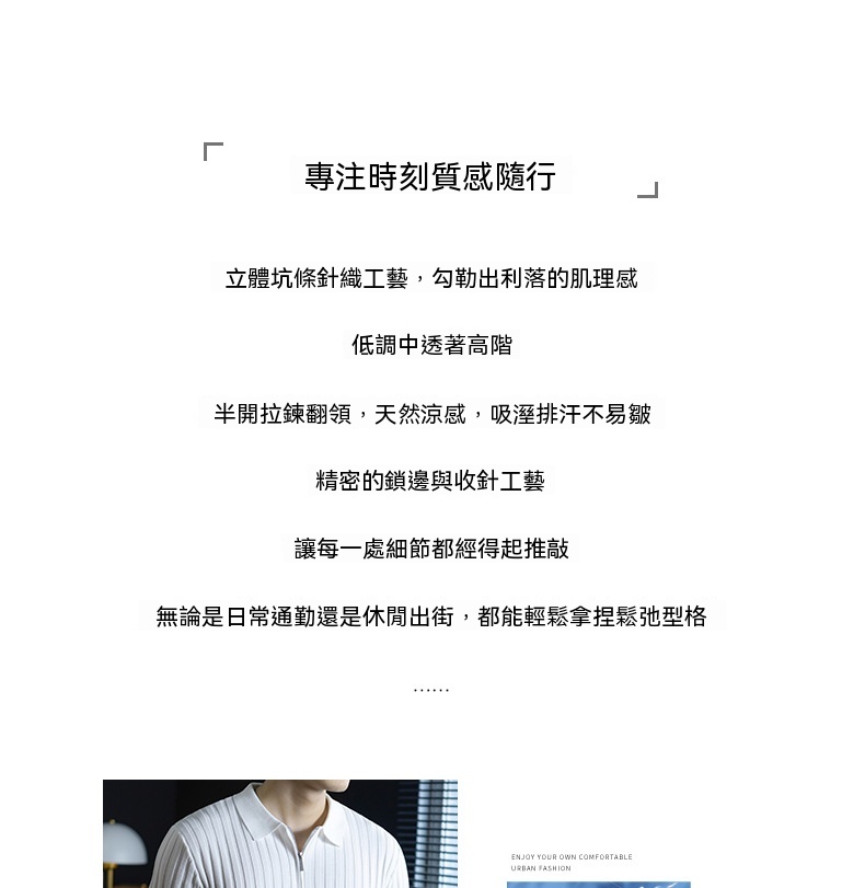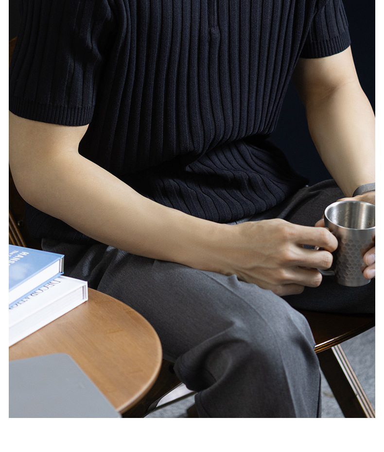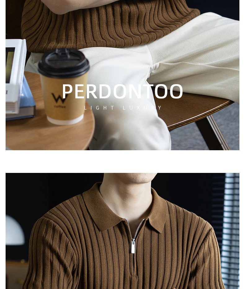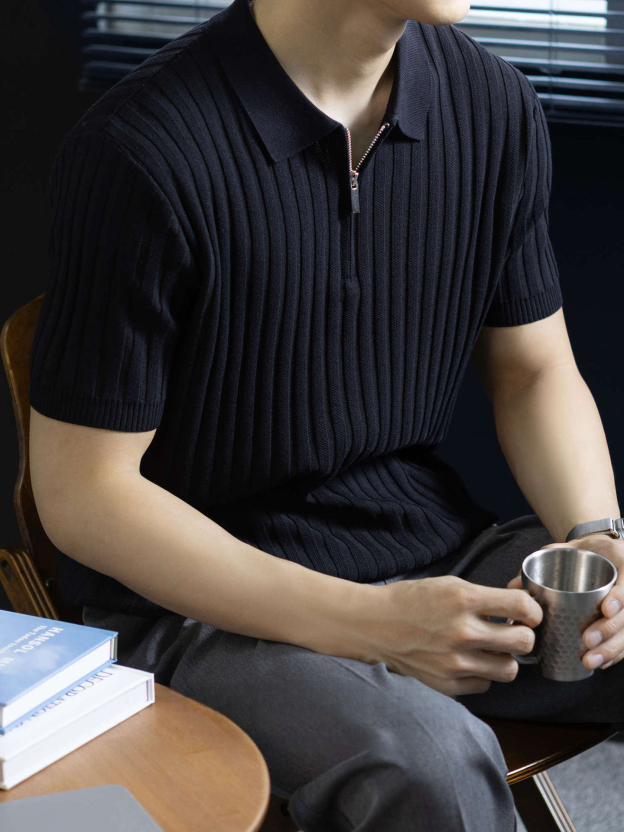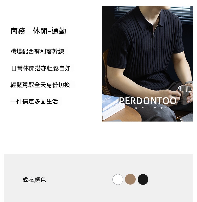 輕奢風~2026夏季新款立體坑條針織衫男半拉鍊翻領短袖t桖儒雅高級
