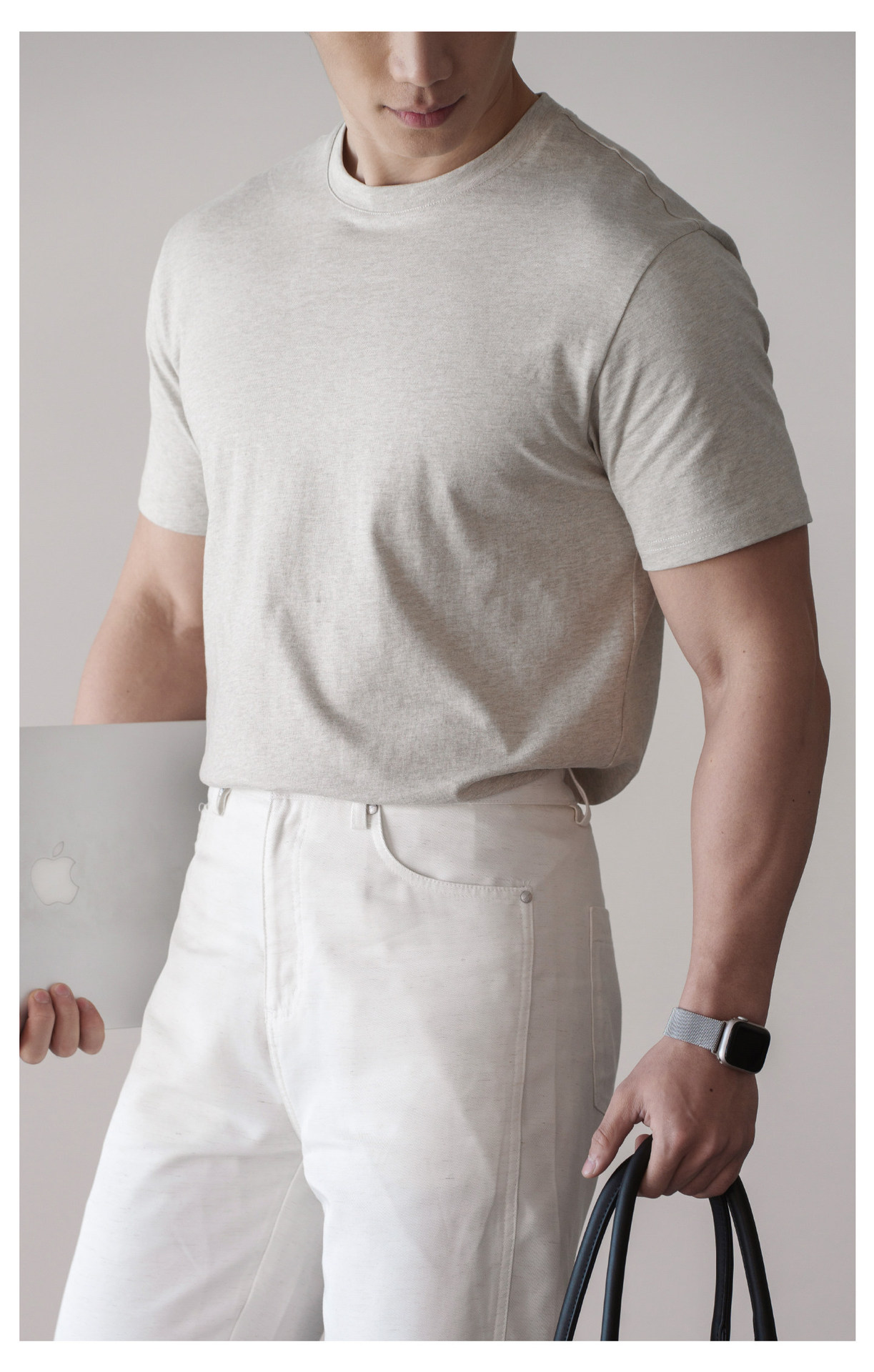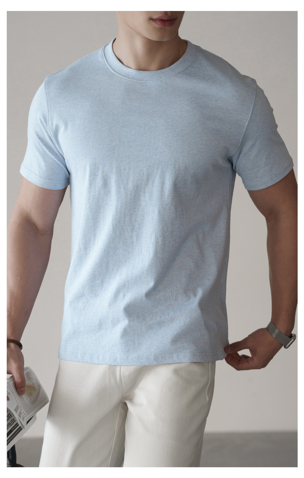 輕運動質感肌理休閒圓領T恤男士2026春夏新款通勤透氣速幹運動衫