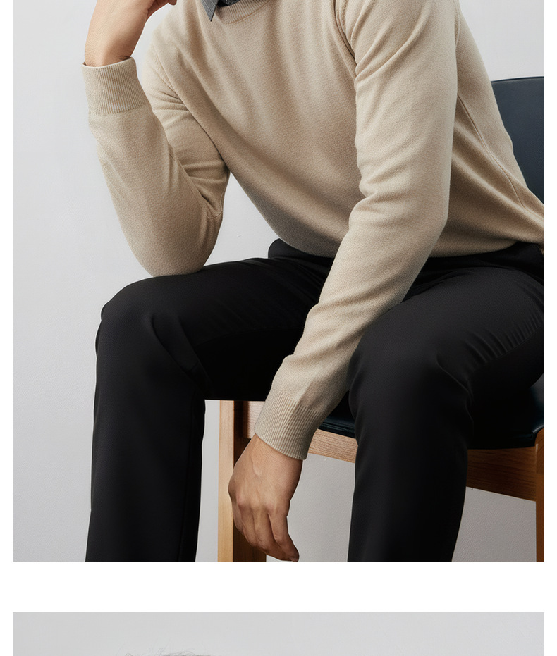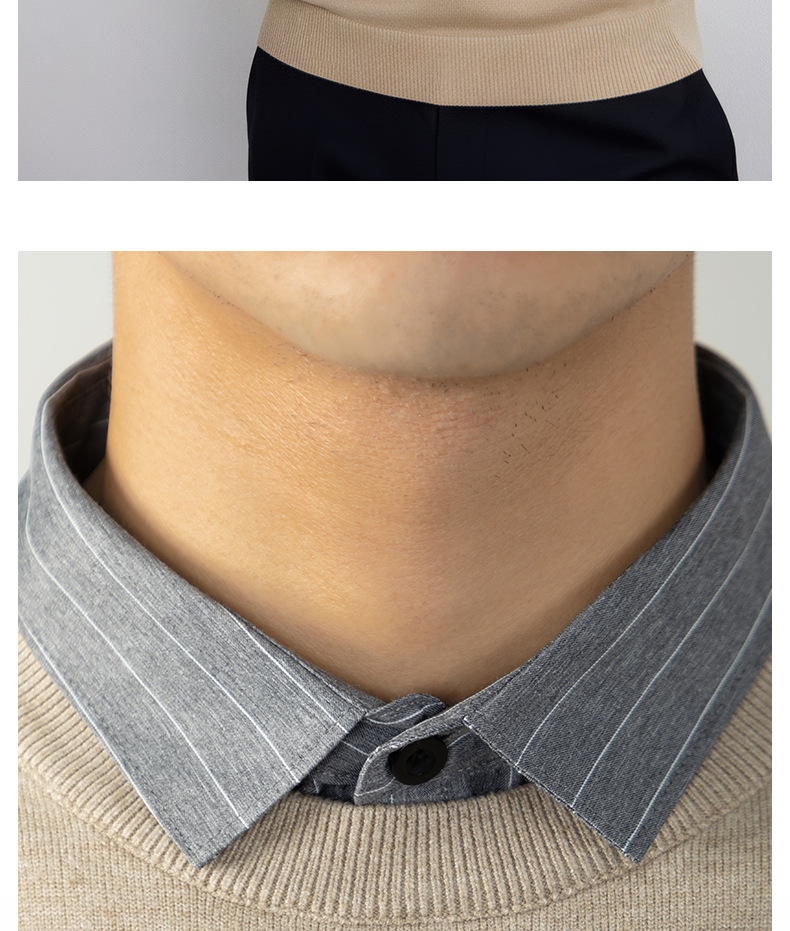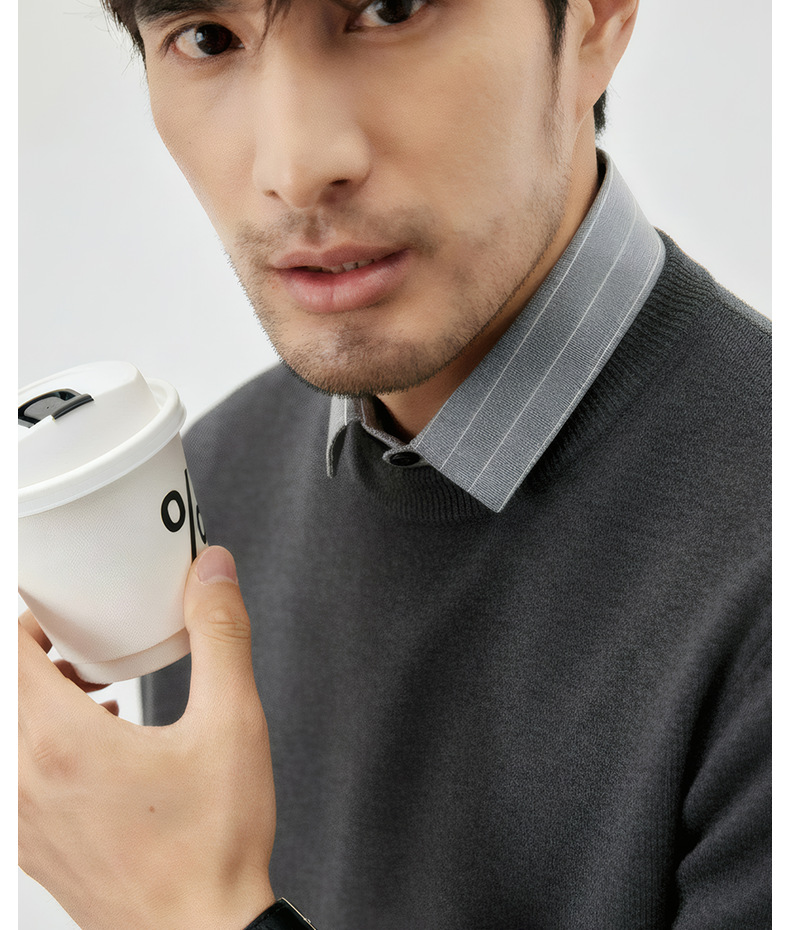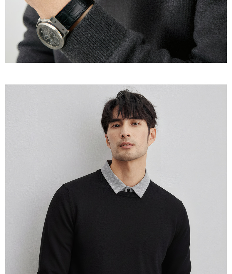 都市商務 襯衫領假兩件毛衣男士加厚保暖秋冬高端通勤舒適針織衫