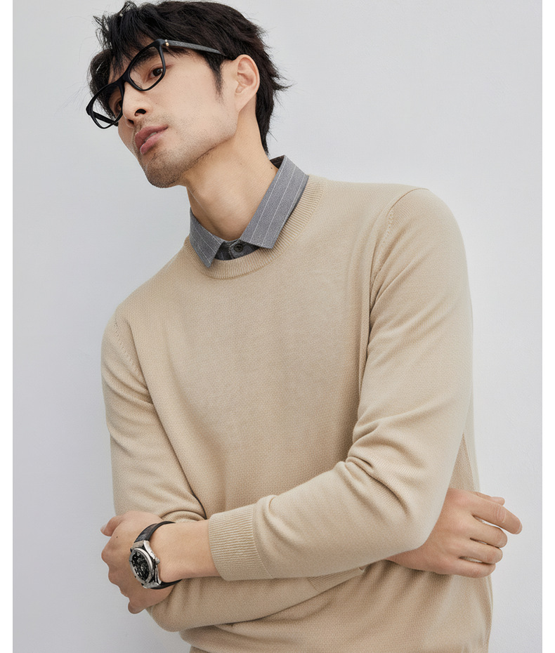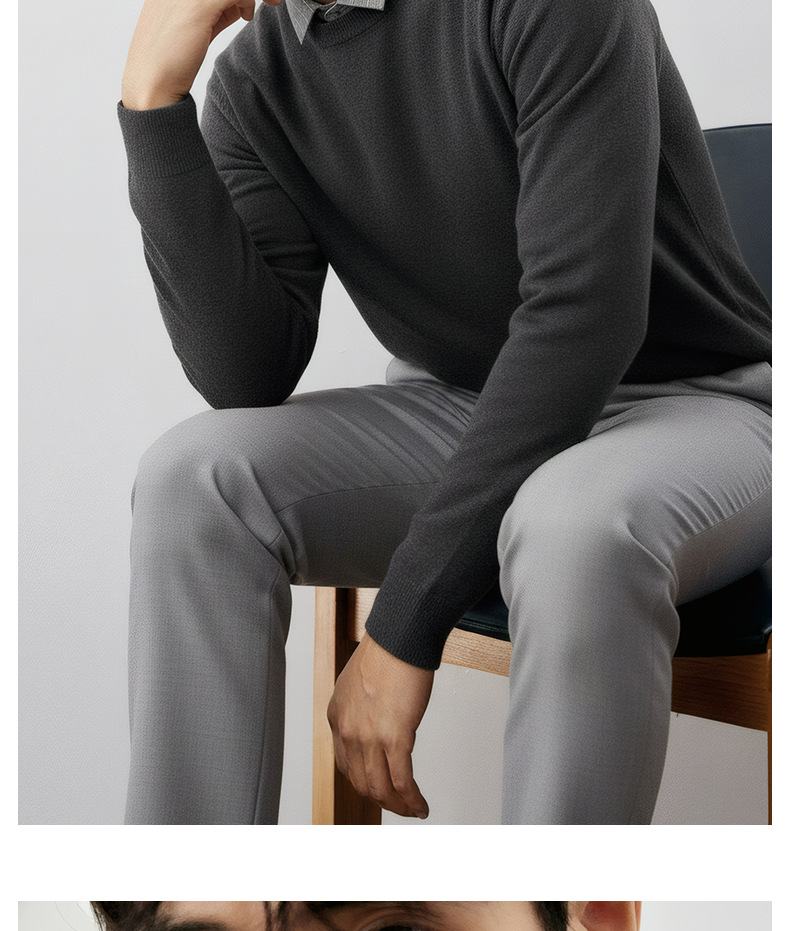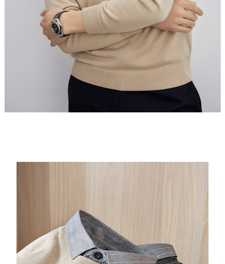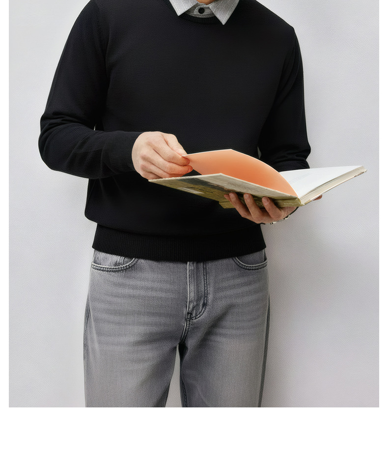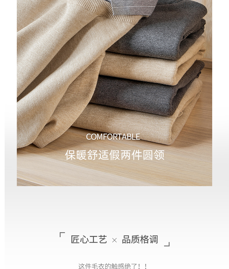 都市商務 襯衫領假兩件毛衣男士加厚保暖秋冬高端通勤舒適針織衫