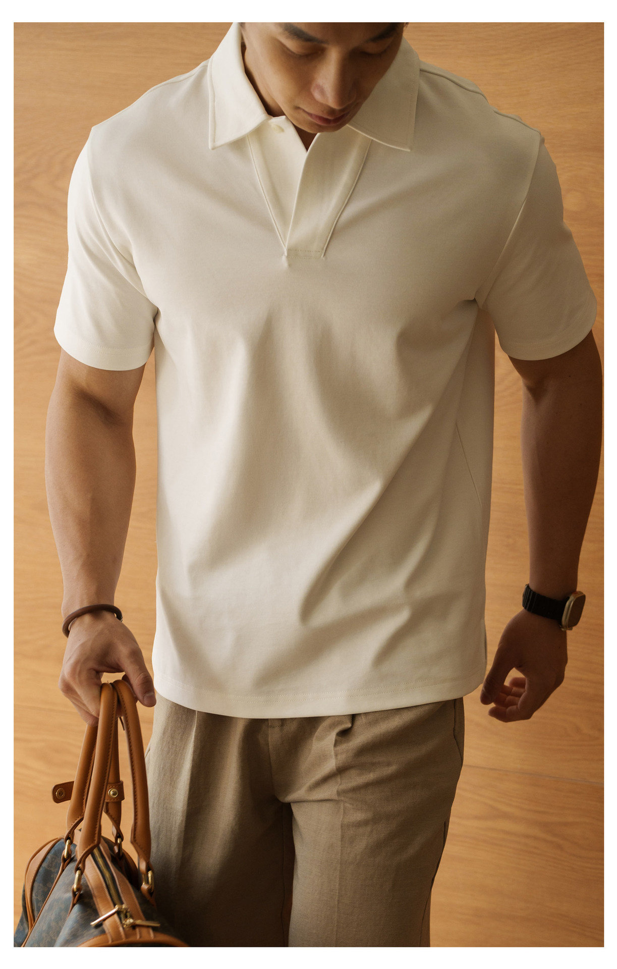 重磅棉混紡經典小翻領POLO衫男士2026春季透氣親膚鬆弛感短袖T恤