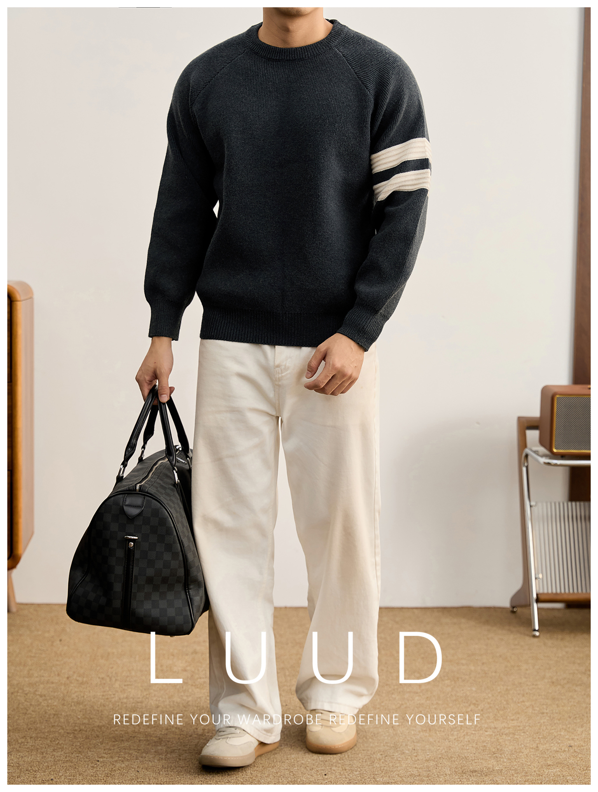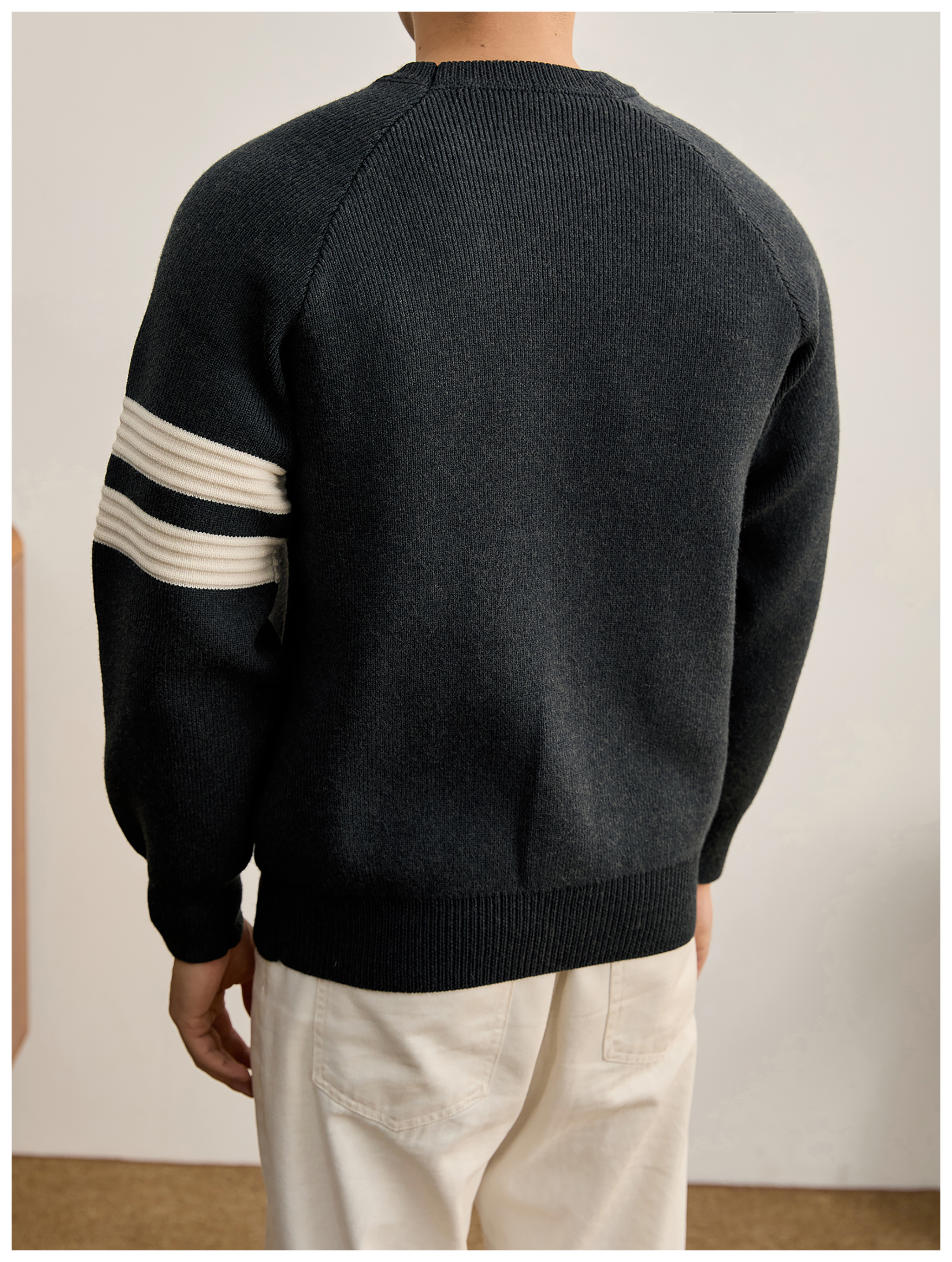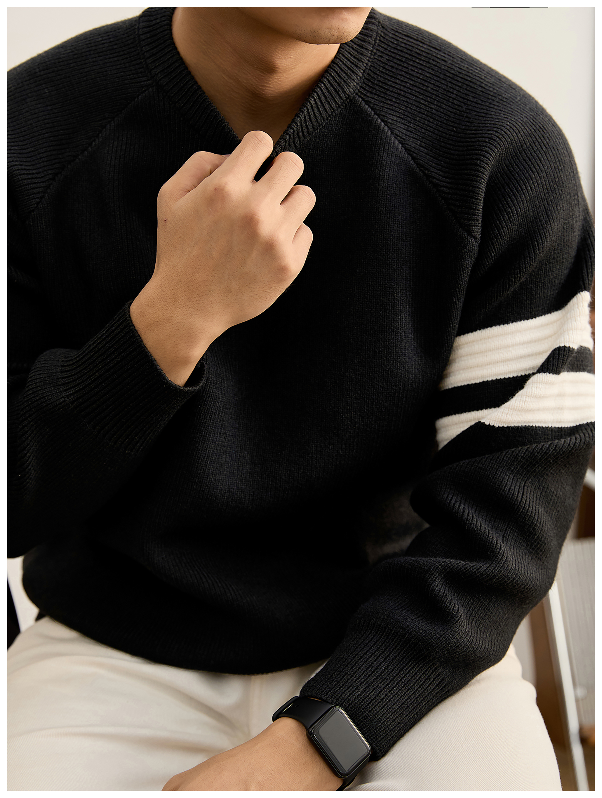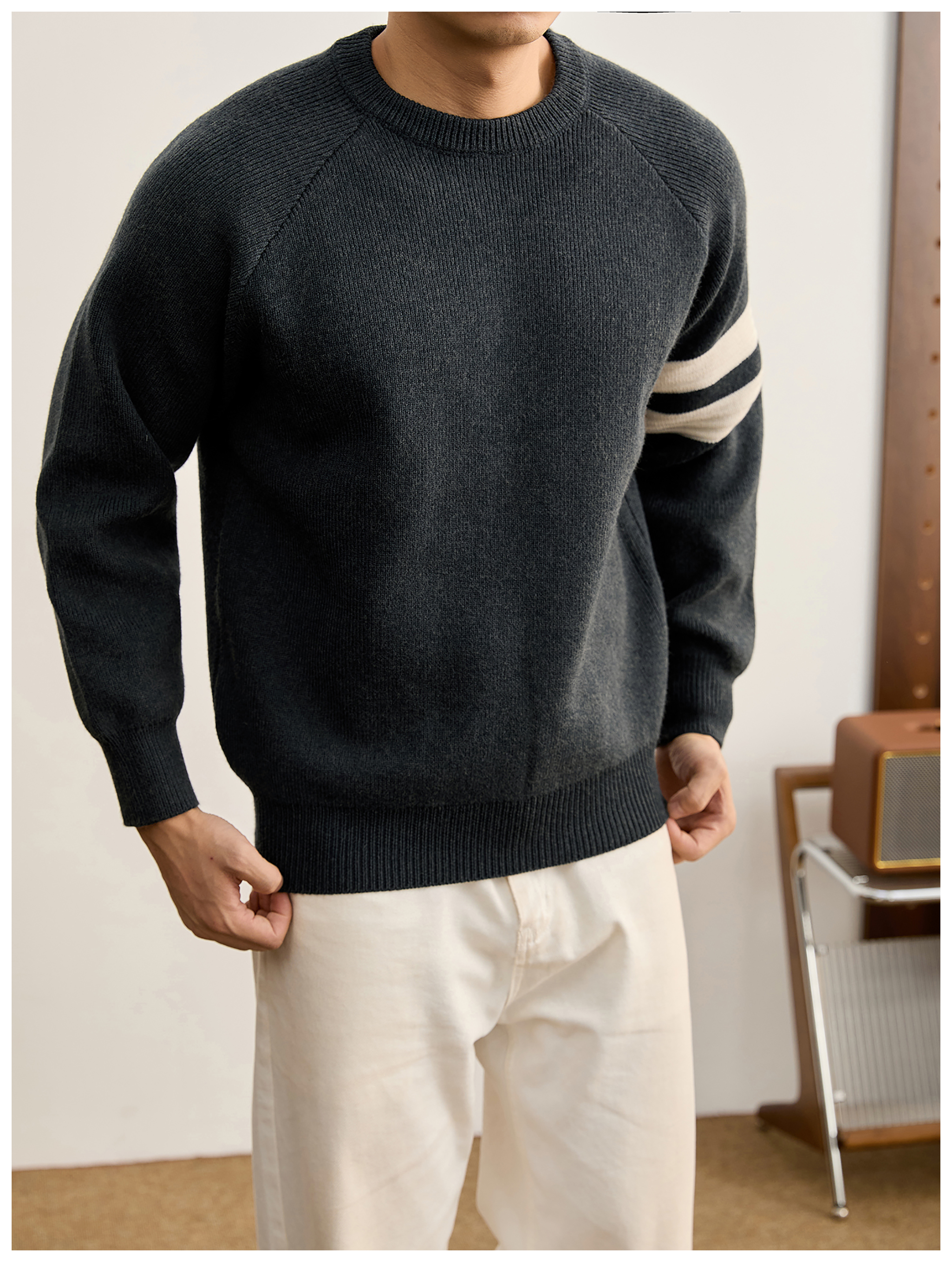 重磅810g極簡風潮奢圓領針織衫男秋冬季保暖兩道槓套頭毛衣