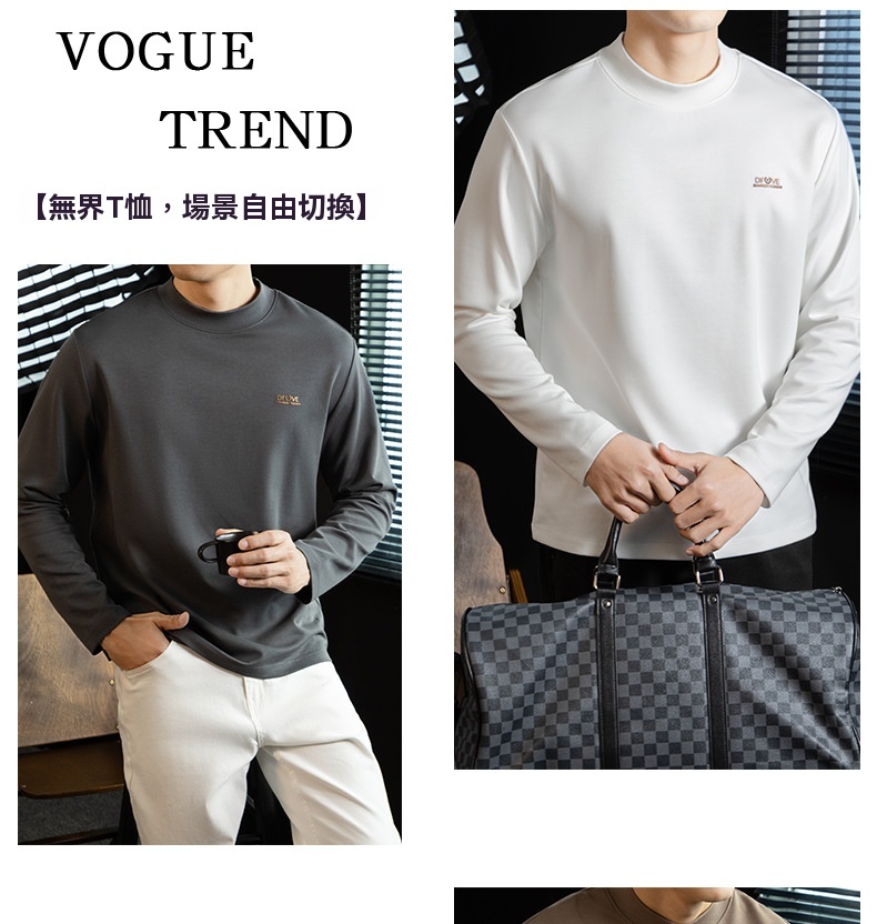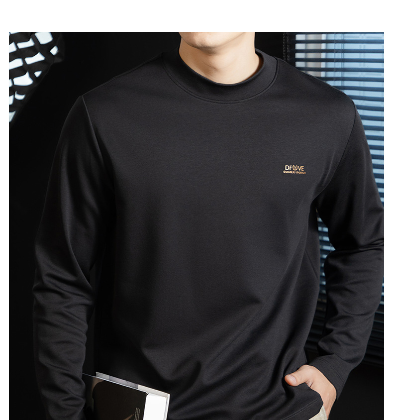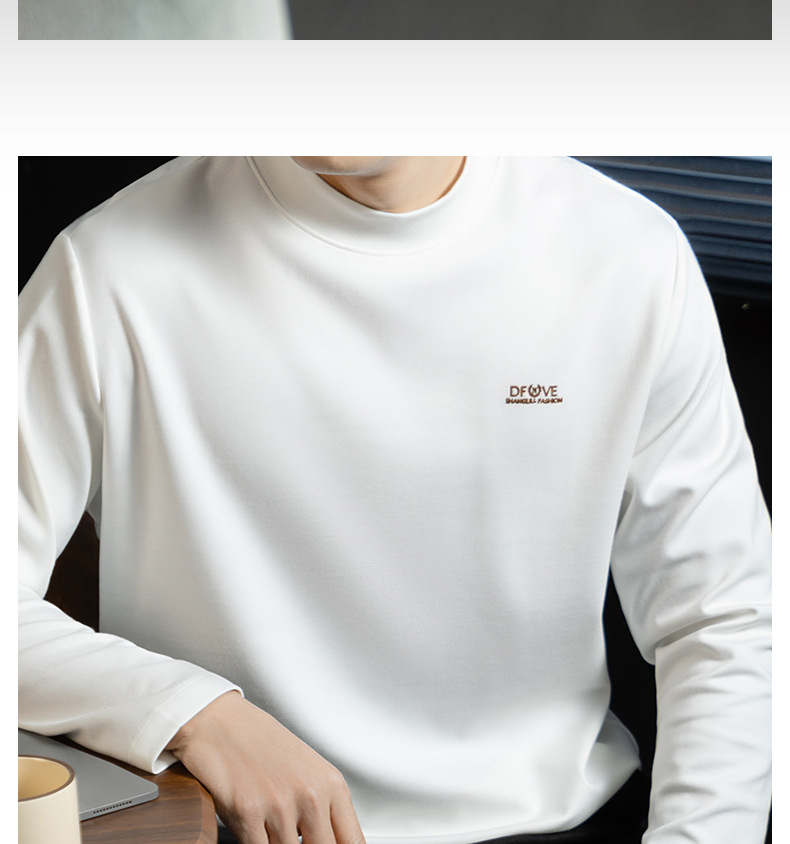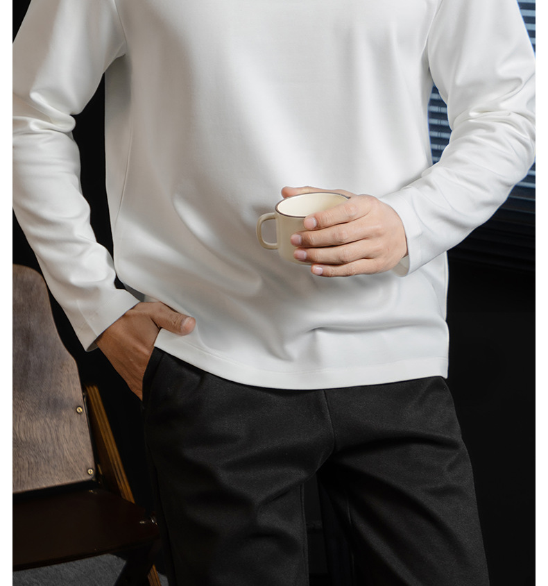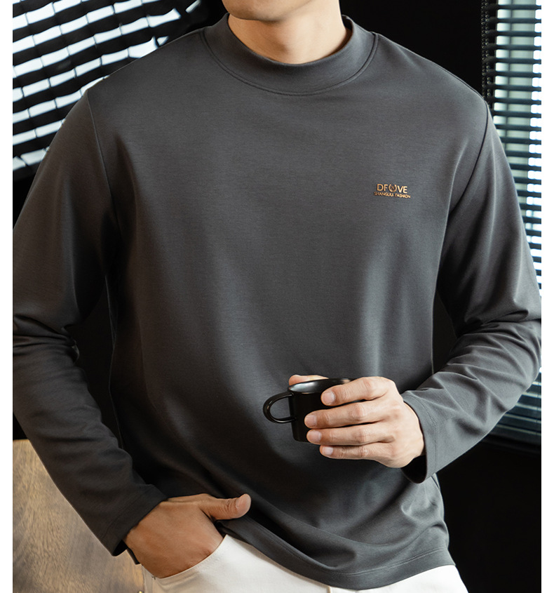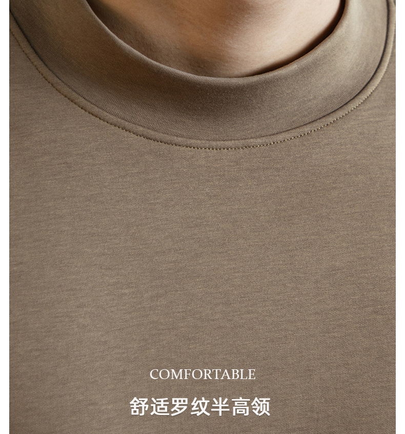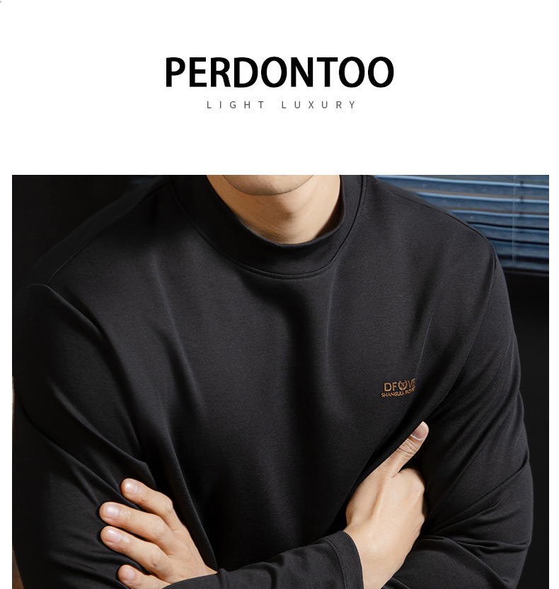 高定雲柔莫代爾棉T恤男士半高領秋冬輕熟商務打底衫垂感印花上衣