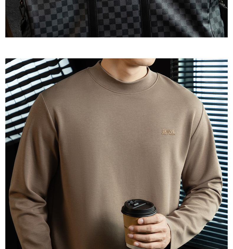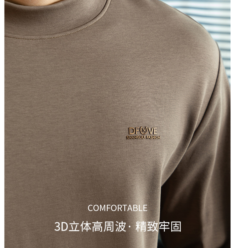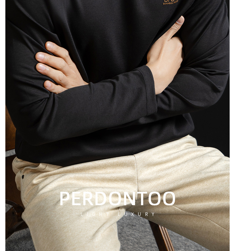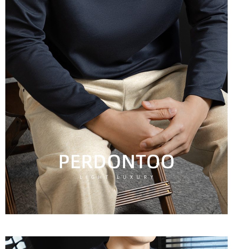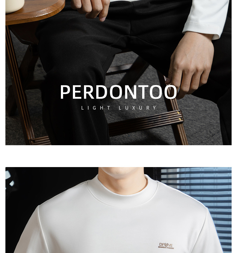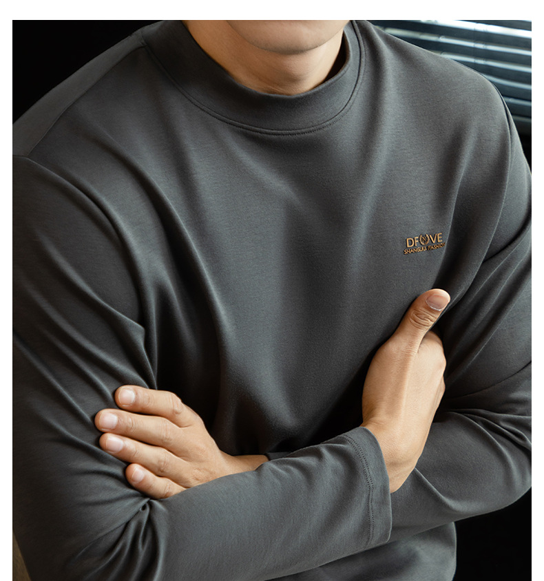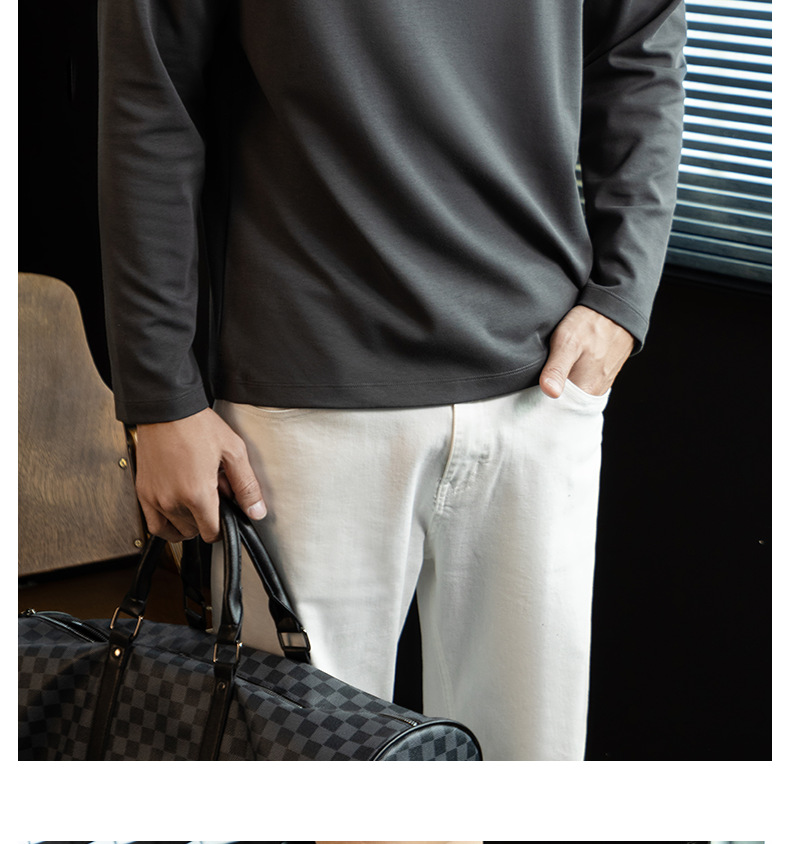 高定雲柔莫代爾棉T恤男士半高領秋冬輕熟商務打底衫垂感印花上衣