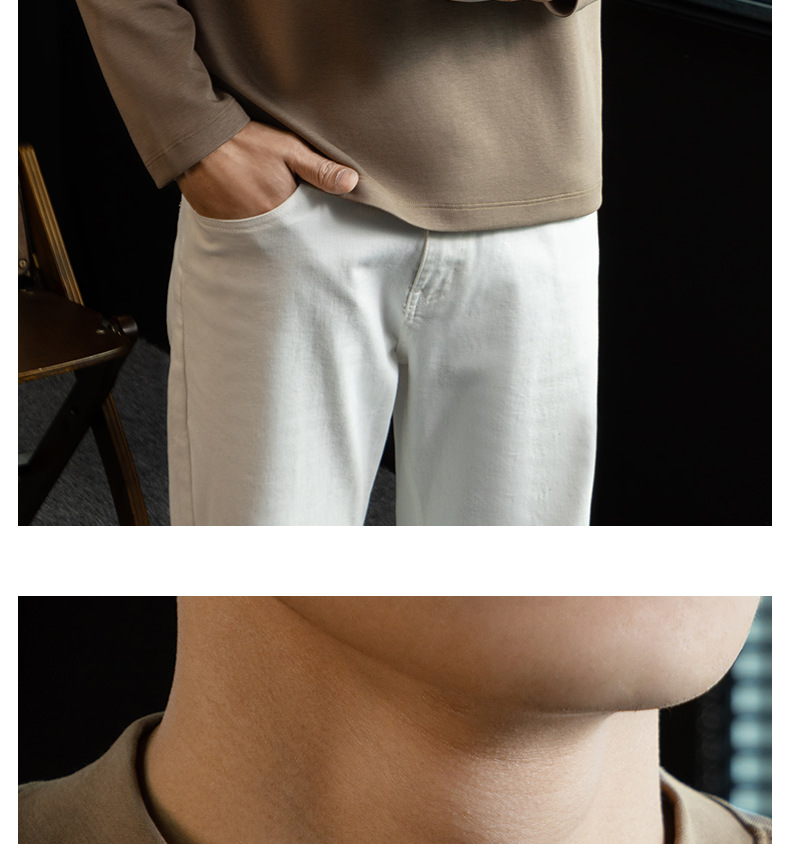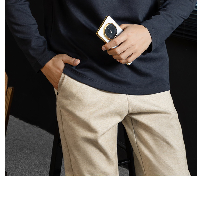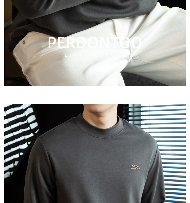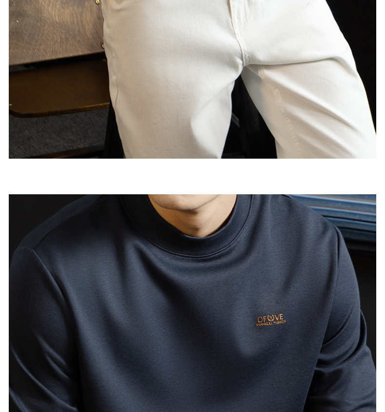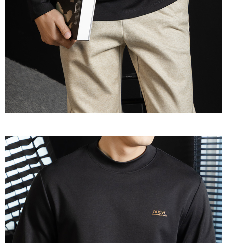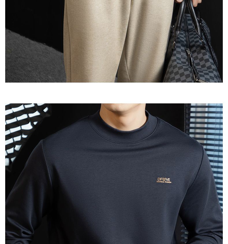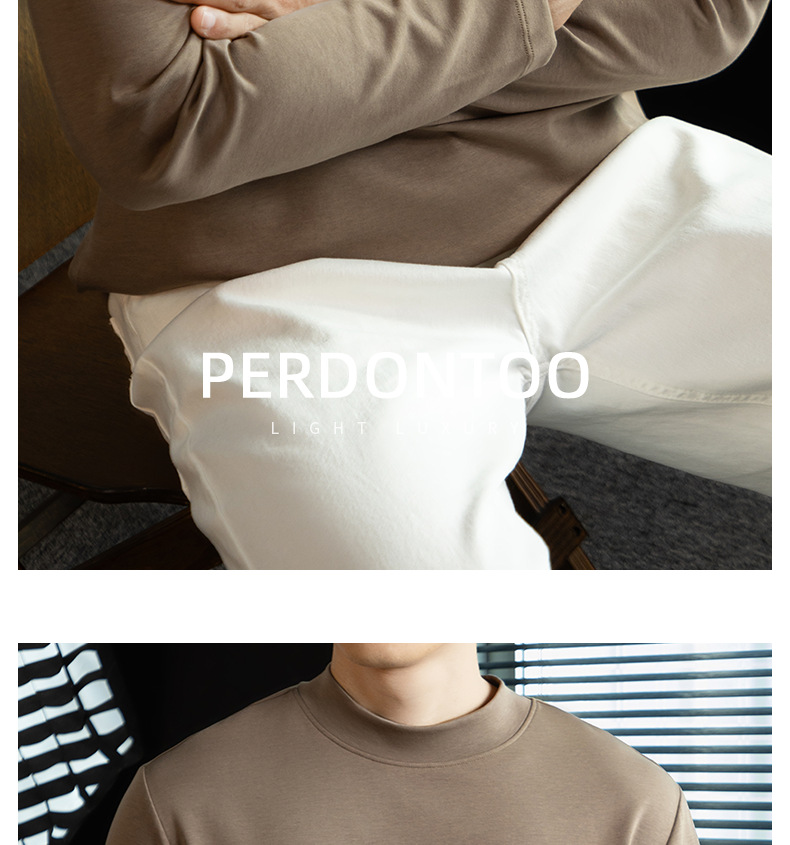 高定雲柔莫代爾棉T恤男士半高領秋冬輕熟商務打底衫垂感印花上衣