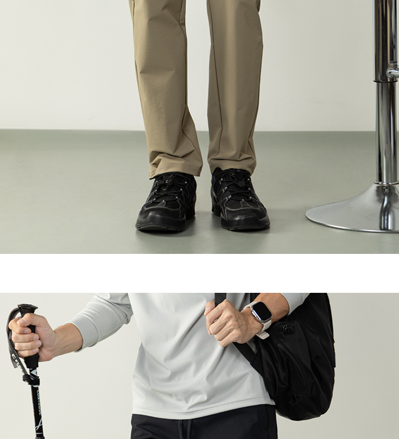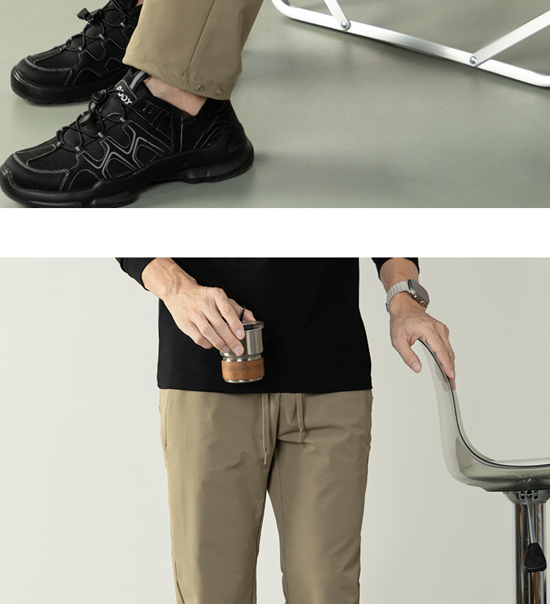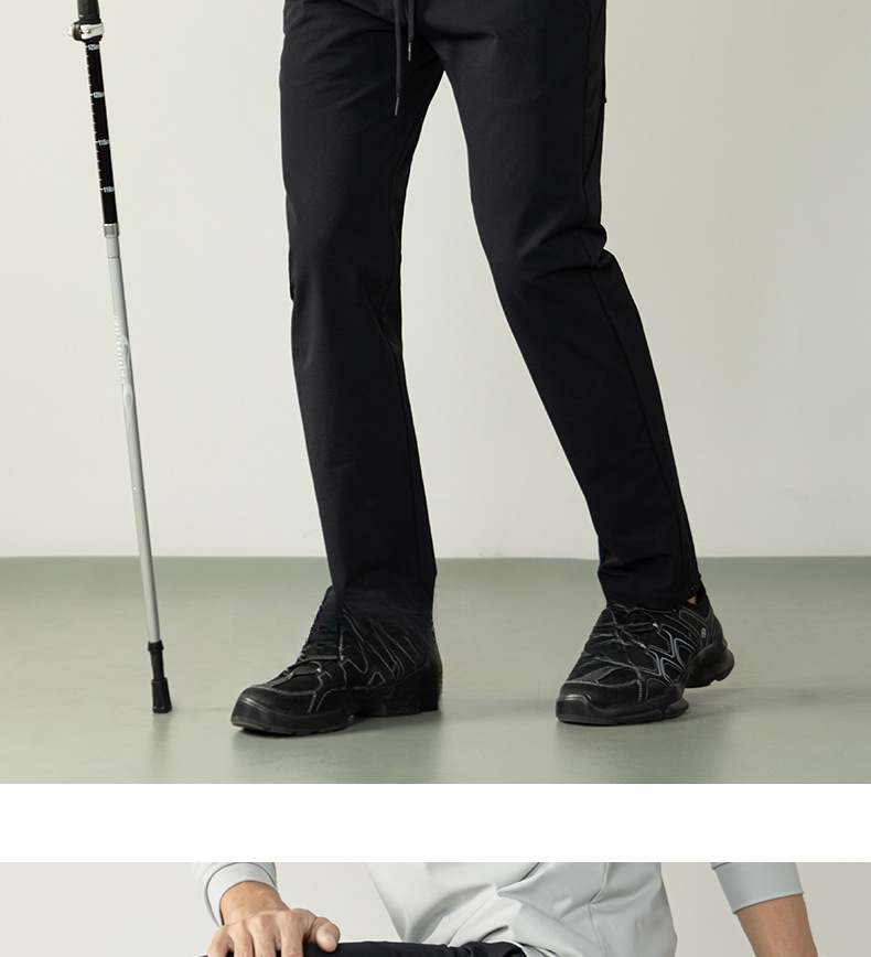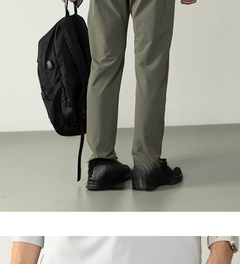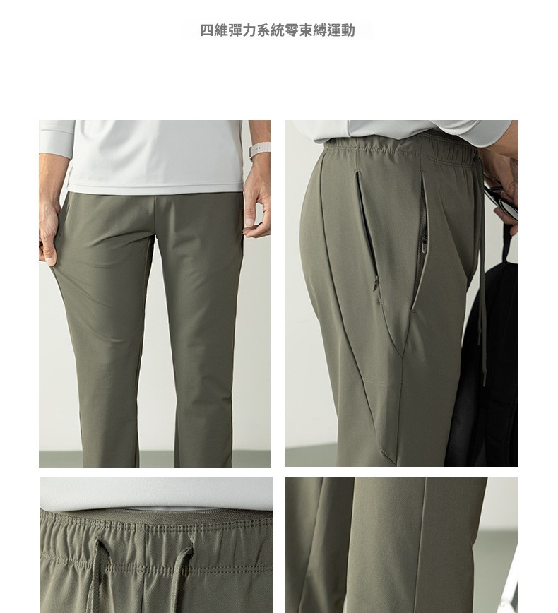 高彈防水工裝休閒長褲戶外多功能拉鍊口袋男士舒適鬆緊腰小腳褲