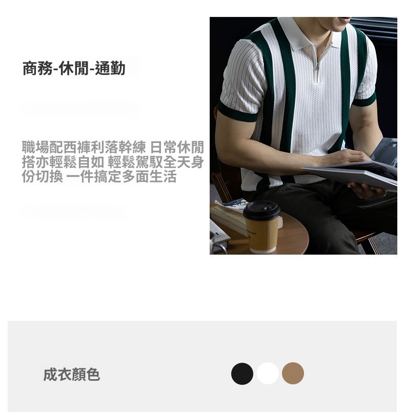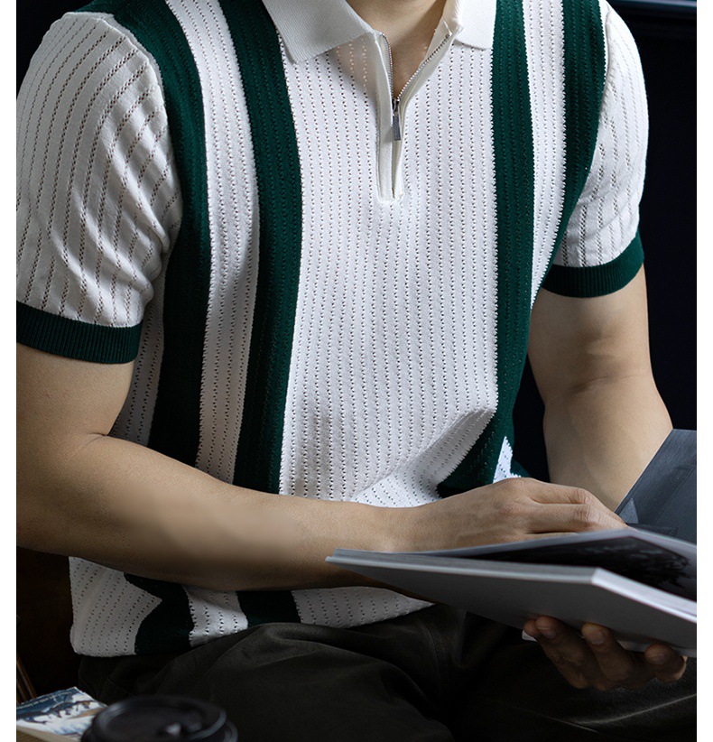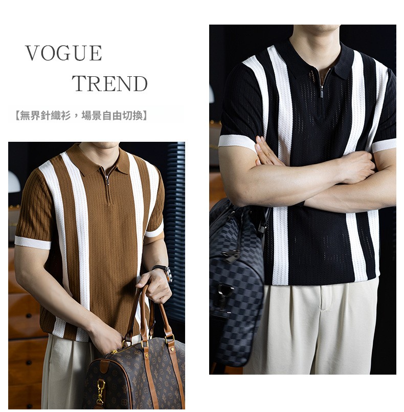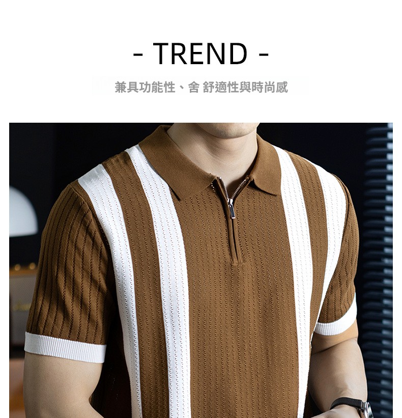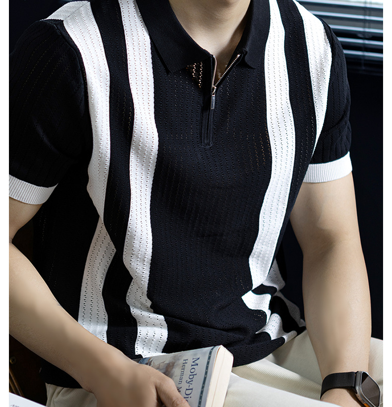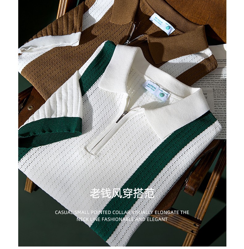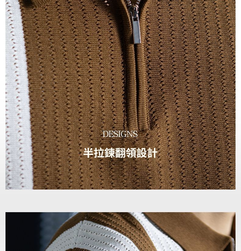 高端紳士針織網孔透氣男士半拉鍊翻領POLO衫夏季商務涼感薄款T恤