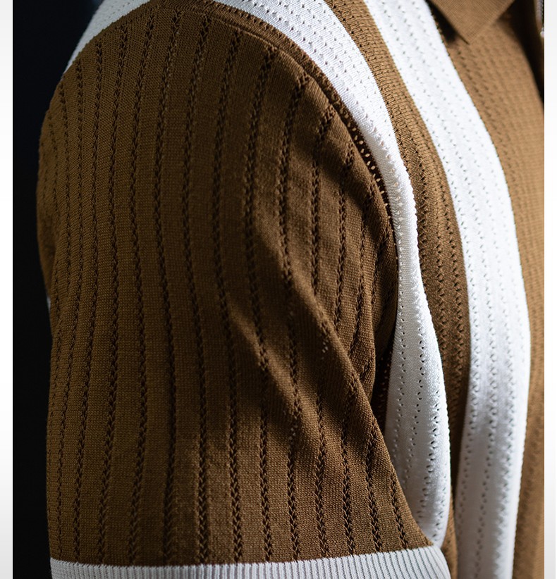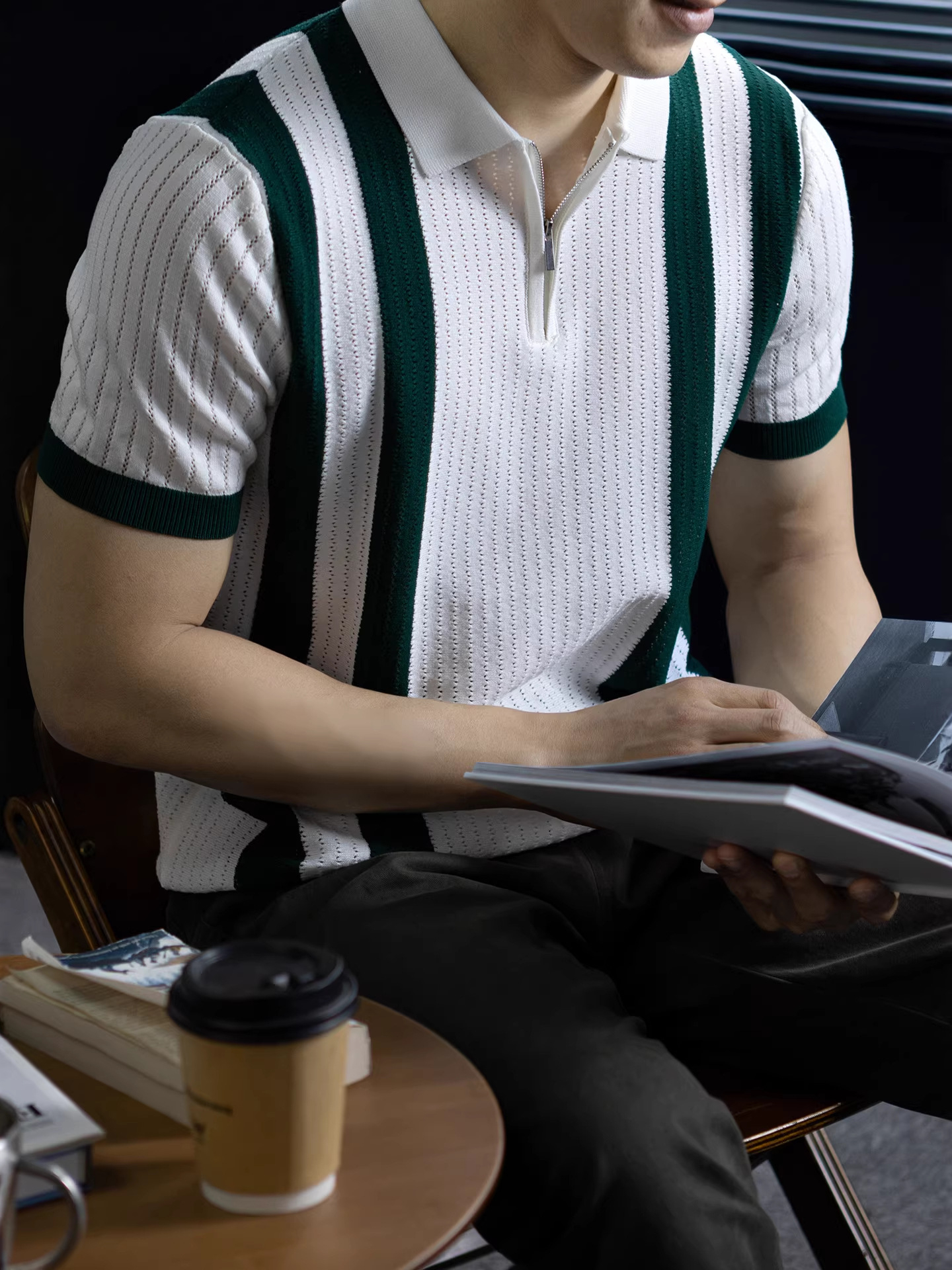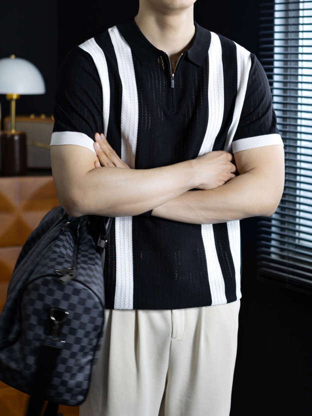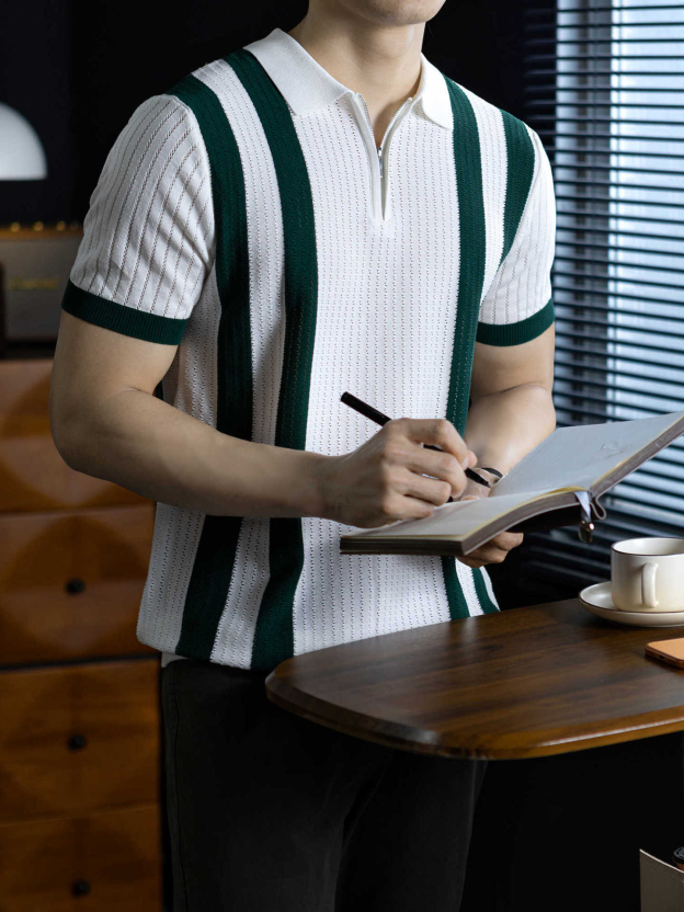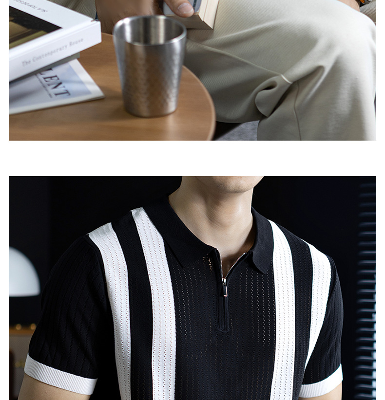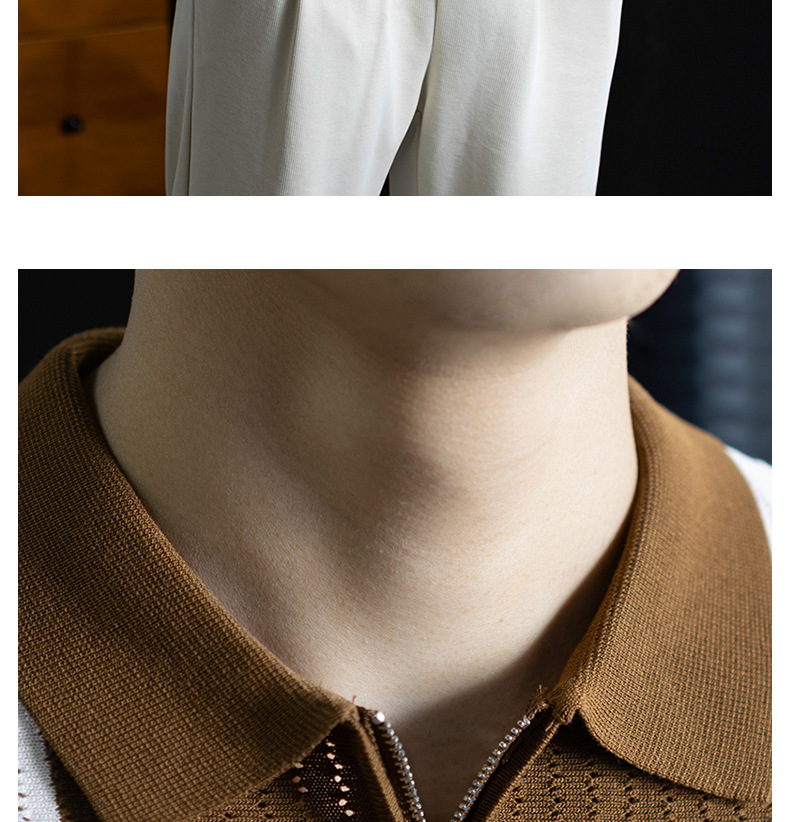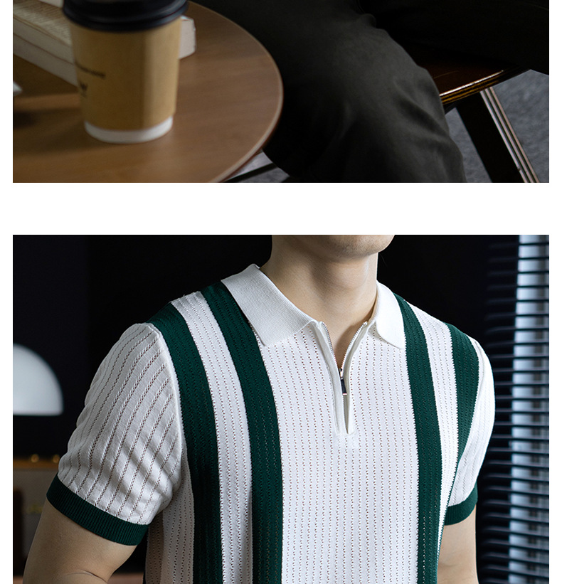 高端紳士針織網孔透氣男士半拉鍊翻領POLO衫夏季商務涼感薄款T恤