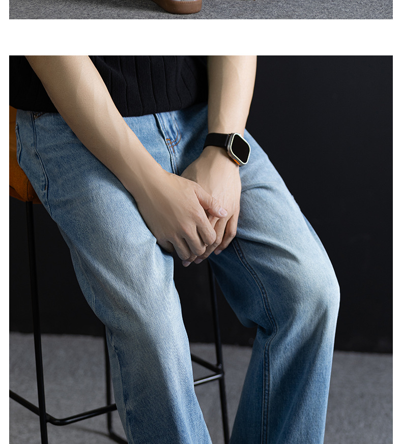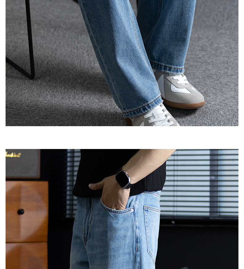 高街男士牛仔褲水洗做舊微闊直筒長褲抗皺耐磨日常百搭痞帥休閒風