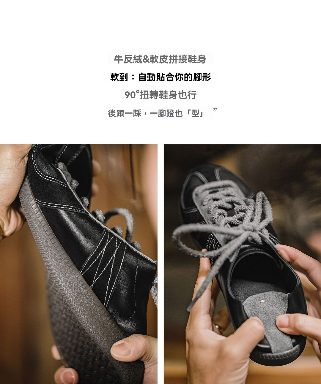 2025春季新款板鞋男低幫復古休閒運動鞋小眾百搭黑色德訓鞋