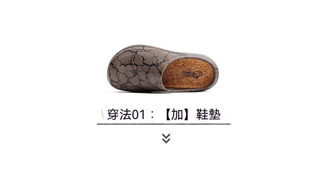 2026新款廚師鞋男春季戶外穿厚底半拖洞洞鞋涉水包頭雲拖鞋子