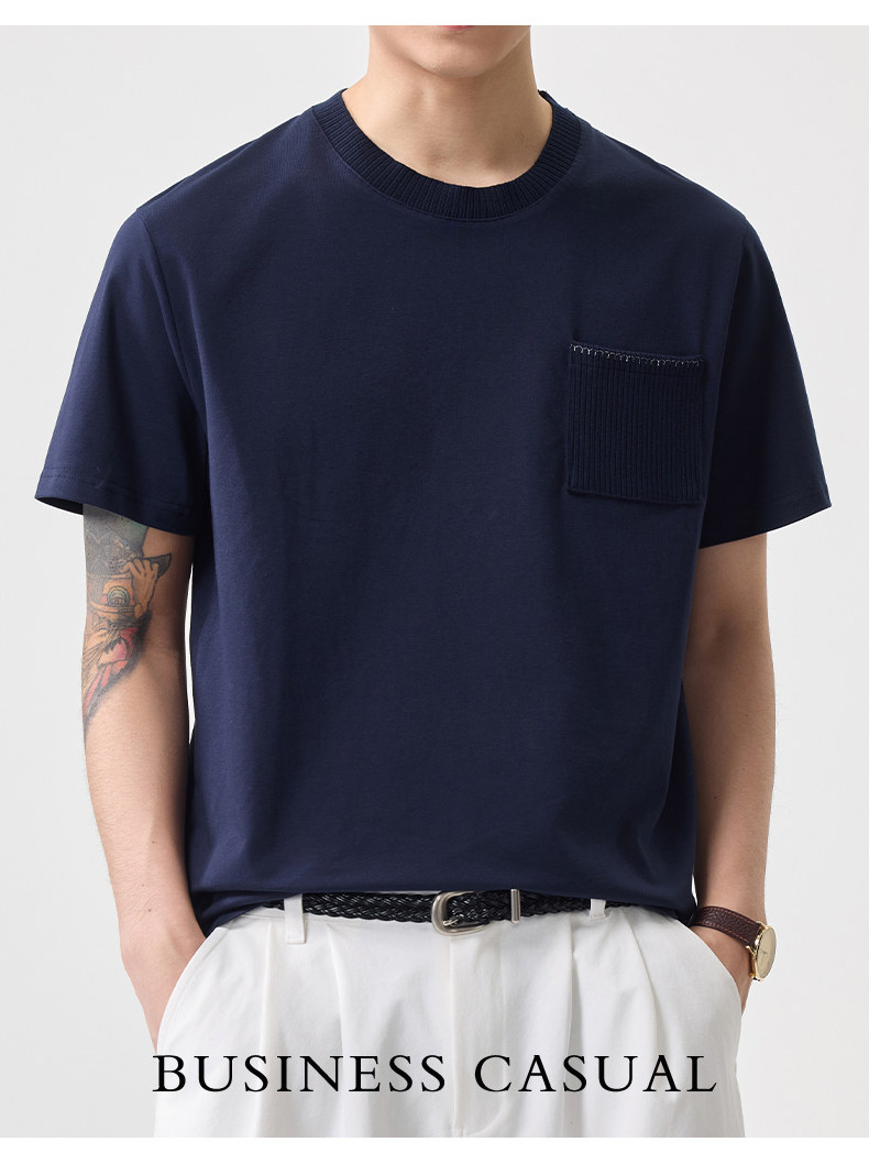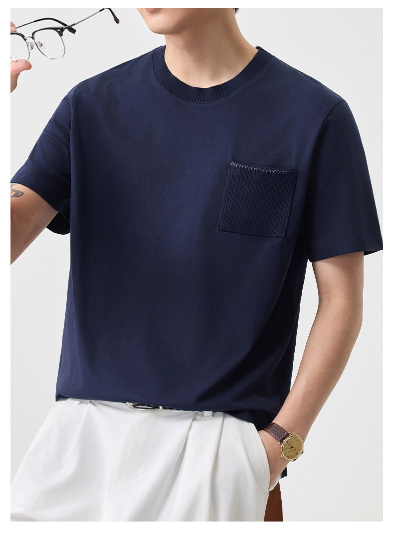 2026春夏新款純色圓領涼感簡約男短袖刺繡日系T恤百搭簡約風套頭