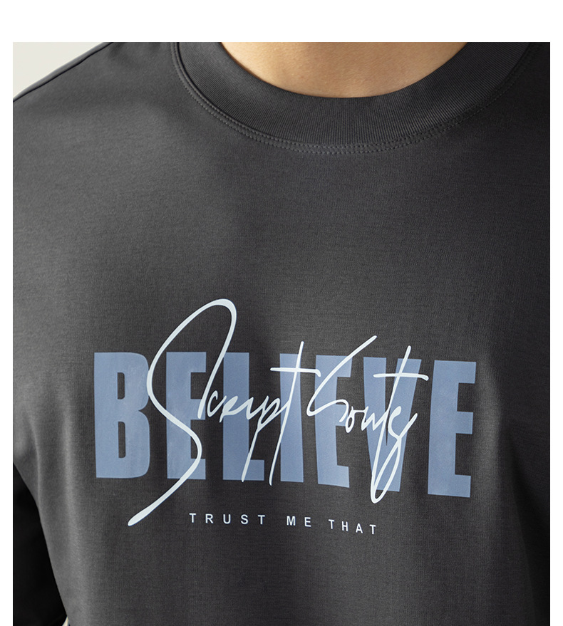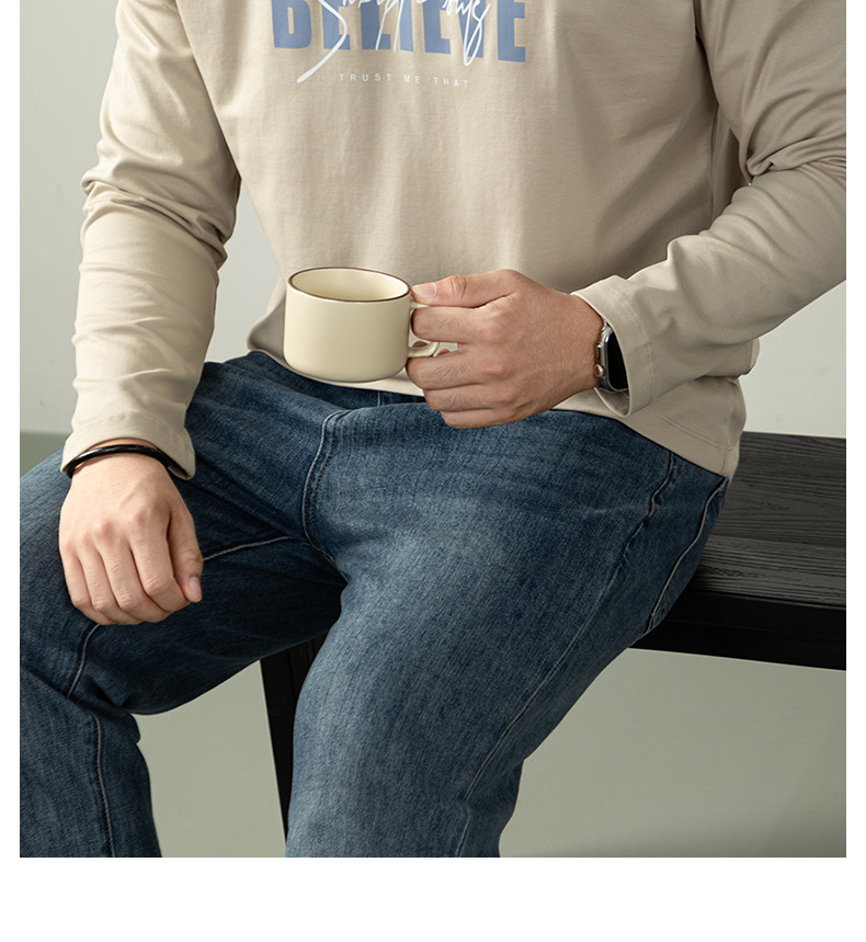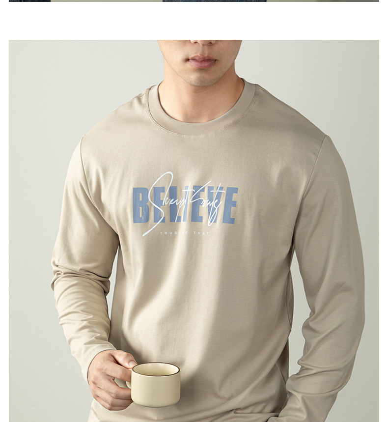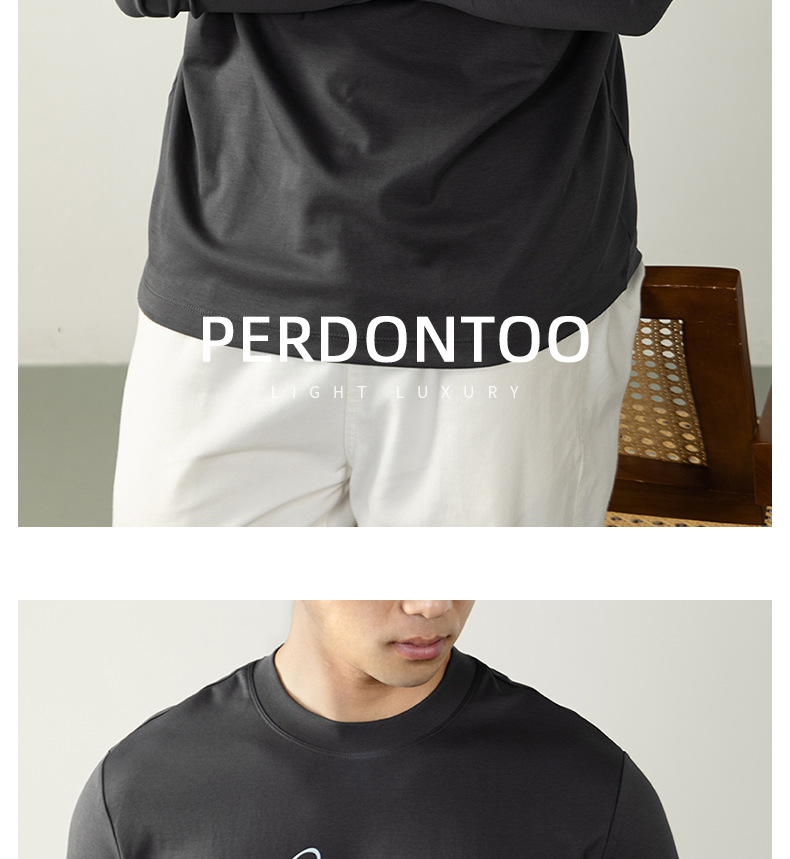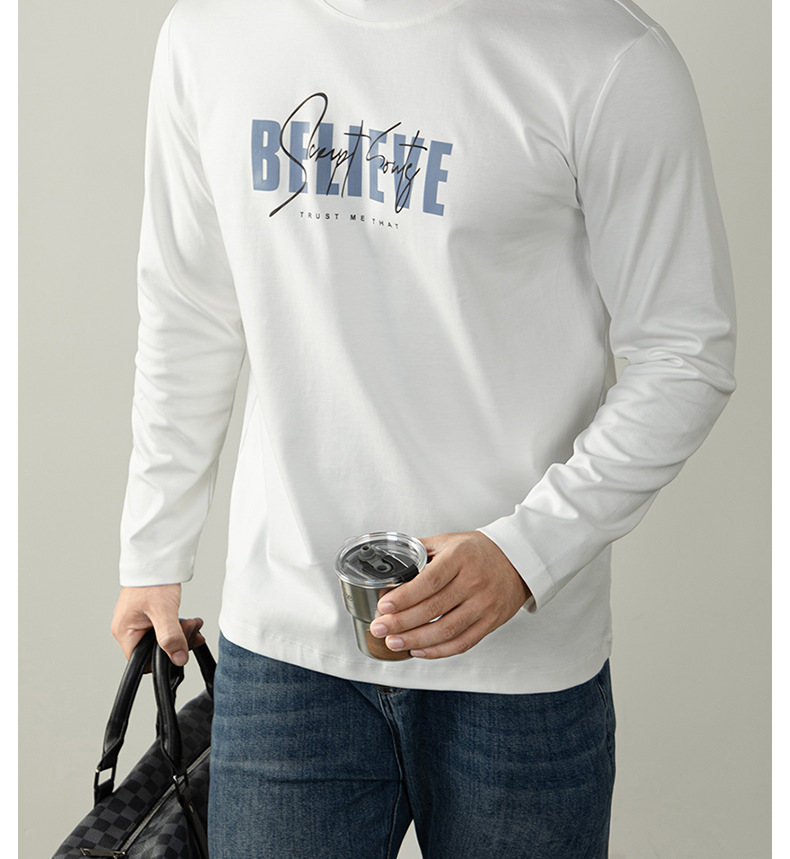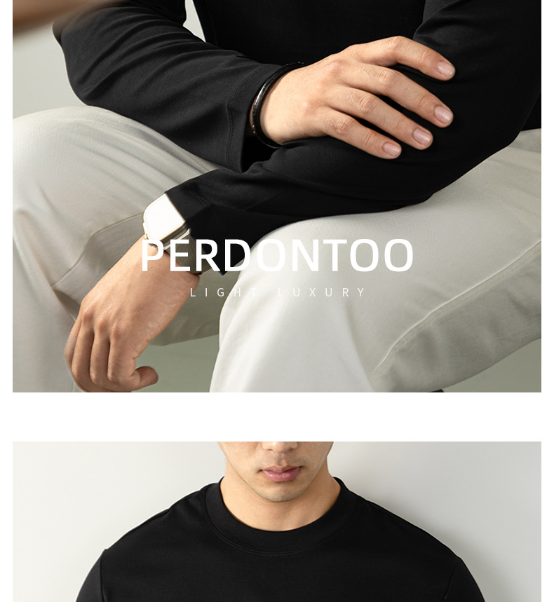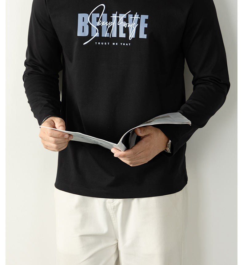 270G雙面液氨絲光棉長袖T恤男士潮流高端3D燙花秋冬休閒打底上衣