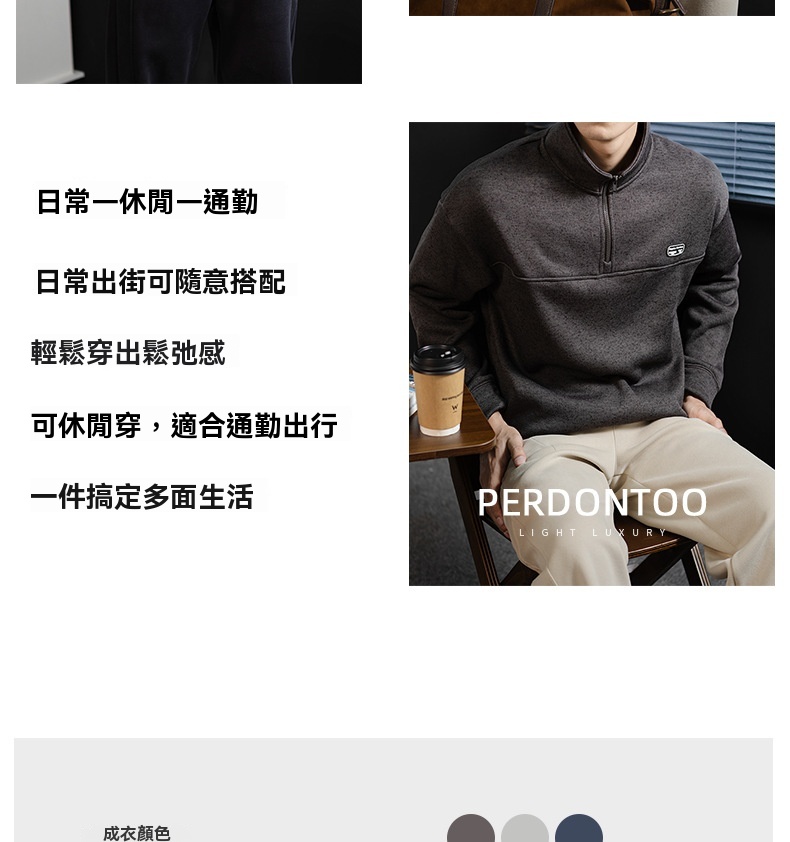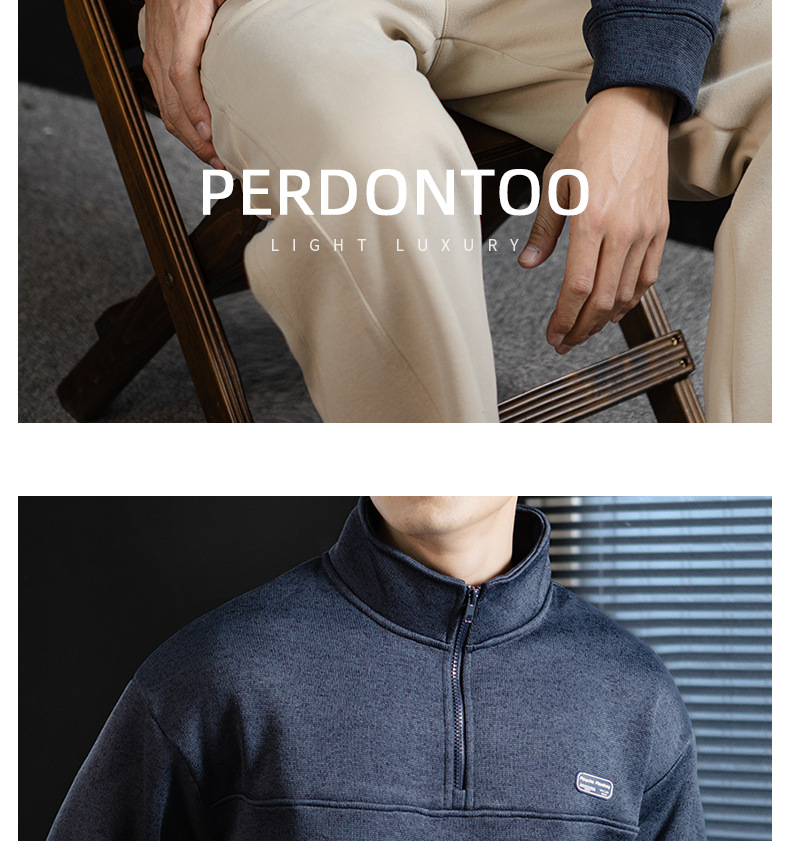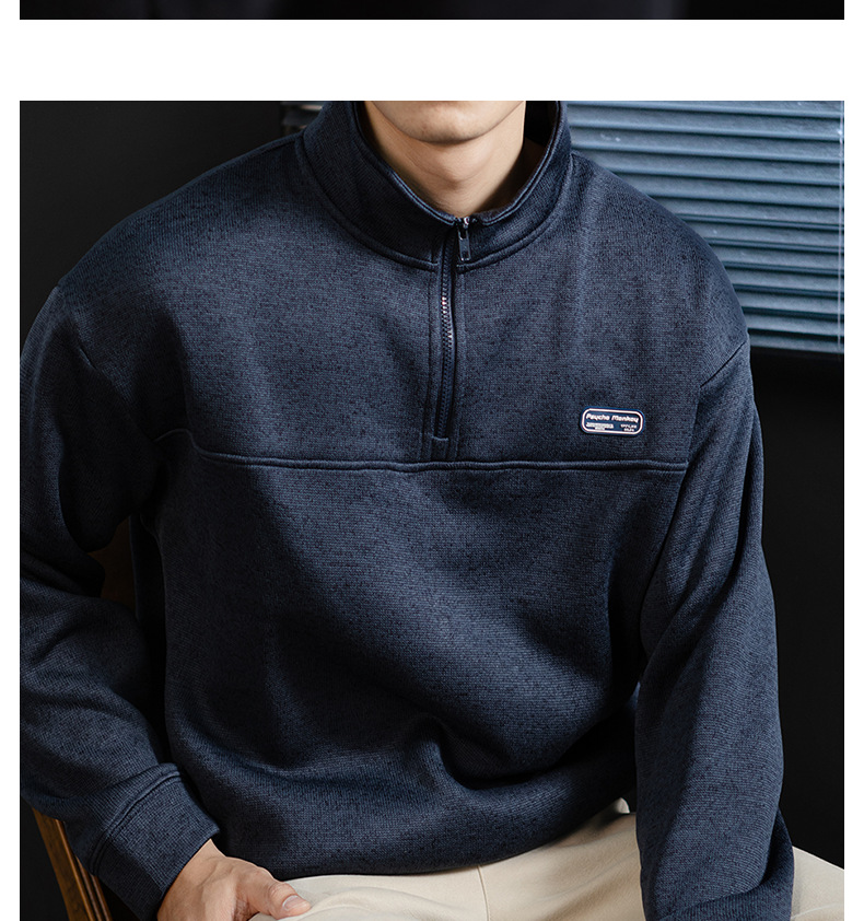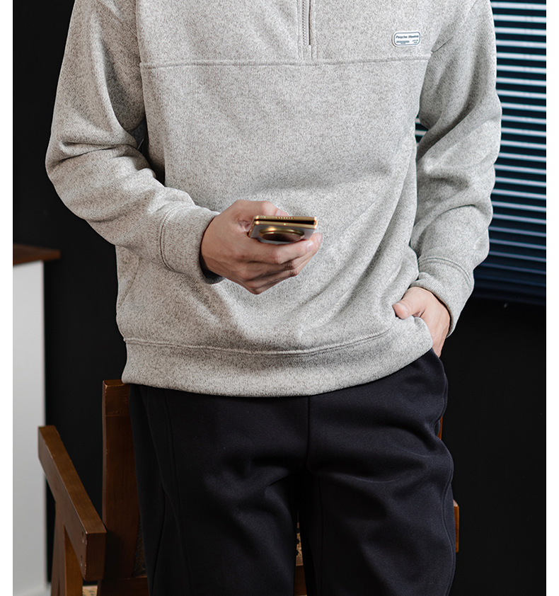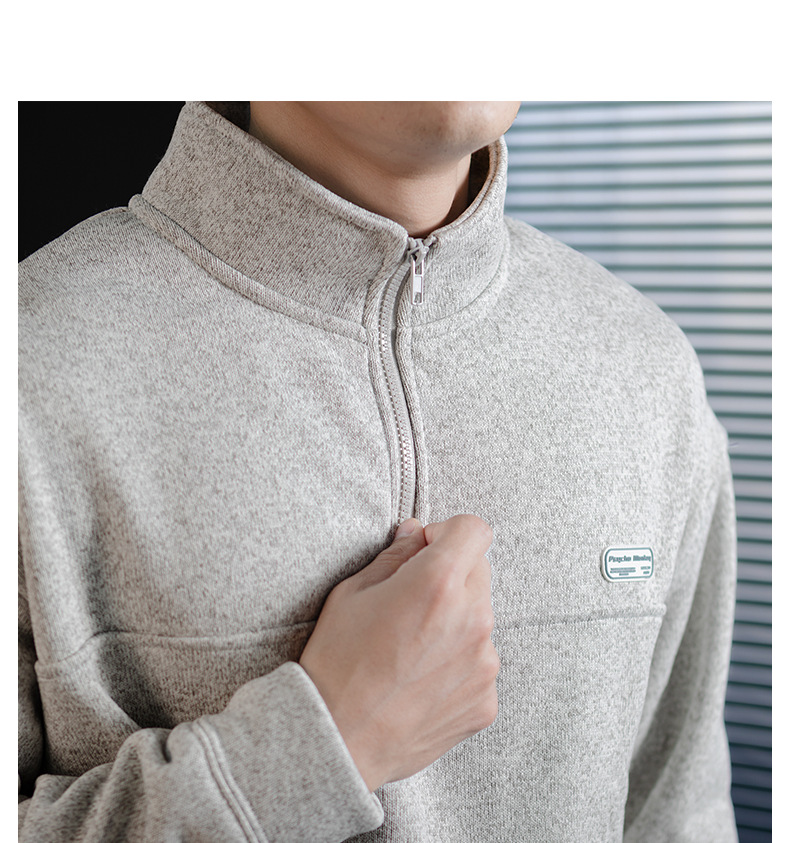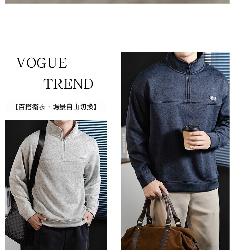 360G重磅加厚毛織絨半拉鍊立領衛衣男老錢風冬季保暖拼接設計上衣
