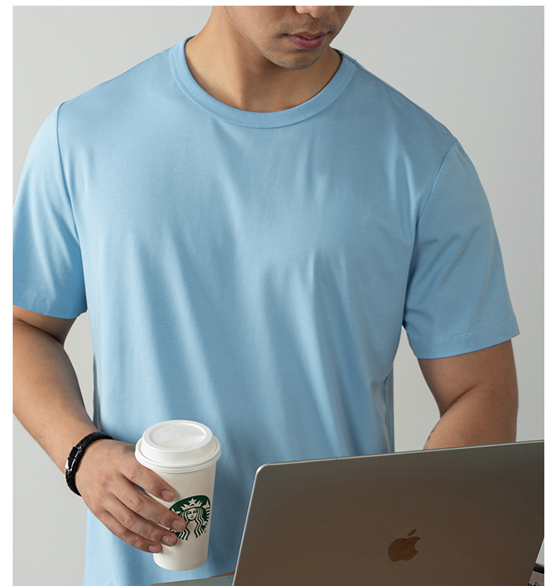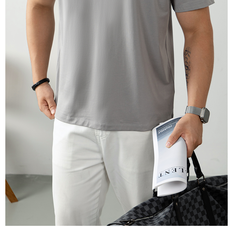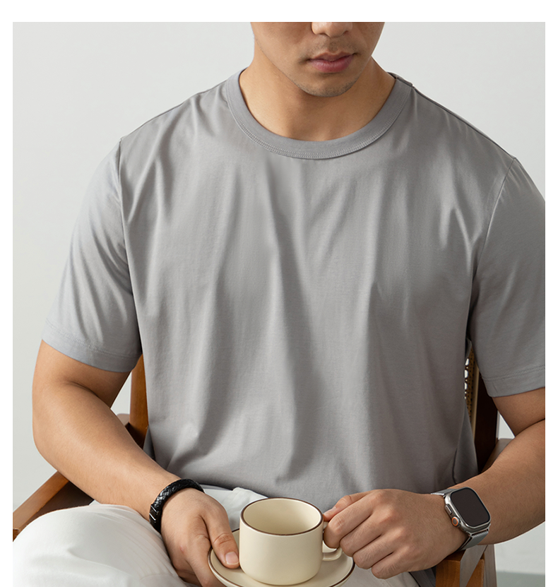 60S冰絲莫代爾棉短袖T恤男2025夏季薄款涼感寬鬆透氣速乾絲光棉