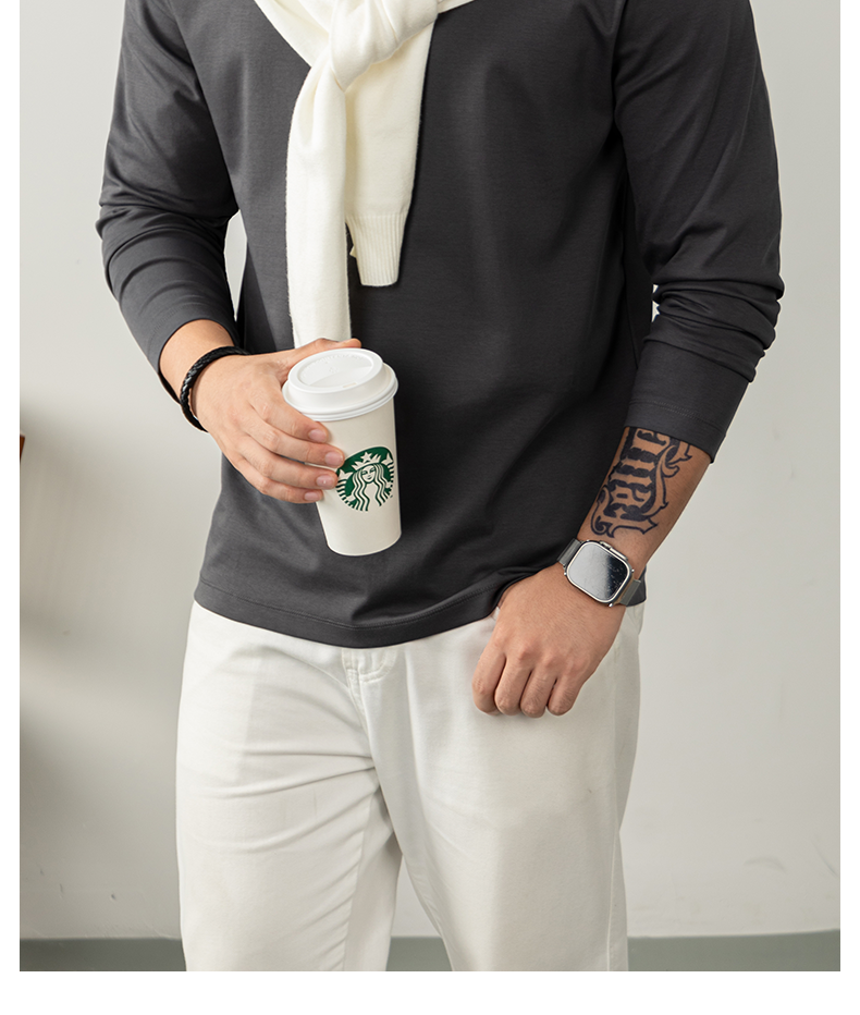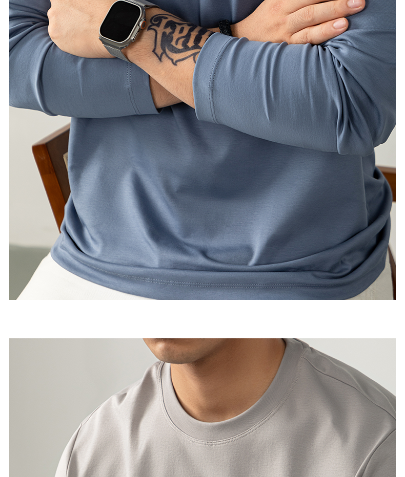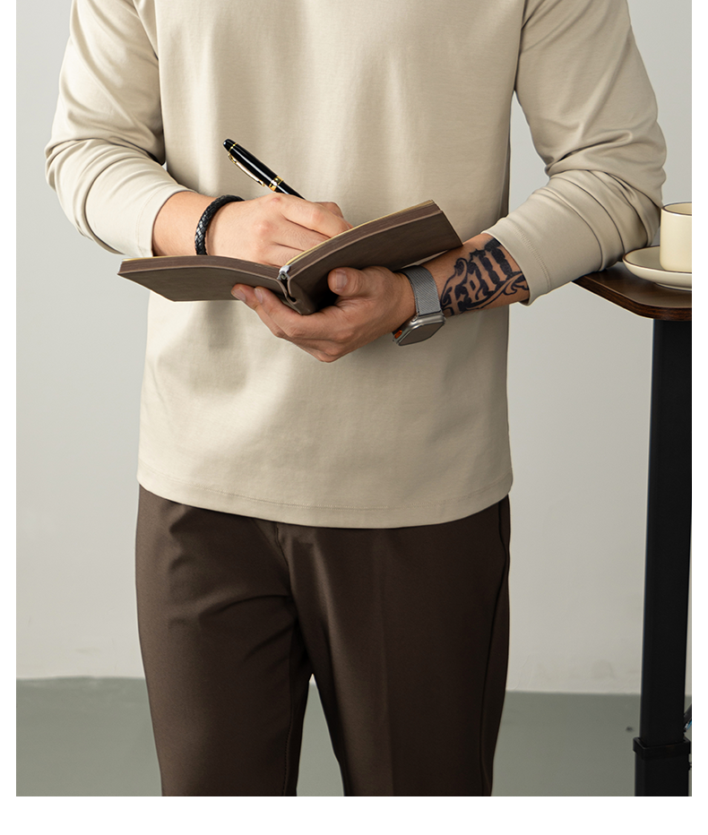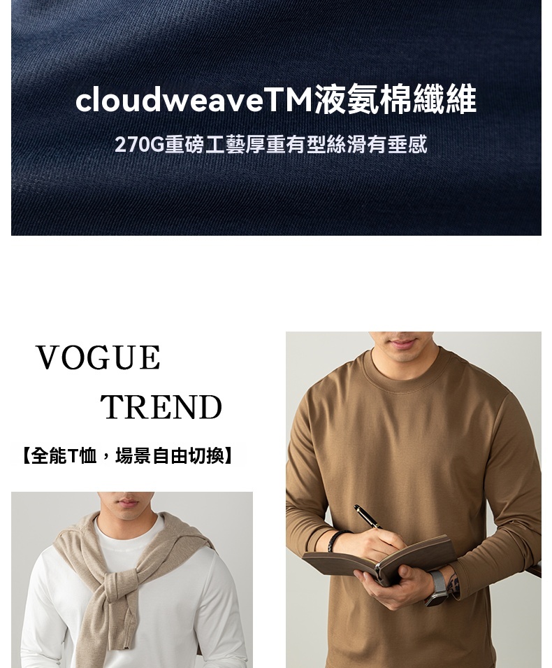 Cloudweave雲感液氨絲光棉長袖T恤男打底衫秋冬純白色親膚高級感