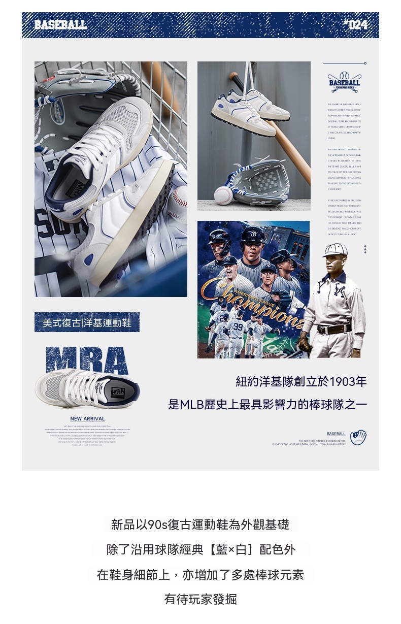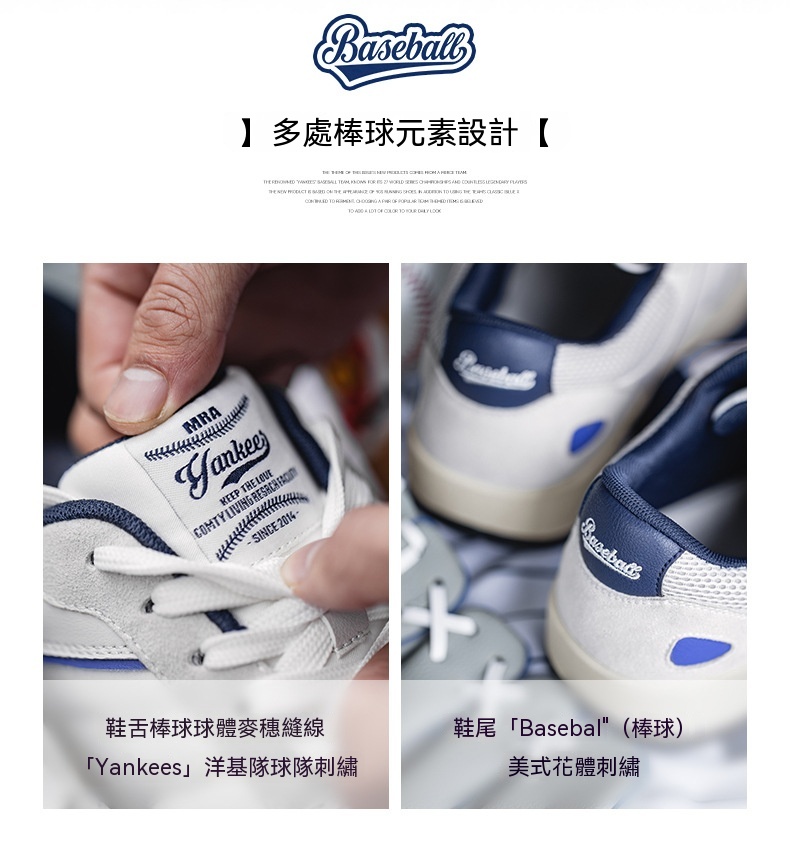 MRA洋基藍厚底板鞋男鞋春季美式復古通勤百搭棒球運動休閒小白鞋