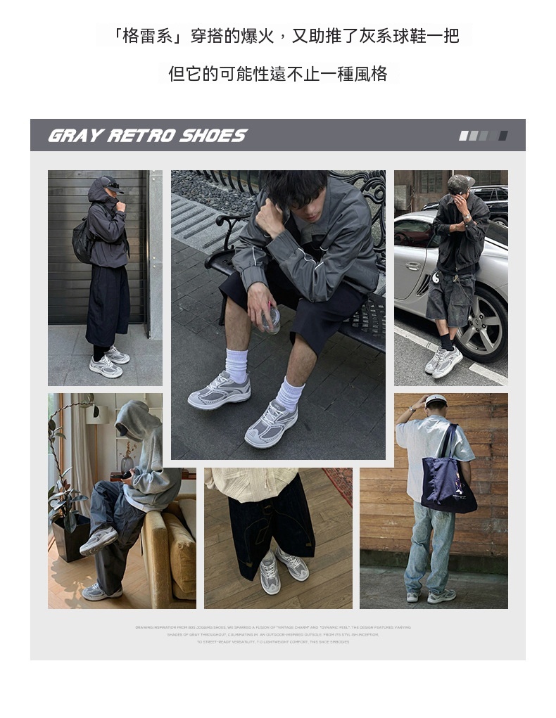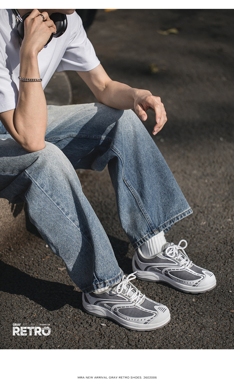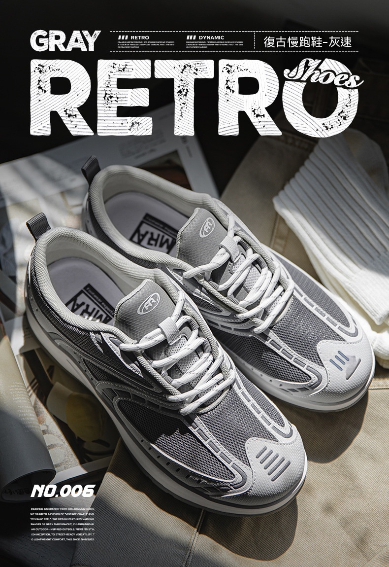 MRA灰速復古慢跑鞋男夏季網面透氣輕便運動鞋百搭通勤休閒跑步鞋