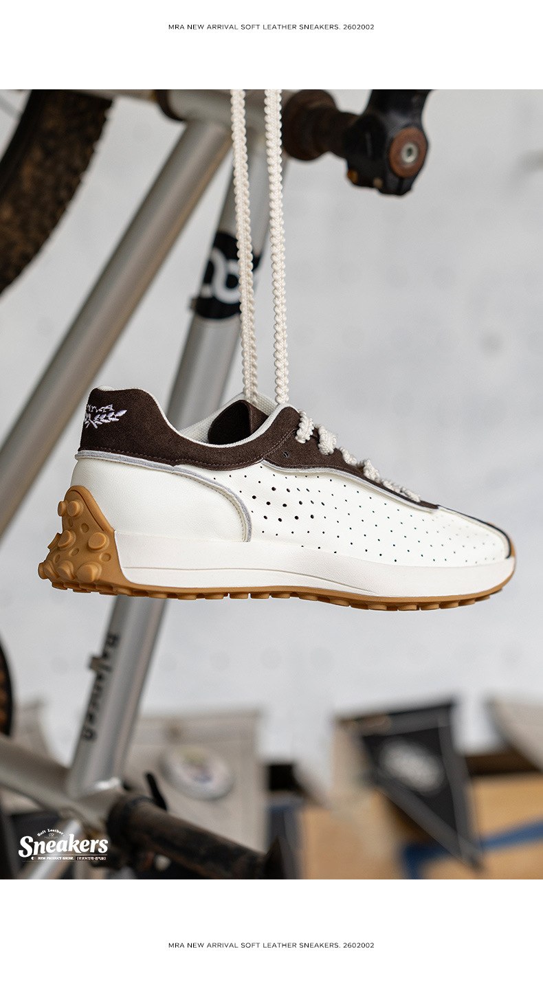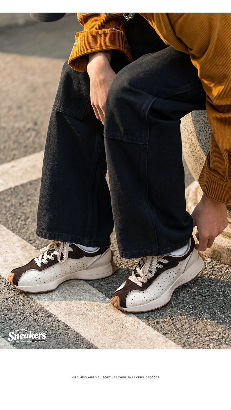 MRA軟皮阿甘鞋男款春夏透氣打孔復古拼色厚底板鞋輕便運動休閒鞋