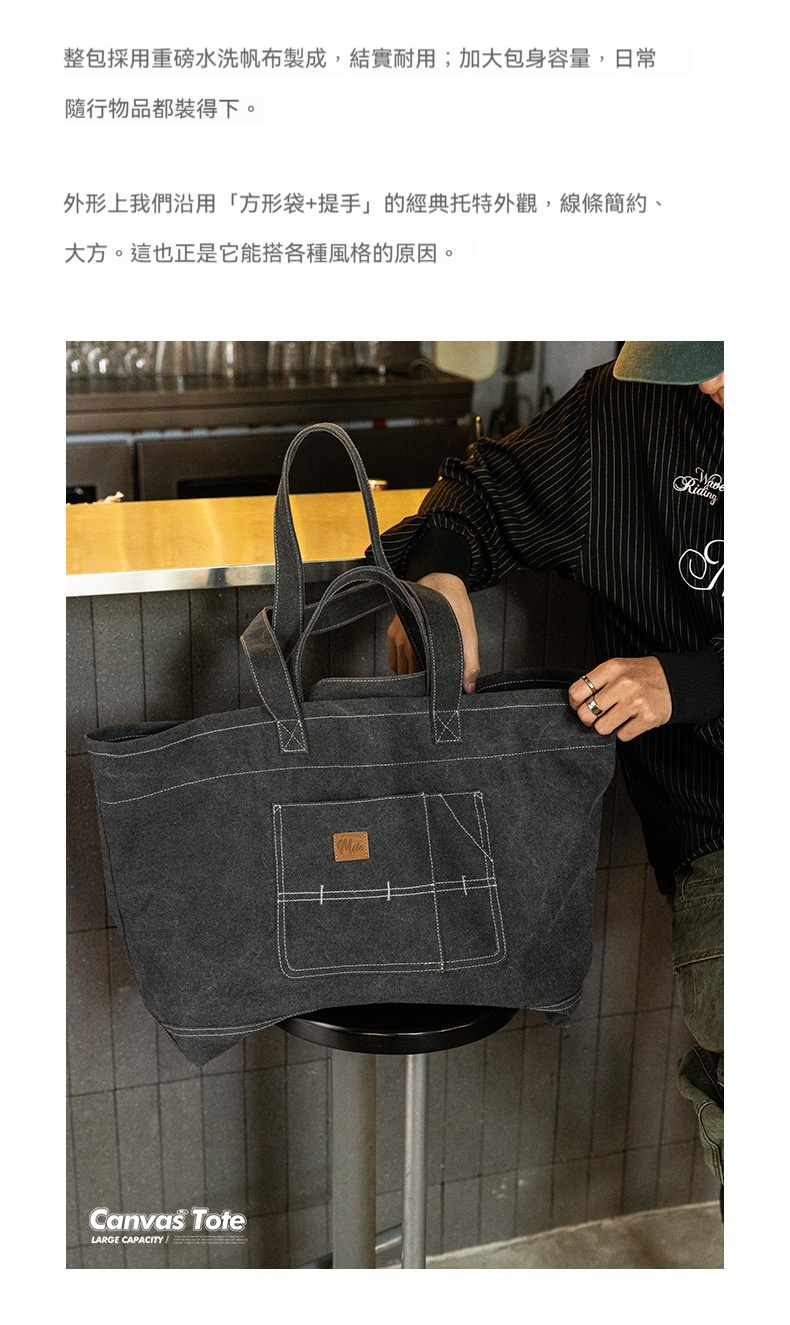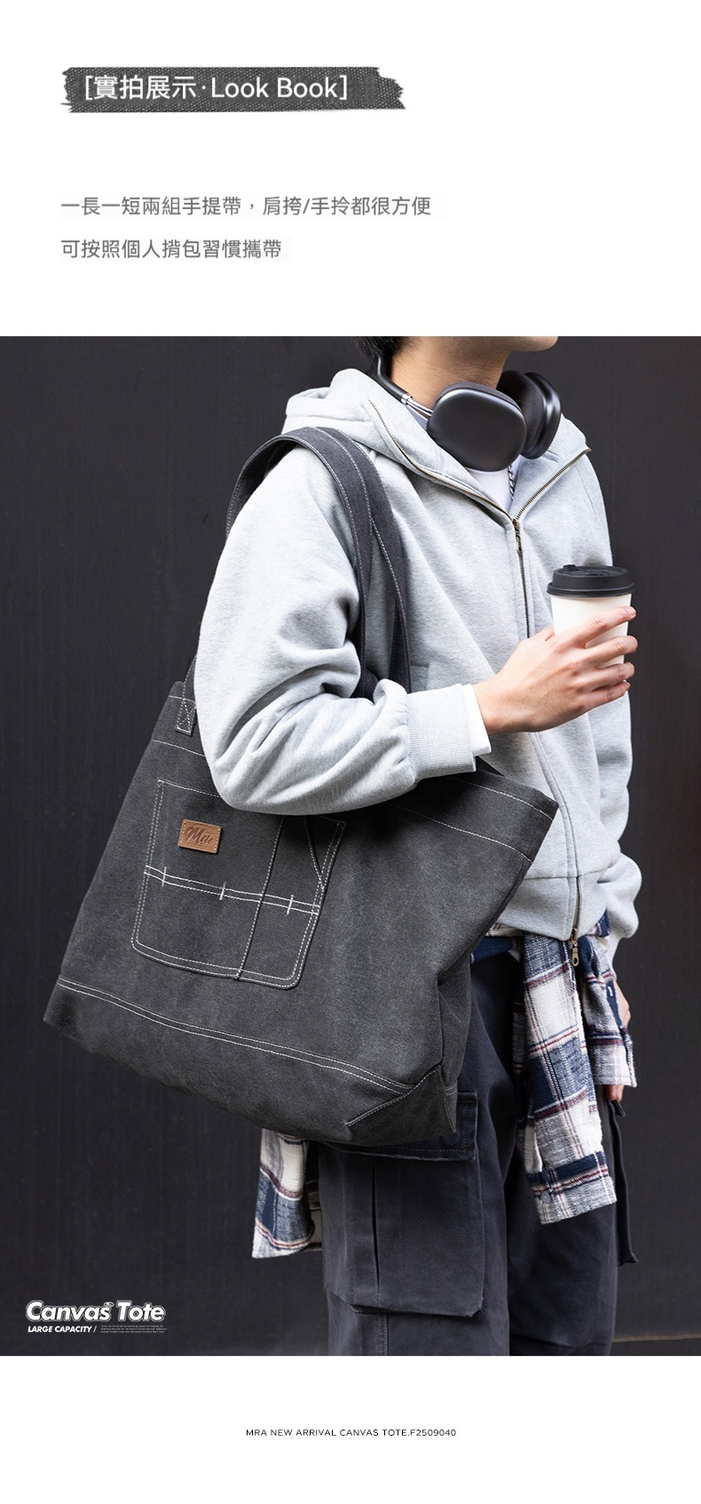 MRA 大容量水洗帆布托特包旅行健身單肩斜跨電腦多功能包潮男